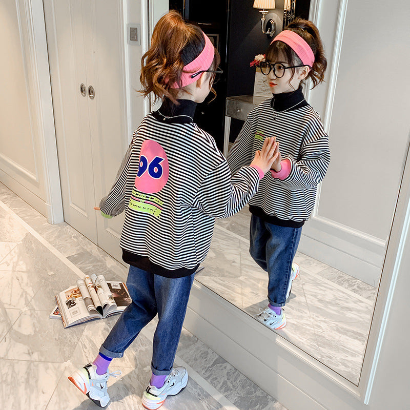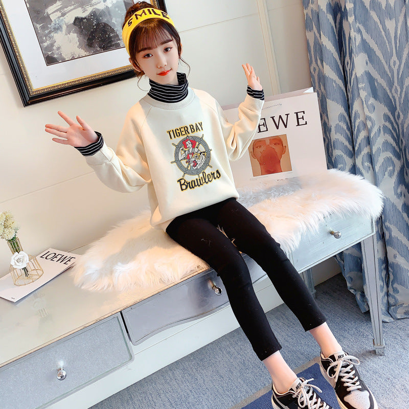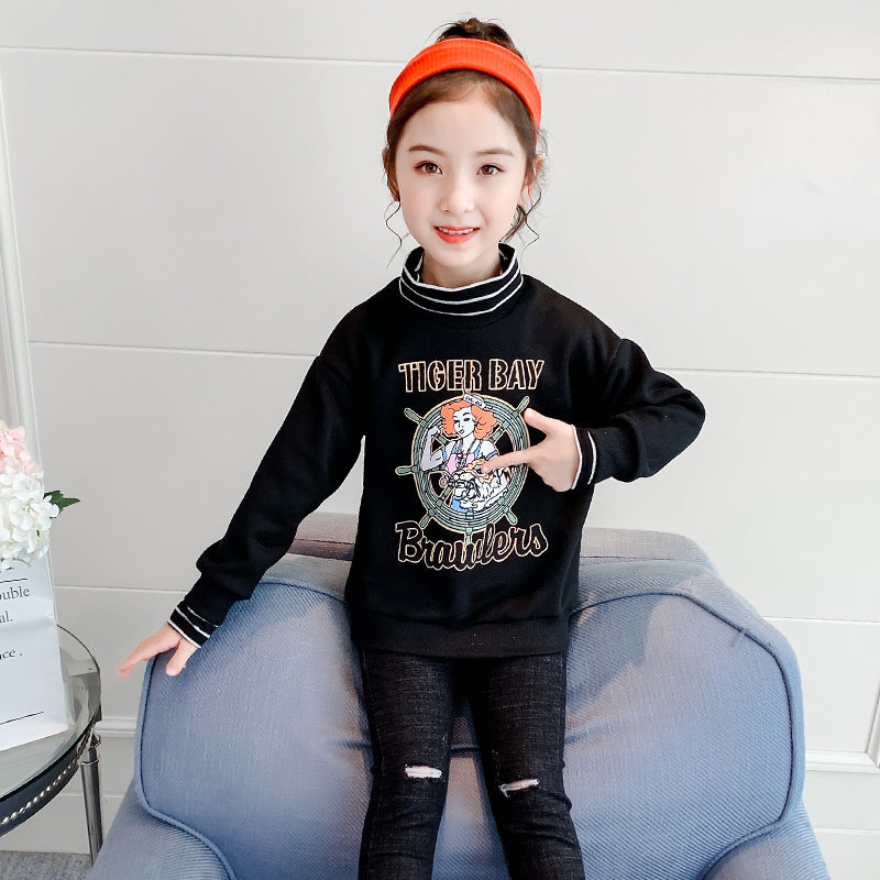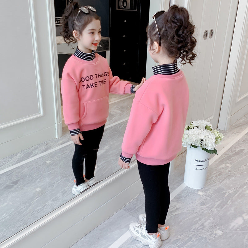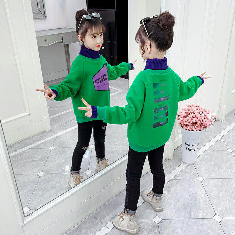 FC23120706女童秋冬裝加絨衛衣高領兒童春秋加厚上衣2023新韓版潮大童洋氣(9-12天到貨)