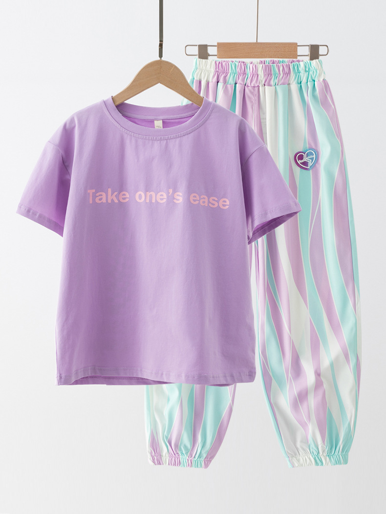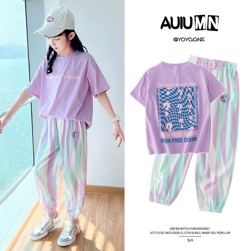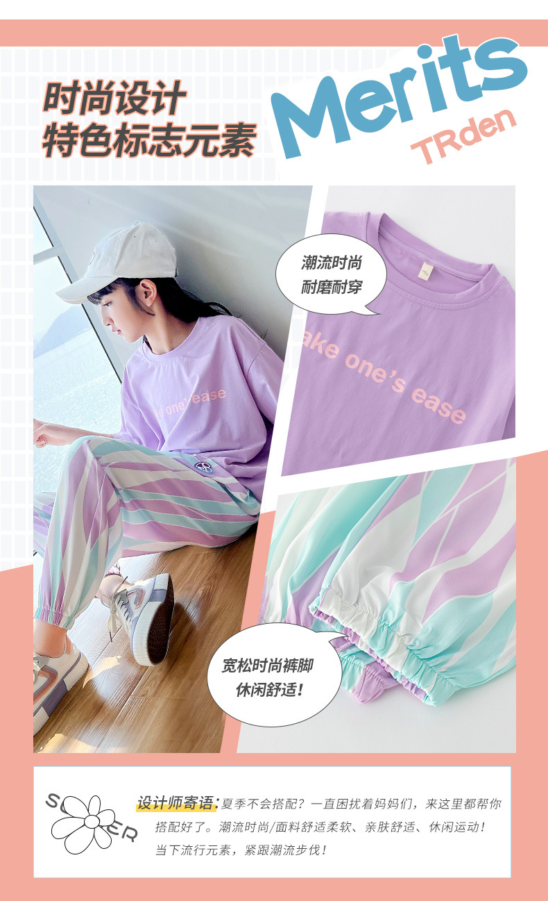 FC24040702全新套裝夏裝女童休閒運動服女大童兒童夏季短袖時尚洋氣童裝(9-12天到貨)