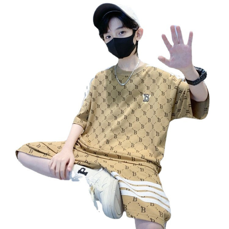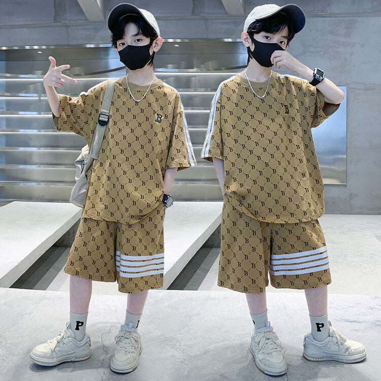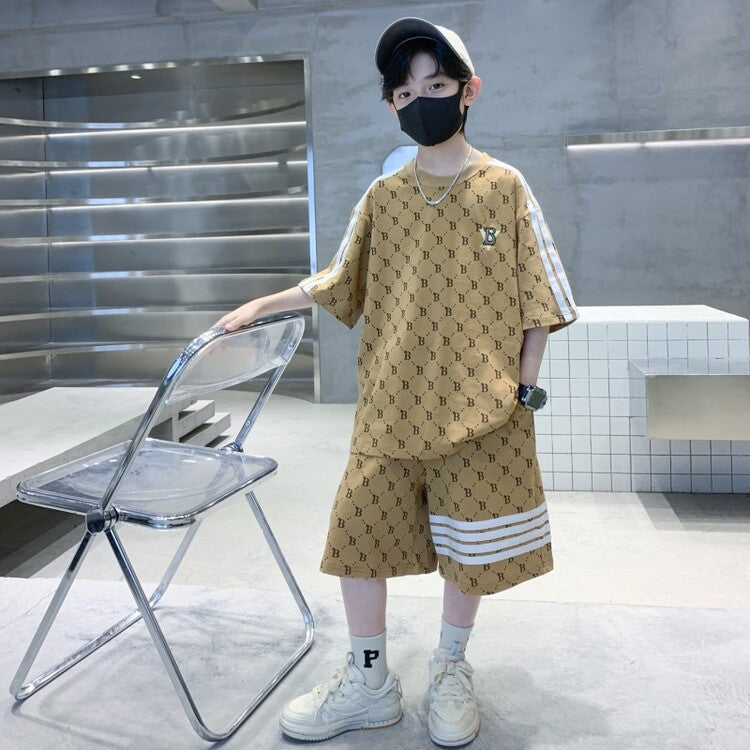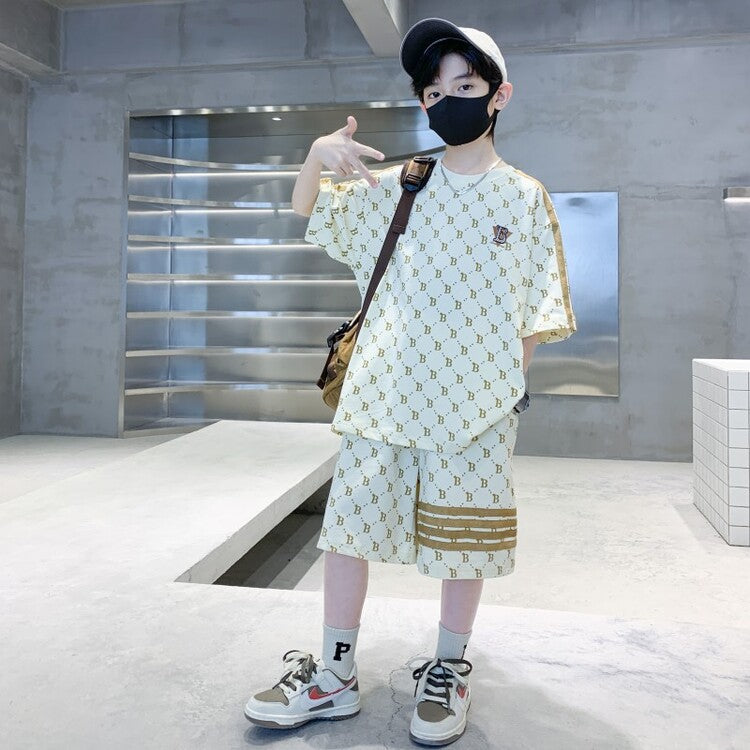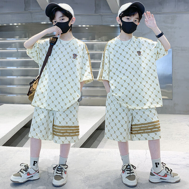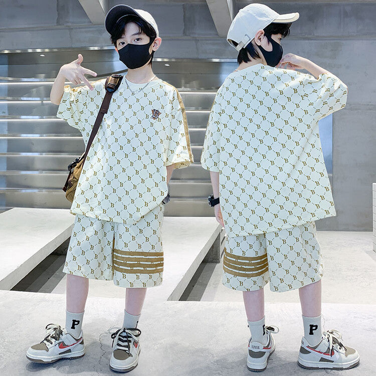 FC24040715男童夏裝薄款T卹短褲洋氣兩件套中大童炸街2024新帥氣寬鬆套裝(9-12天到貨)