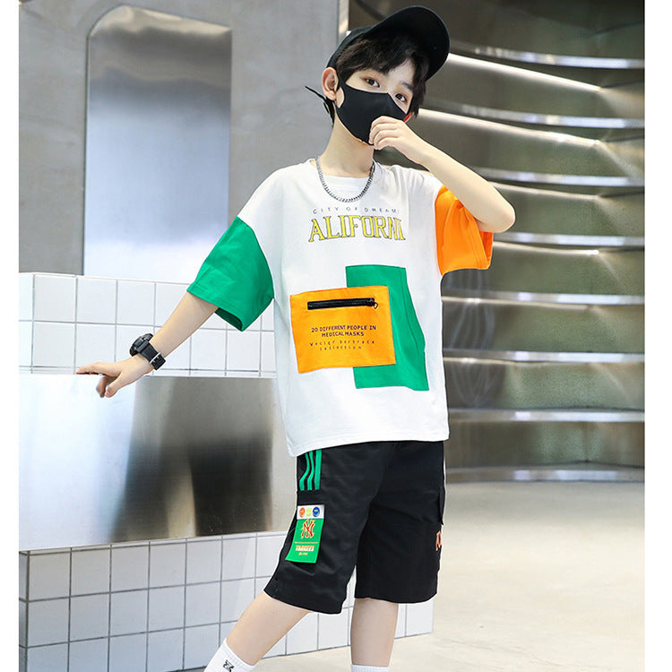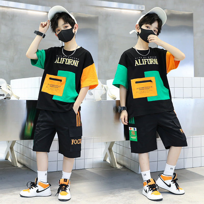 FC24040717兒童裝男童夏裝套裝2024新款夏季男孩運動薄夏款中大童酷帥氣潮(9-12天到貨)