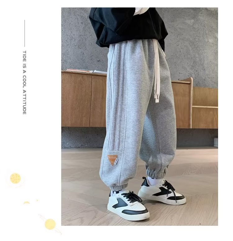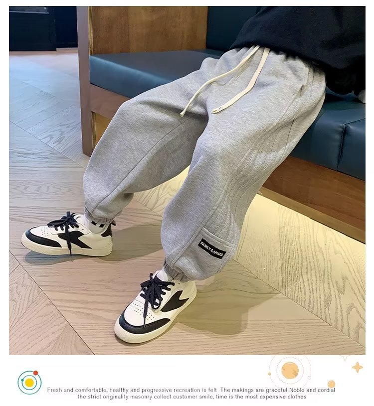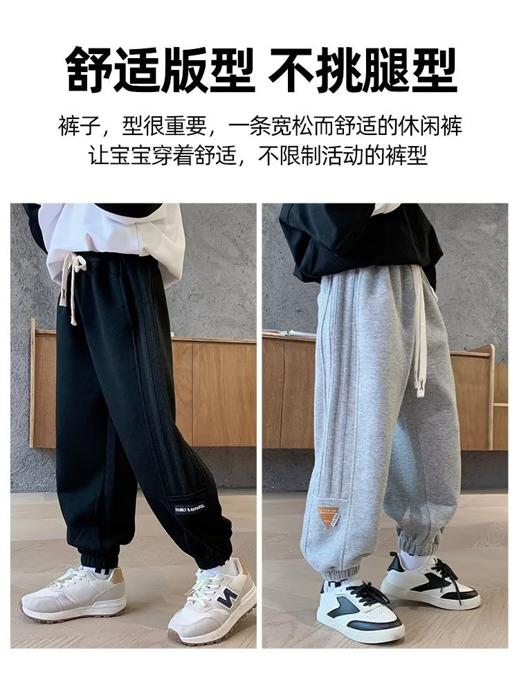 FD24010404男童褲子春秋款新款黑色中大童衛褲兒童運動褲胖孩寬鬆加絨