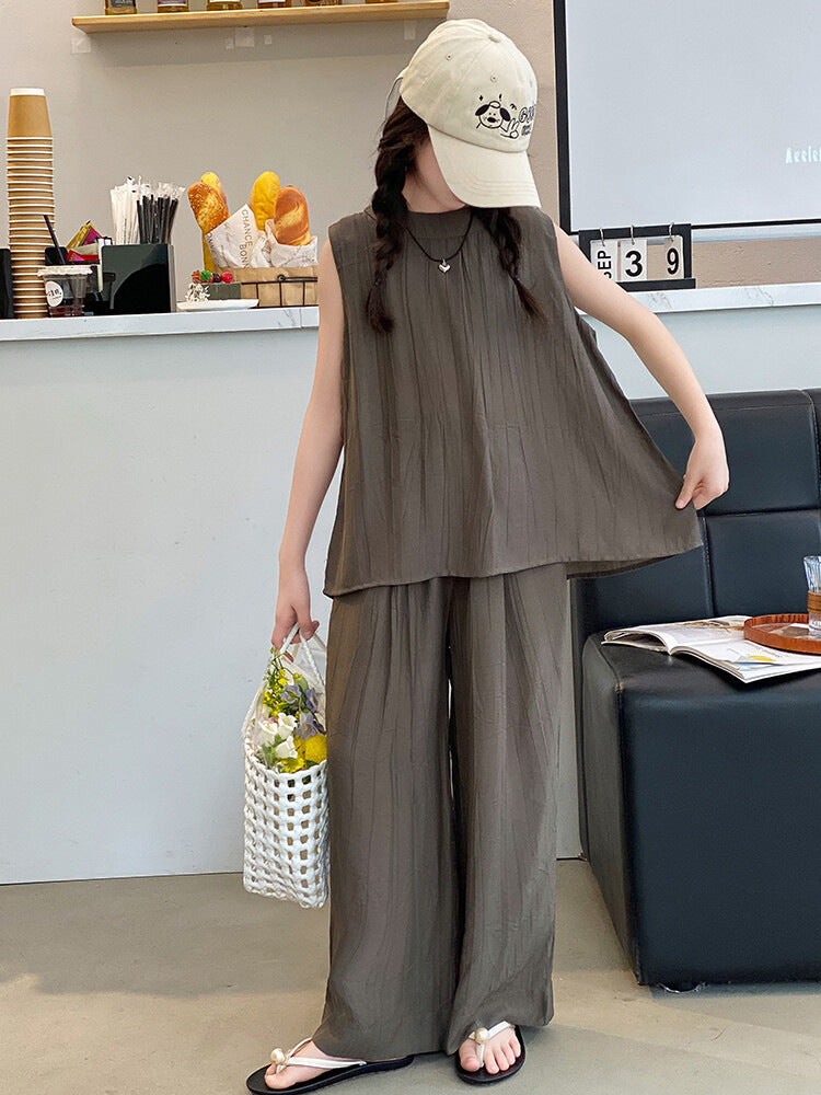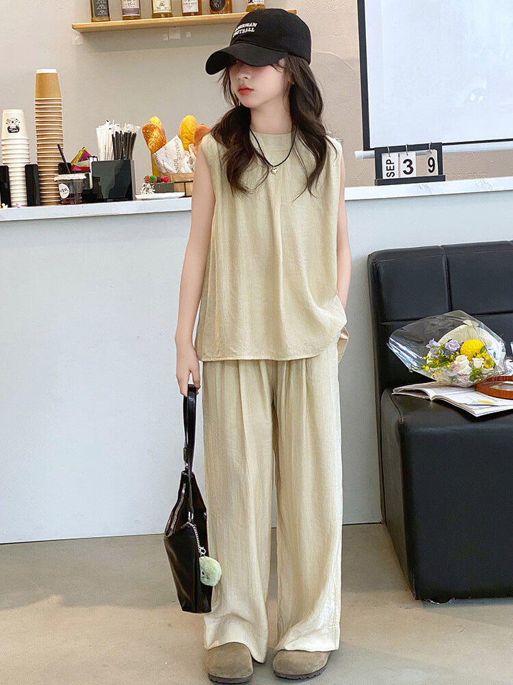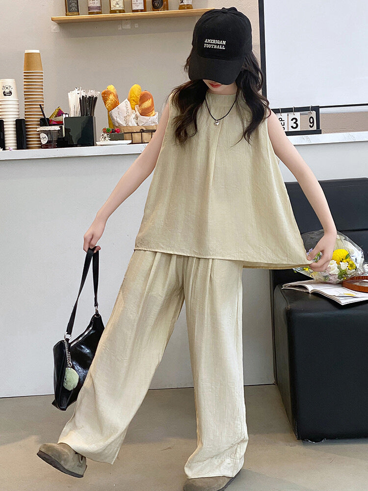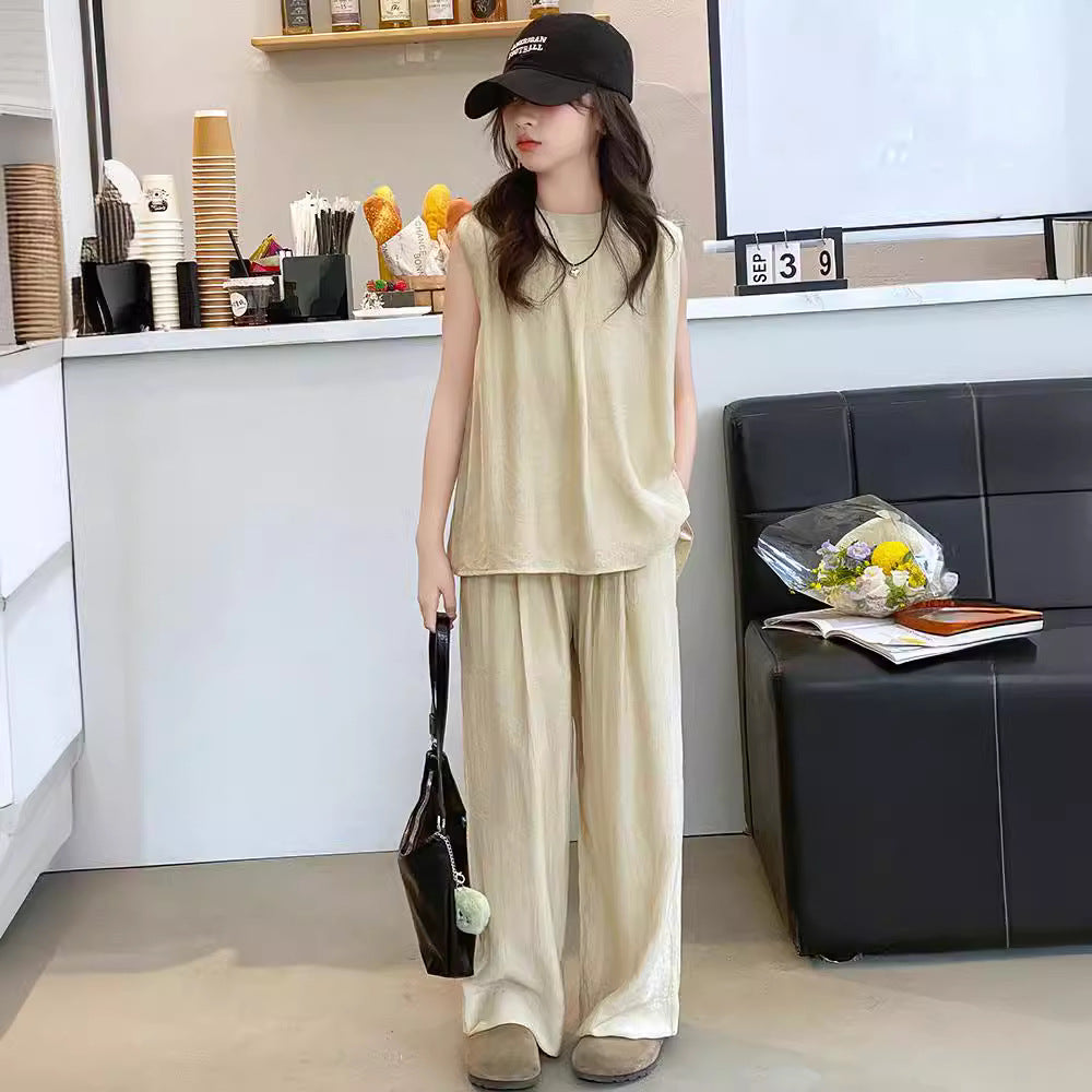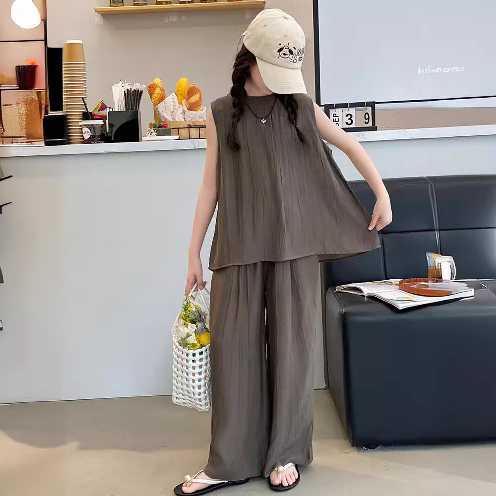 FD24081101女童夏裝薄款背心套裝2024時尚中大童時尚洋氣T卹長褲韓版兩件套