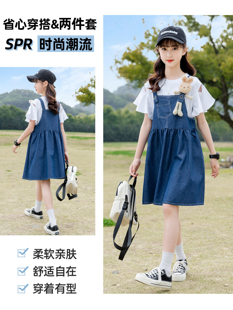 FE24070102夏季中大童短袖工裝褲套裝運動風雙色可選套頭衫兩件套批發(9-12天到貨)