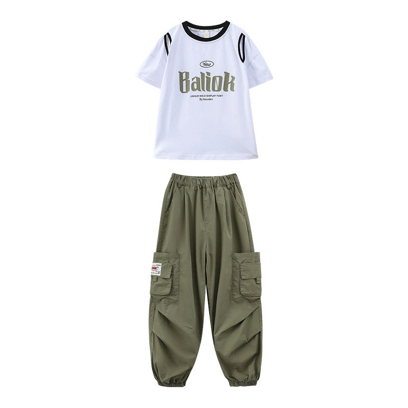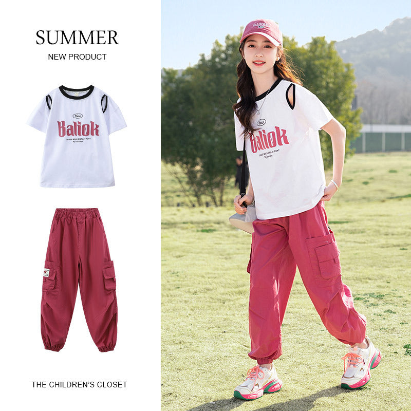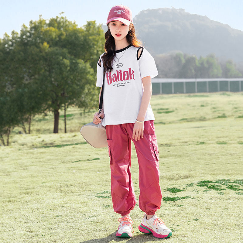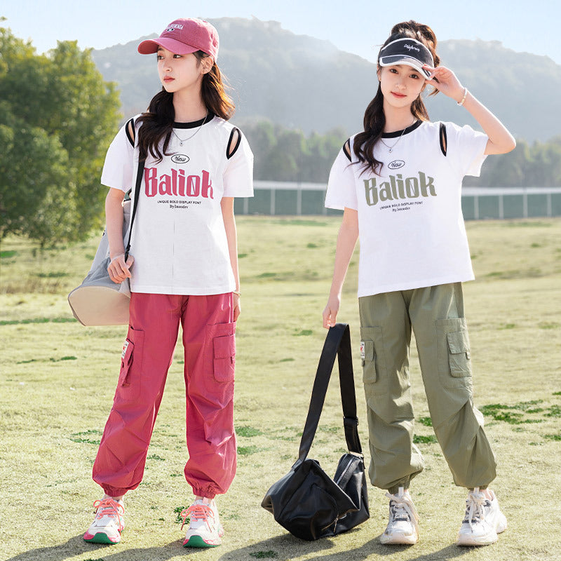 FE24070106新品夏季休閒風女大童套裝白色短袖長褲兩件套(9-12天到貨)