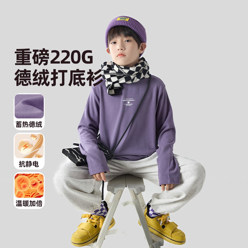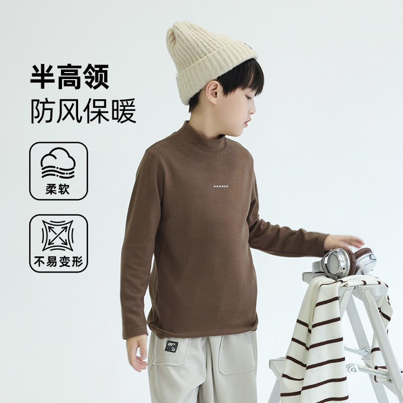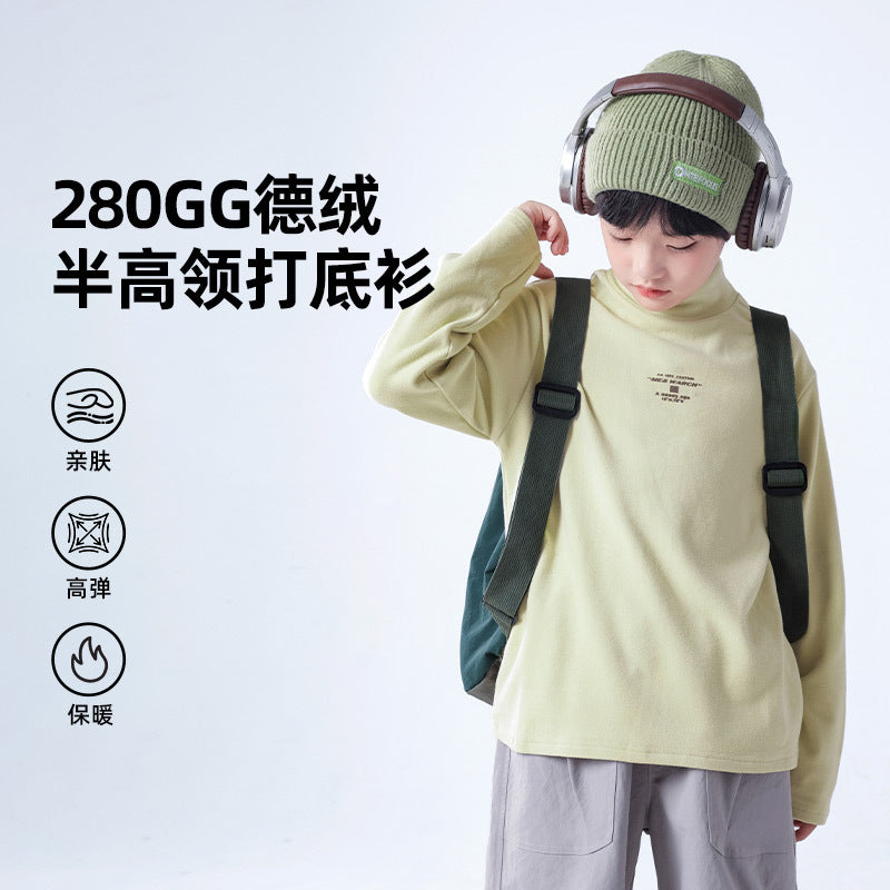 FF24102505秋冬新款男童t恤保暖內搭上衣防發熱德絨半高領兒童打底衫(9-12天到貨)