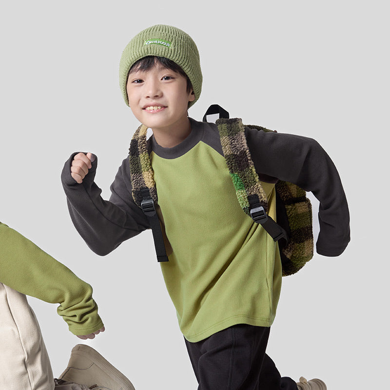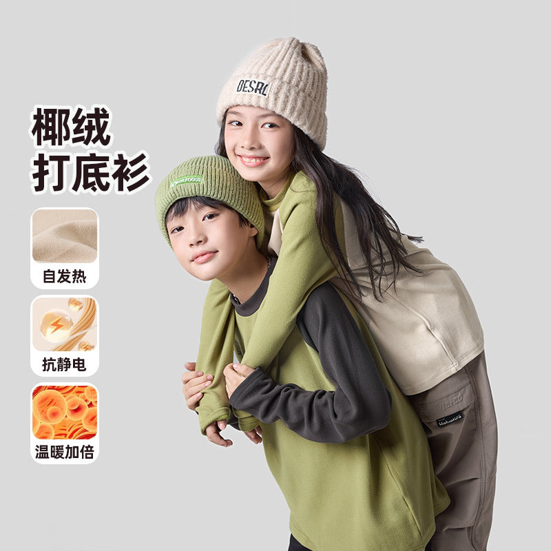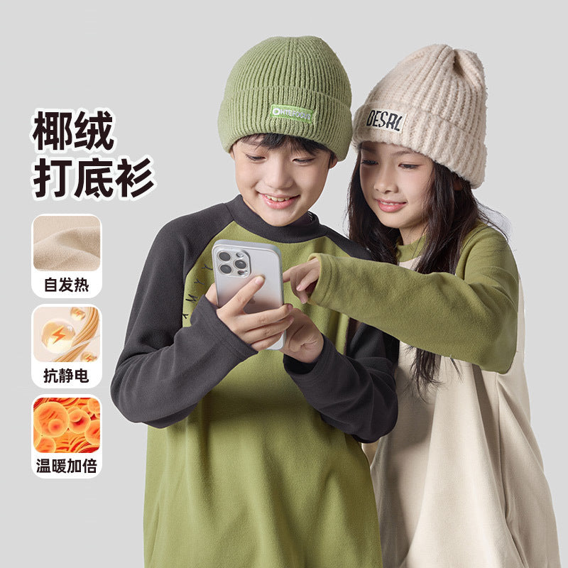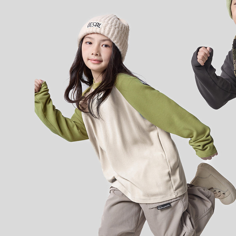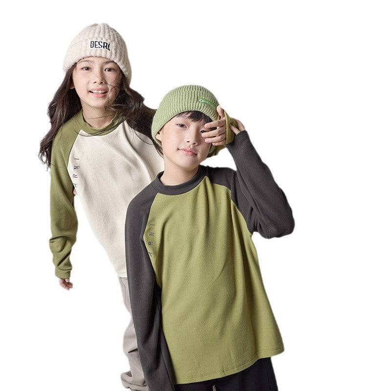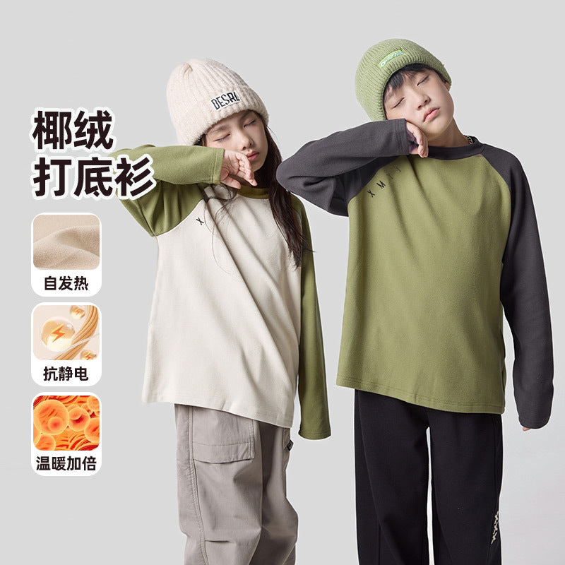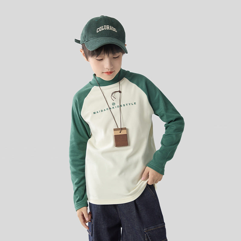 FF24102507秋冬男女孩t恤雙拼色插肩保暖上衣椰絨自發性熱半高領兒童打底衫(9-12天到貨)