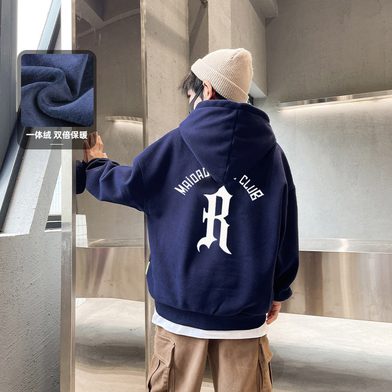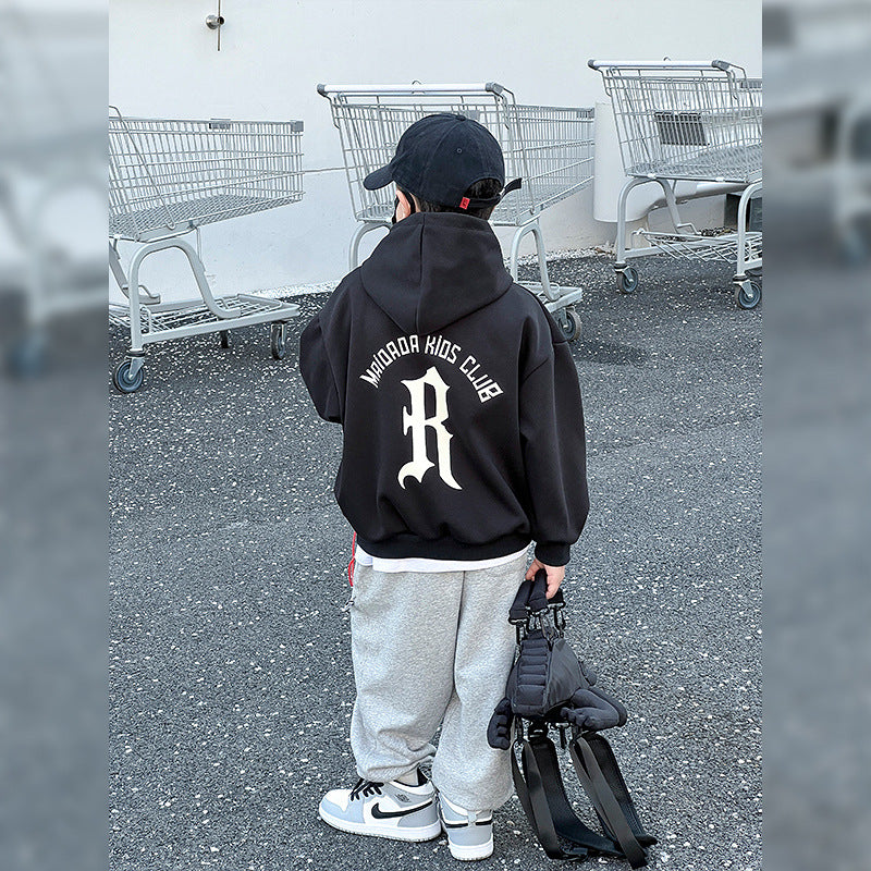 FF24102512秋冬印花男童加絨連帽衛衣2024中大童加厚上衣童裝(9-12天到貨)