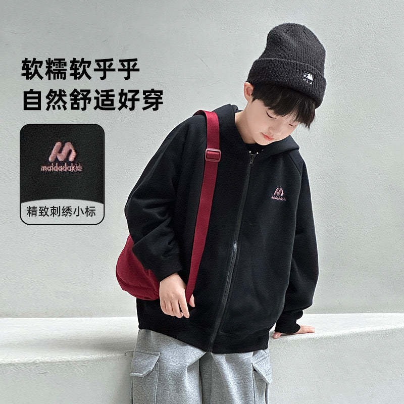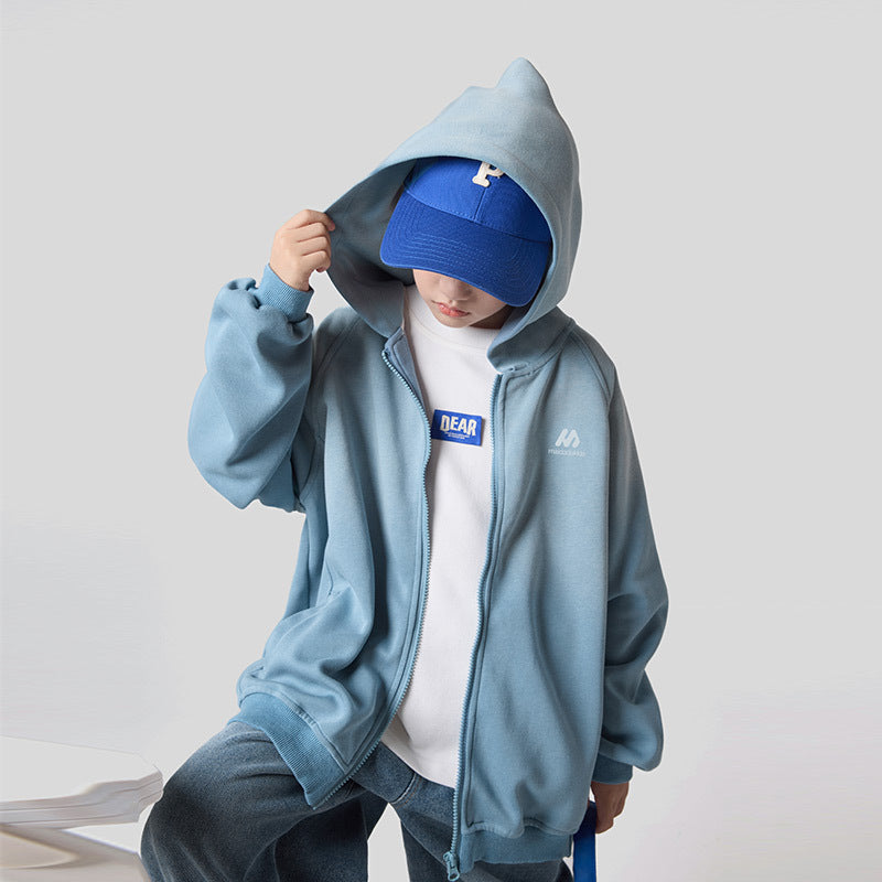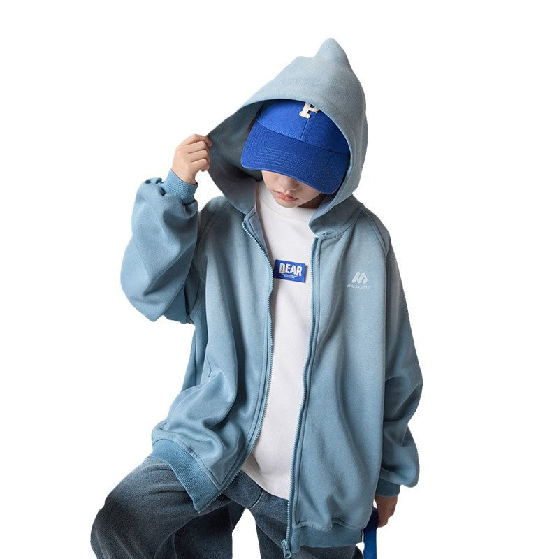 FF24102514中大童突變色連帽開襟衫兒童衛衣2024新款秋裝針織男童裙子(9-12天到貨)
