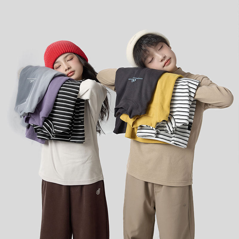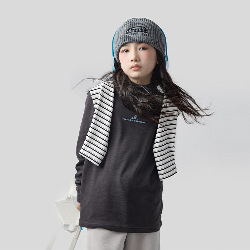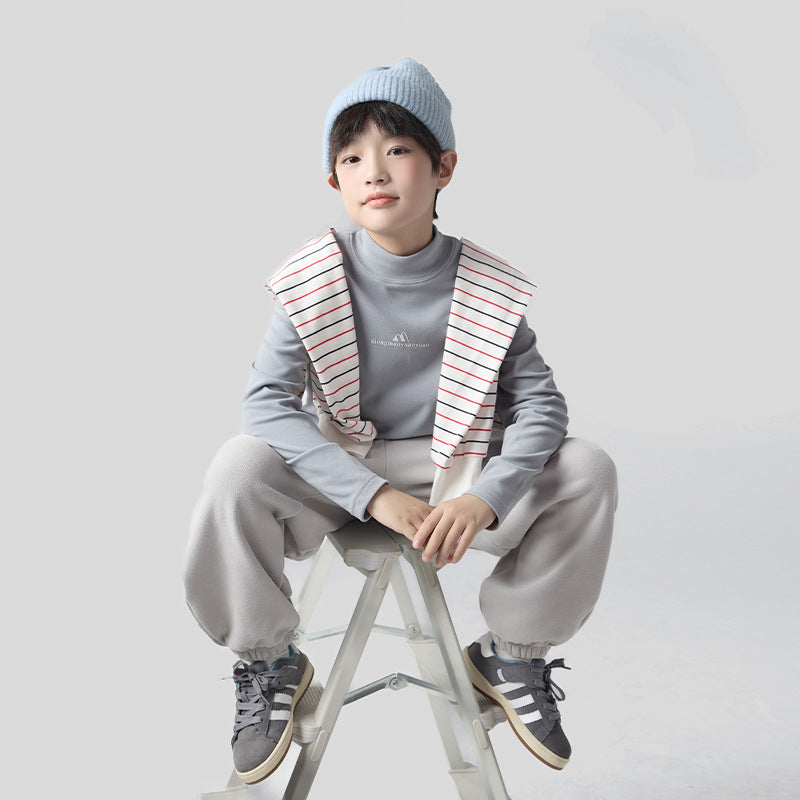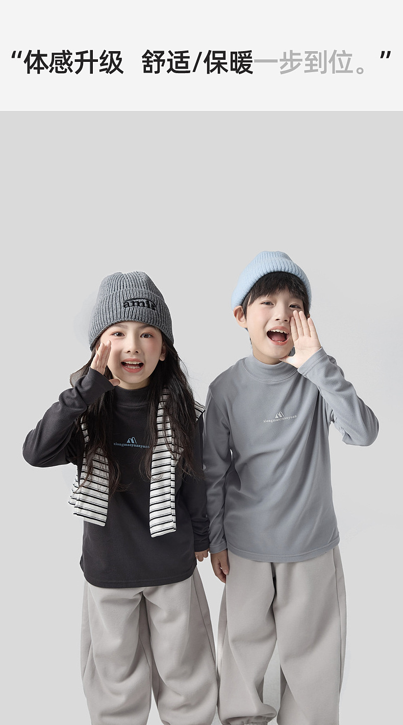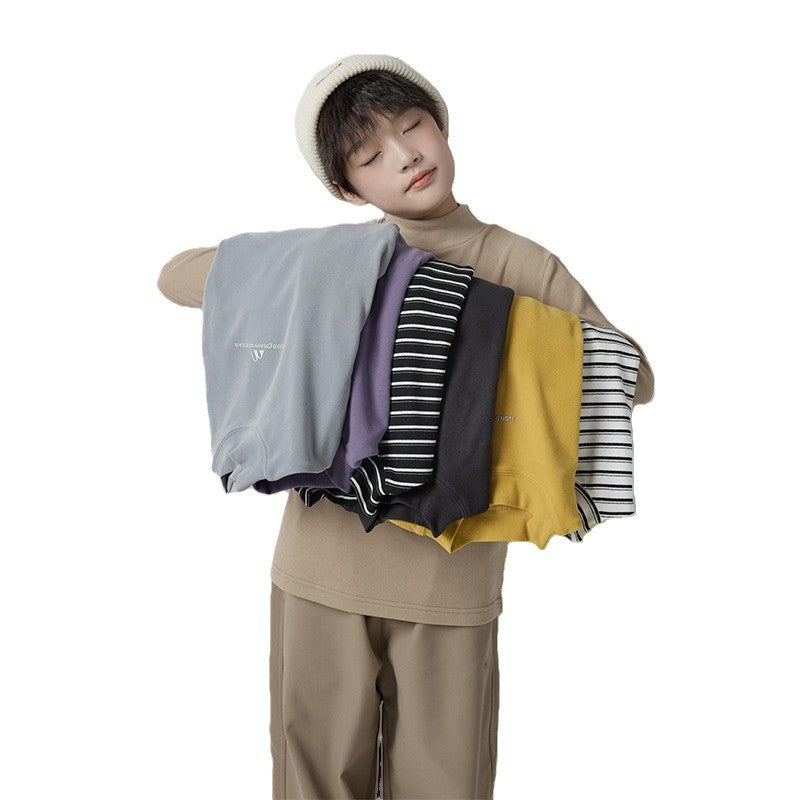 FF24102520秋冬新款德絨自發性熱半高領兒童打底衫男童t恤保暖內搭上衣(9-12天到貨)