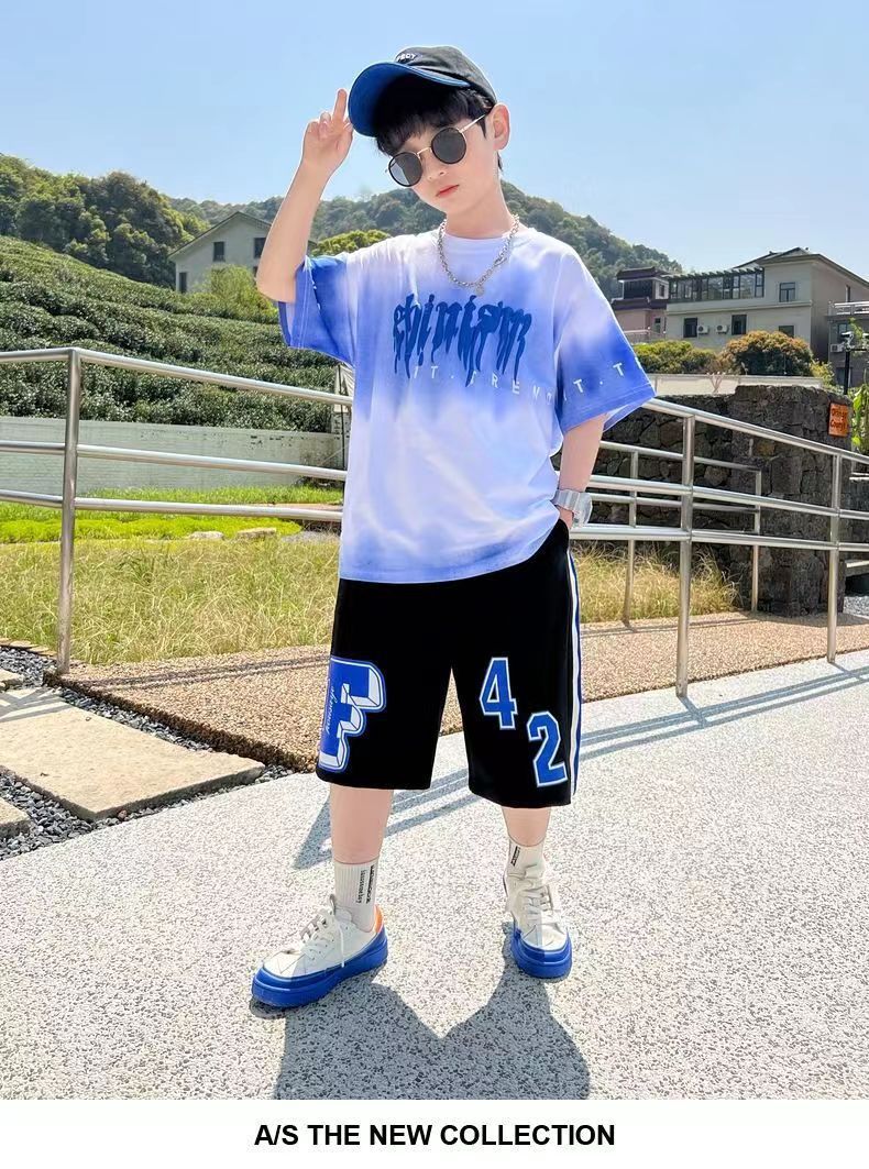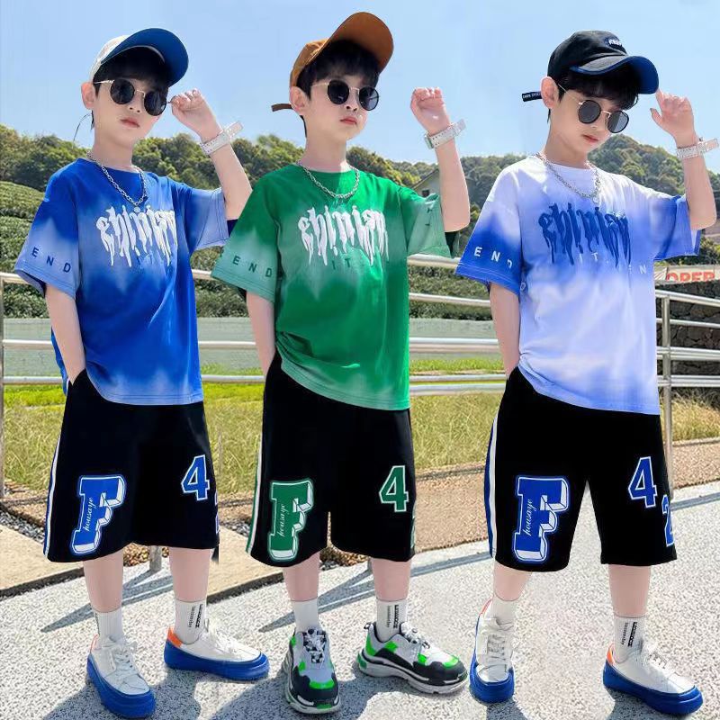 FG25053001短袖男童新款兒童裝洋氣中大男孩2025夏裝夏季酷帥套裝時髦潮運動