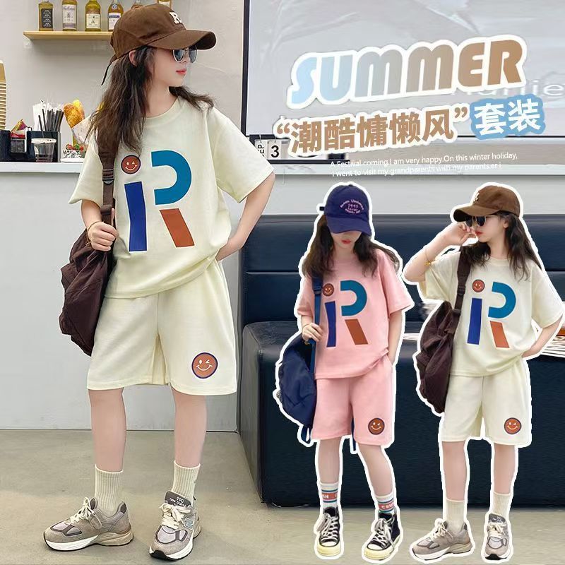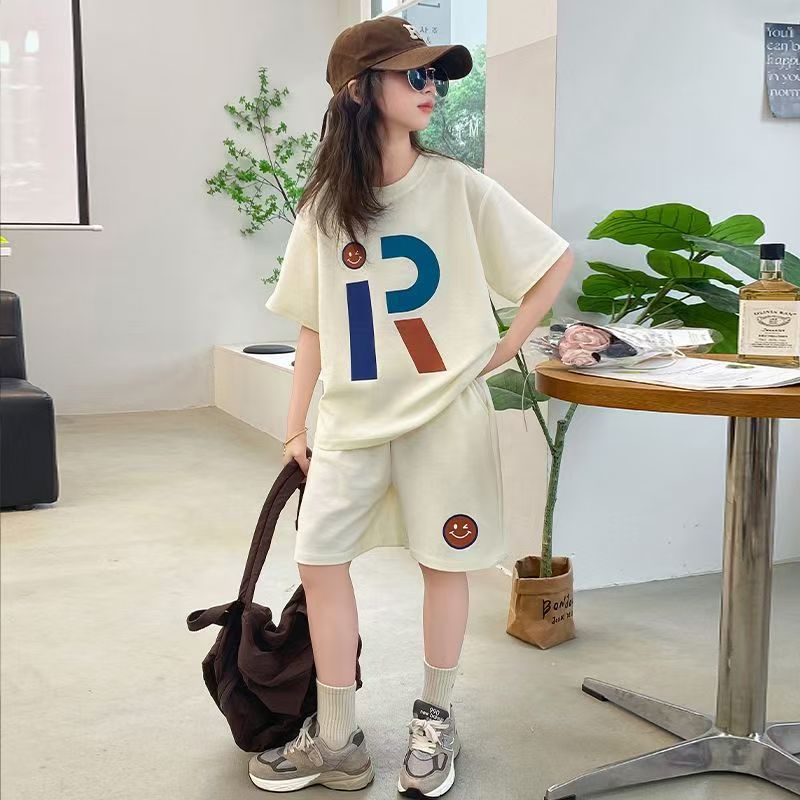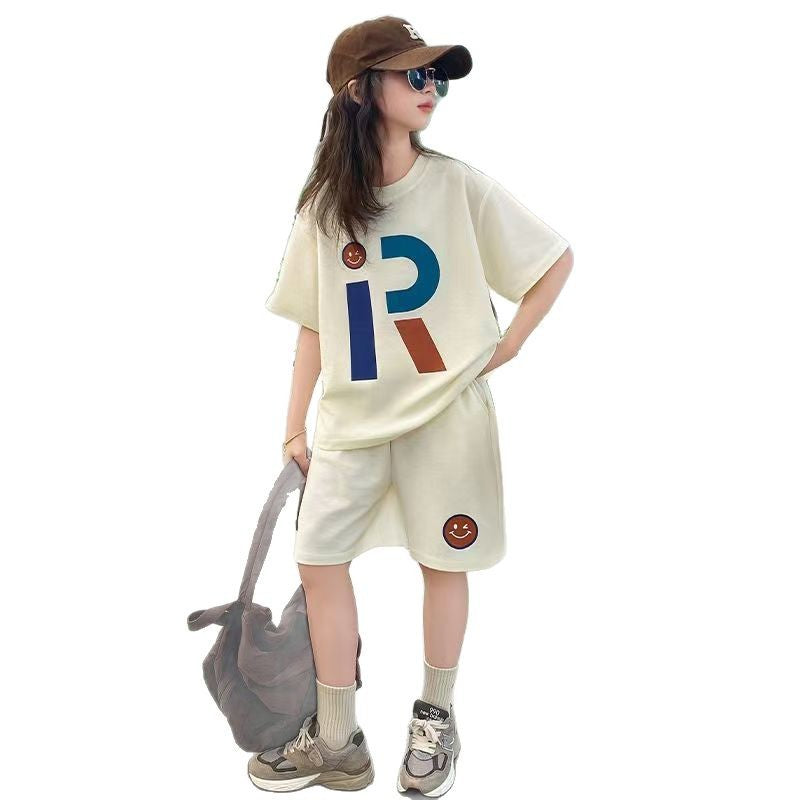 FG25053007短袖短褲套裝夏季兒童大童時尚寬鬆運動短褲兩件套休閒時尚潮流