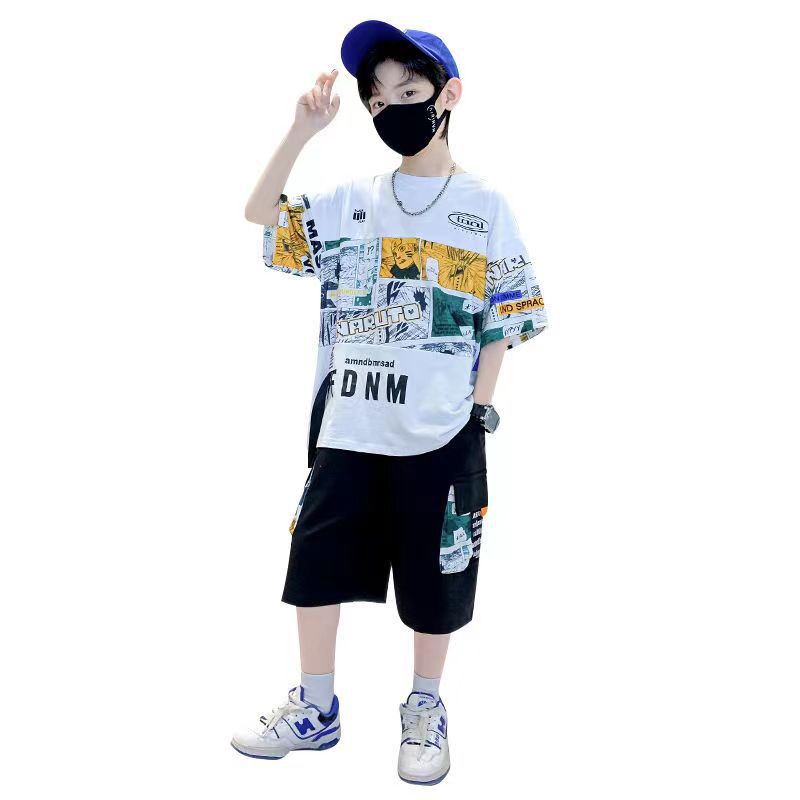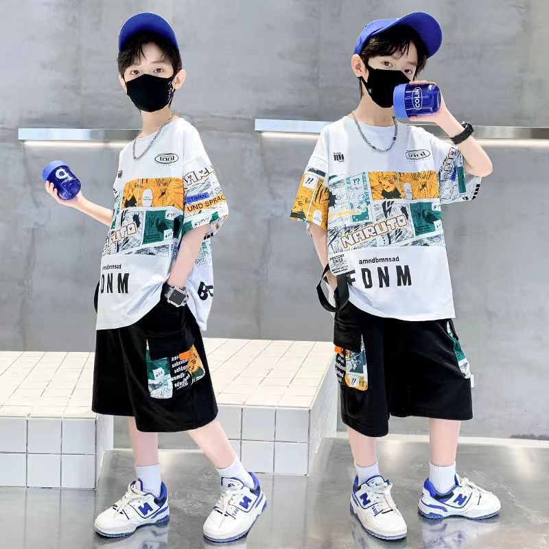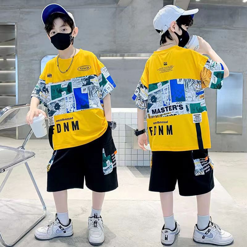 FG25053009新款兒童夏季T恤兩件組中大童休閒潮款男童夏裝短袖套裝帥氣時髦