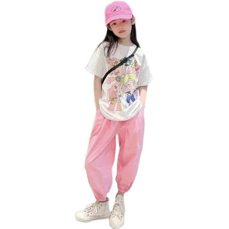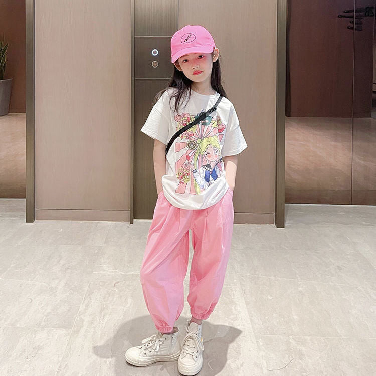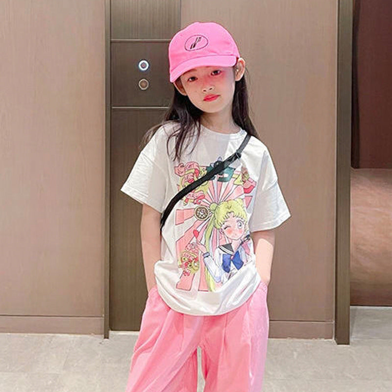 FG25053010美少女戰士童裝韓版中大童女童夏裝短袖九分褲套裝潮流兩件套兒童