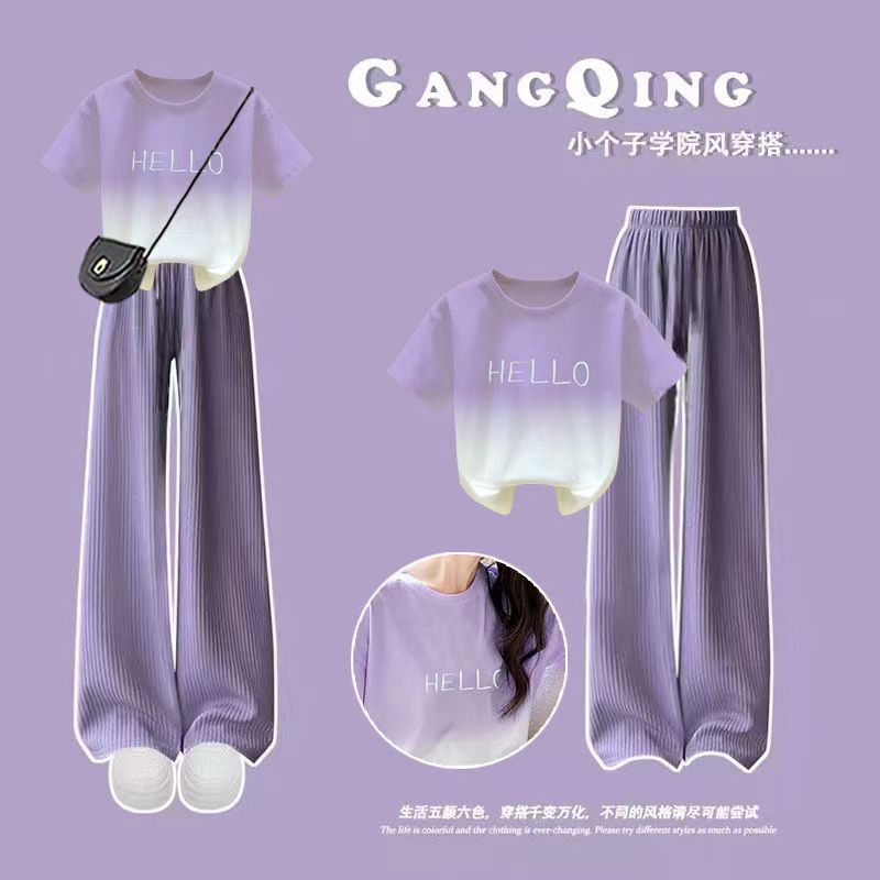 FG25053011時尚百搭字母上衣休閒氣質百穿搭一整套多巴胺慵懶風套裝兩件套