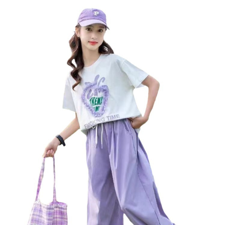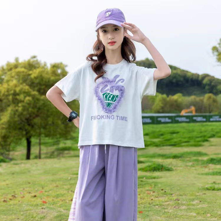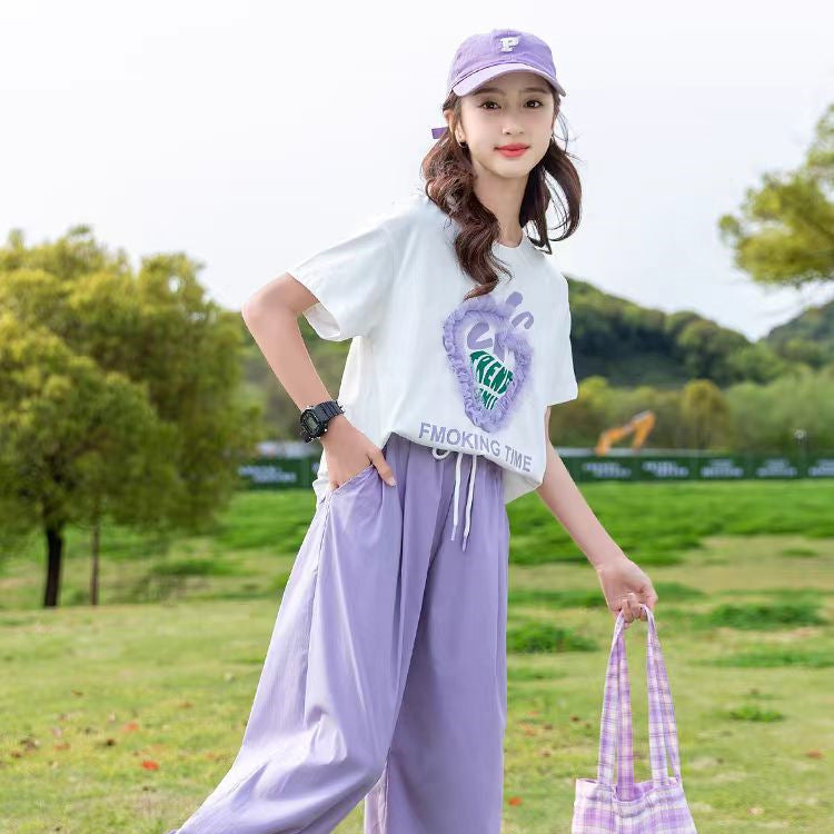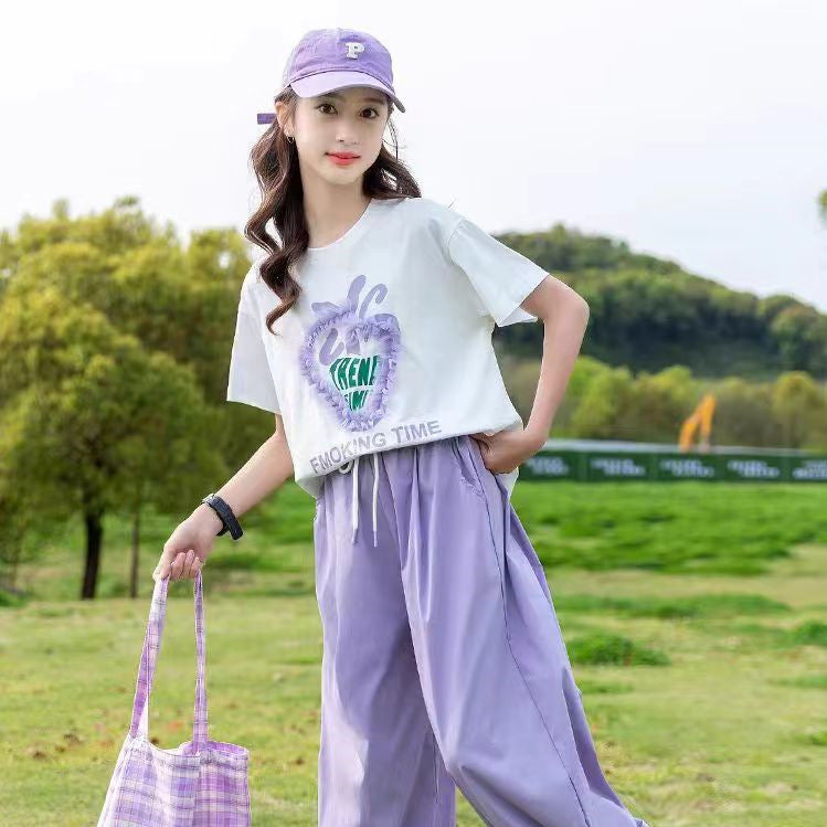 FG25053013女童夏裝套裝2025新款洋氣夏款兒童裝短袖網紅女孩夏季運動兩件套