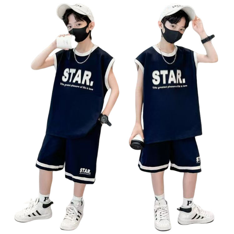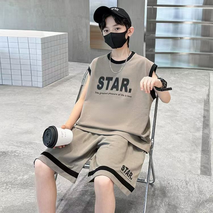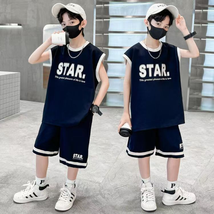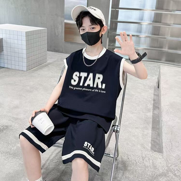 FG25053014痞帥男小童夏季背心套裝2025新款炸街兒童夏裝無袖童裝寶寶衣服潮