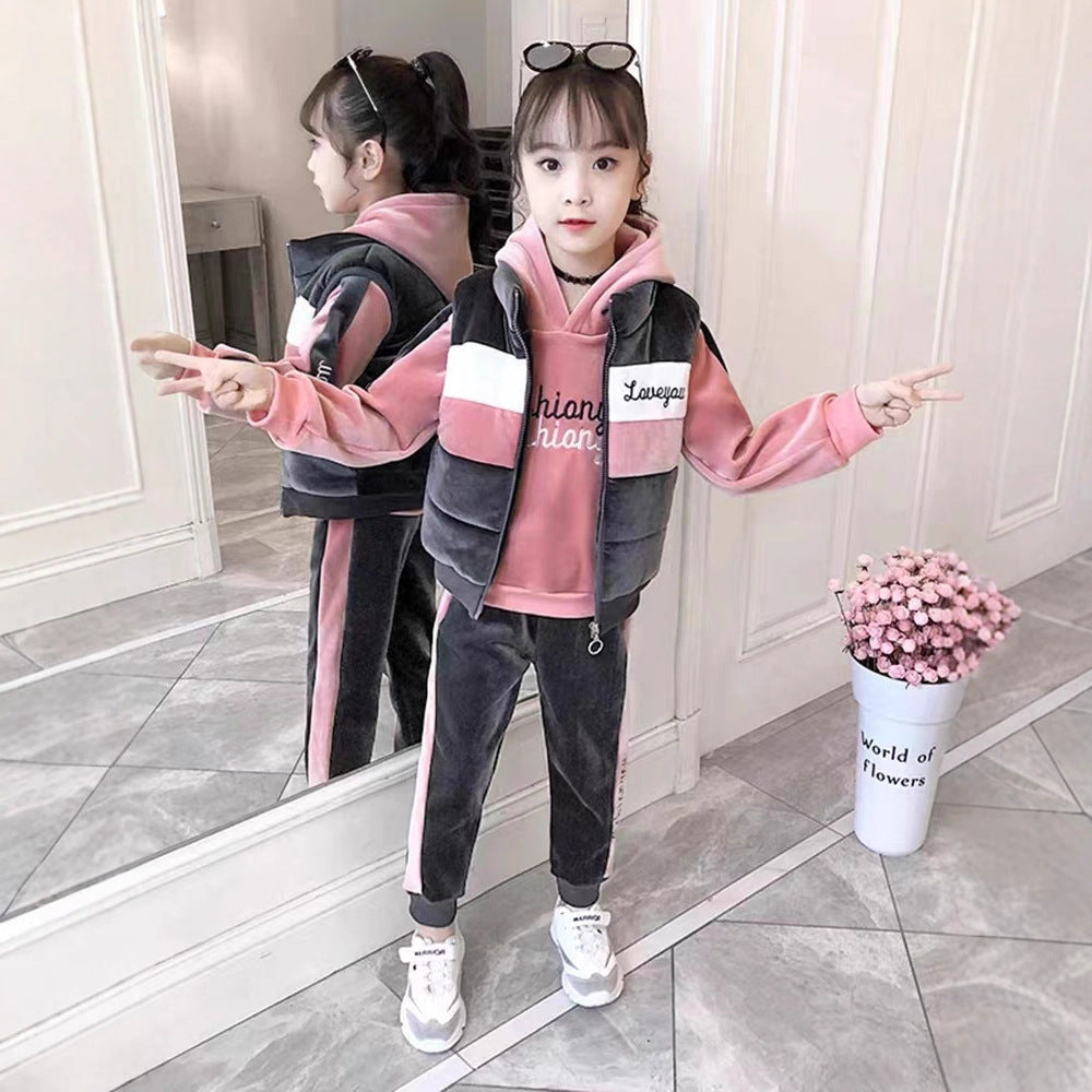 FG25112009女童春裝套裝2025秋季新款大童裝小女孩兒童網紅洋氣運動三件套
