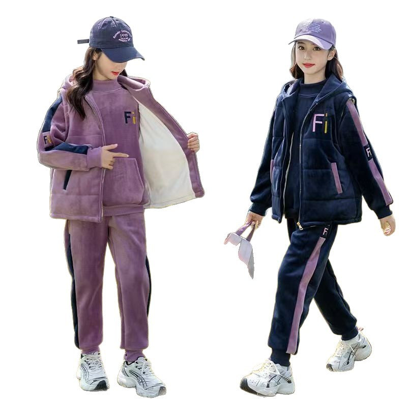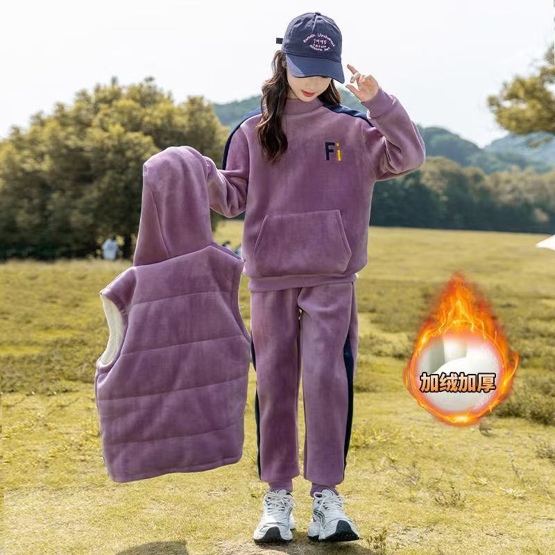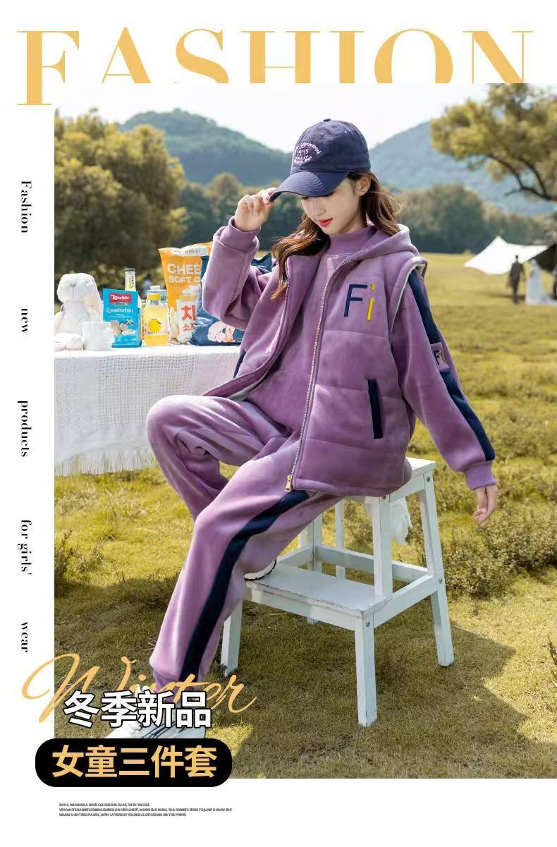 FG25112010女童加絨衛衣套裝秋冬裝時尚洋氣大童兒童冬季加厚三件式運動套
