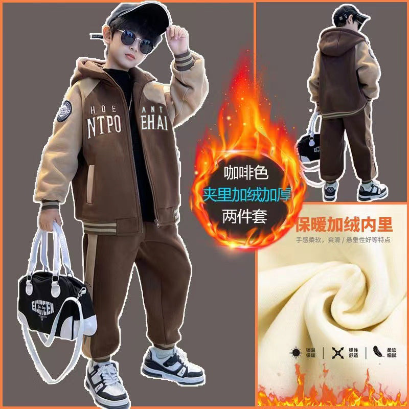 FG25112016兒童裝男童套裝加絨冬季2025新款中大童加厚裙子休閒長褲男孩冬裝