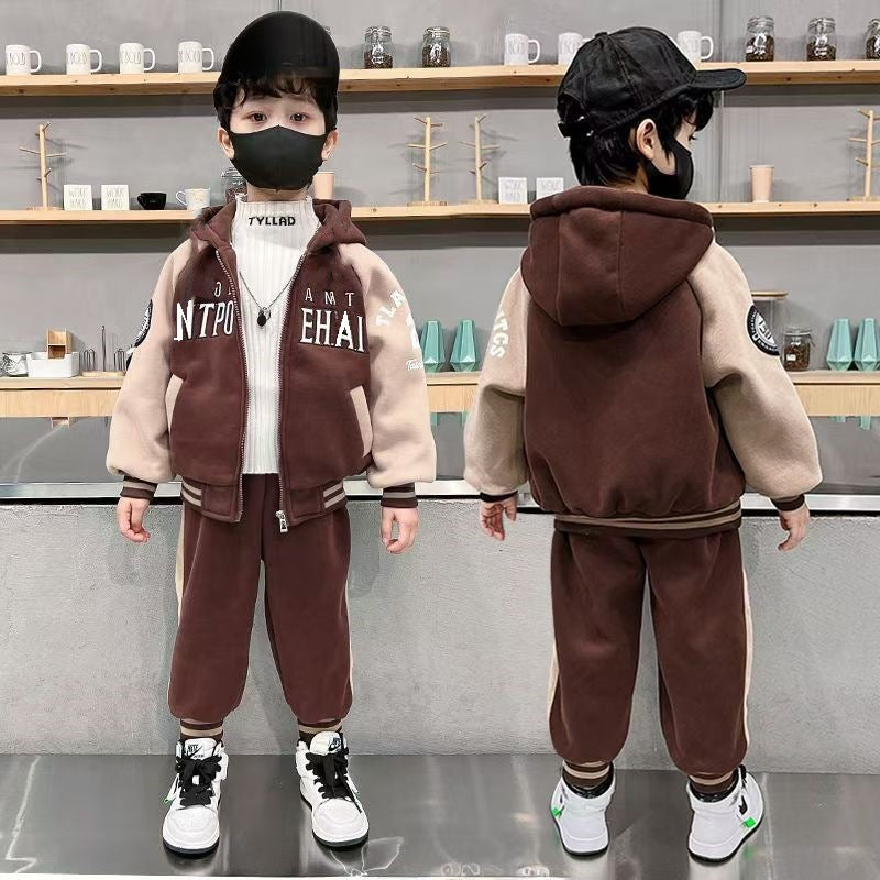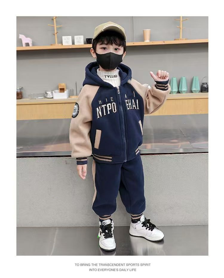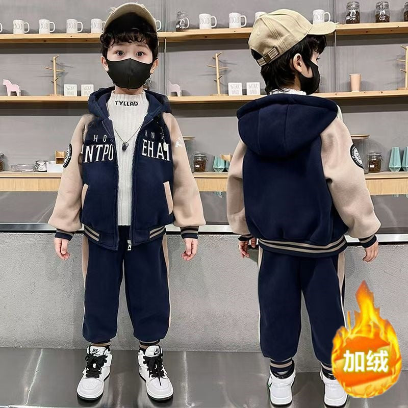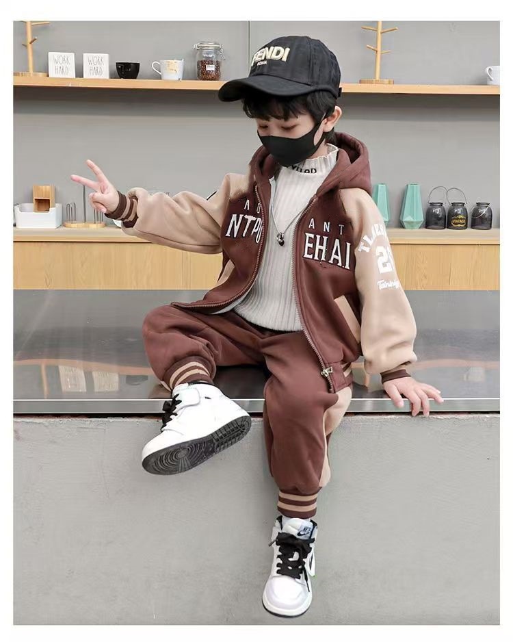 FG25112017兒童裝男童套裝加絨冬季2025新款中大童加厚裙子休閒長褲男孩冬裝
