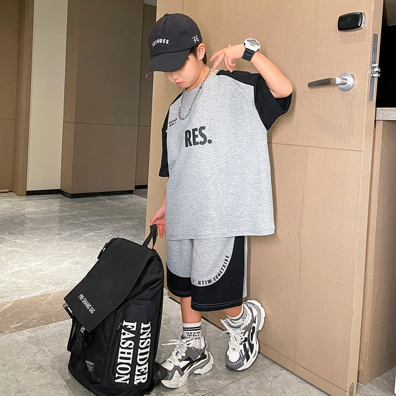 🎈精品童裝🎈FH25062704男童夏裝套裝大兒童裝夏季短袖T恤短褲運動服洋氣時髦潮