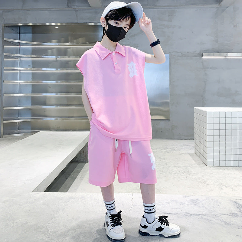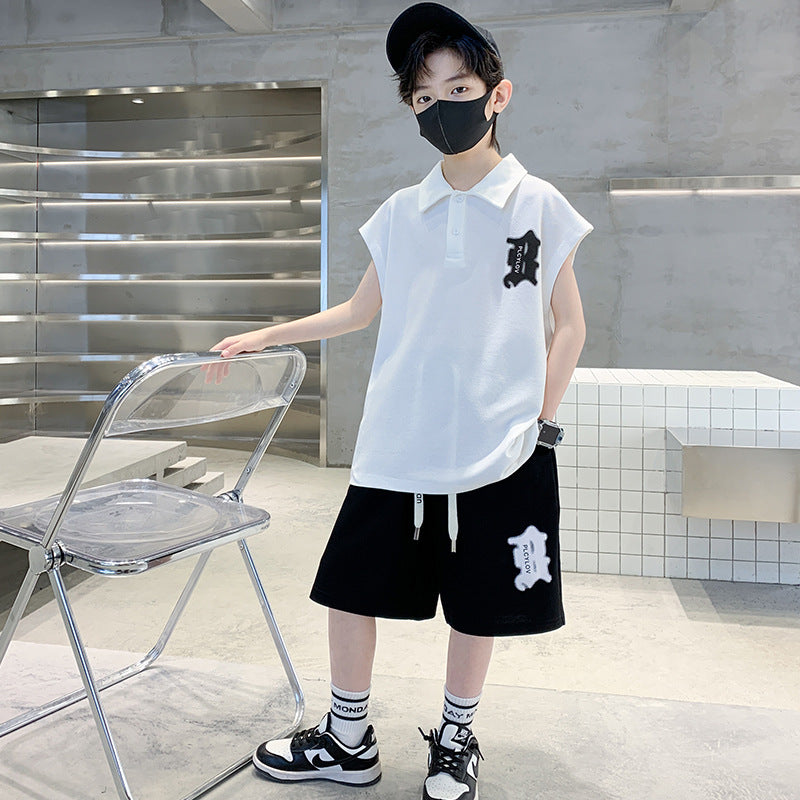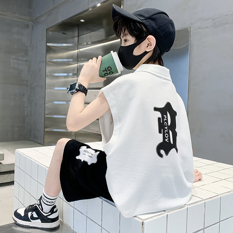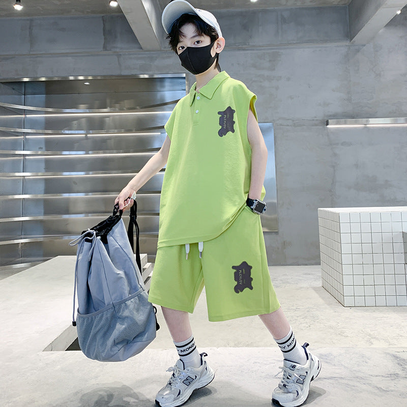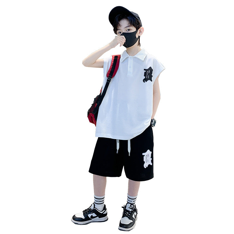 🎈精品童裝🎈FH25062705男童夏裝背心POLO衫套裝夏季新款中大童運動痞帥氣夏款兩件套