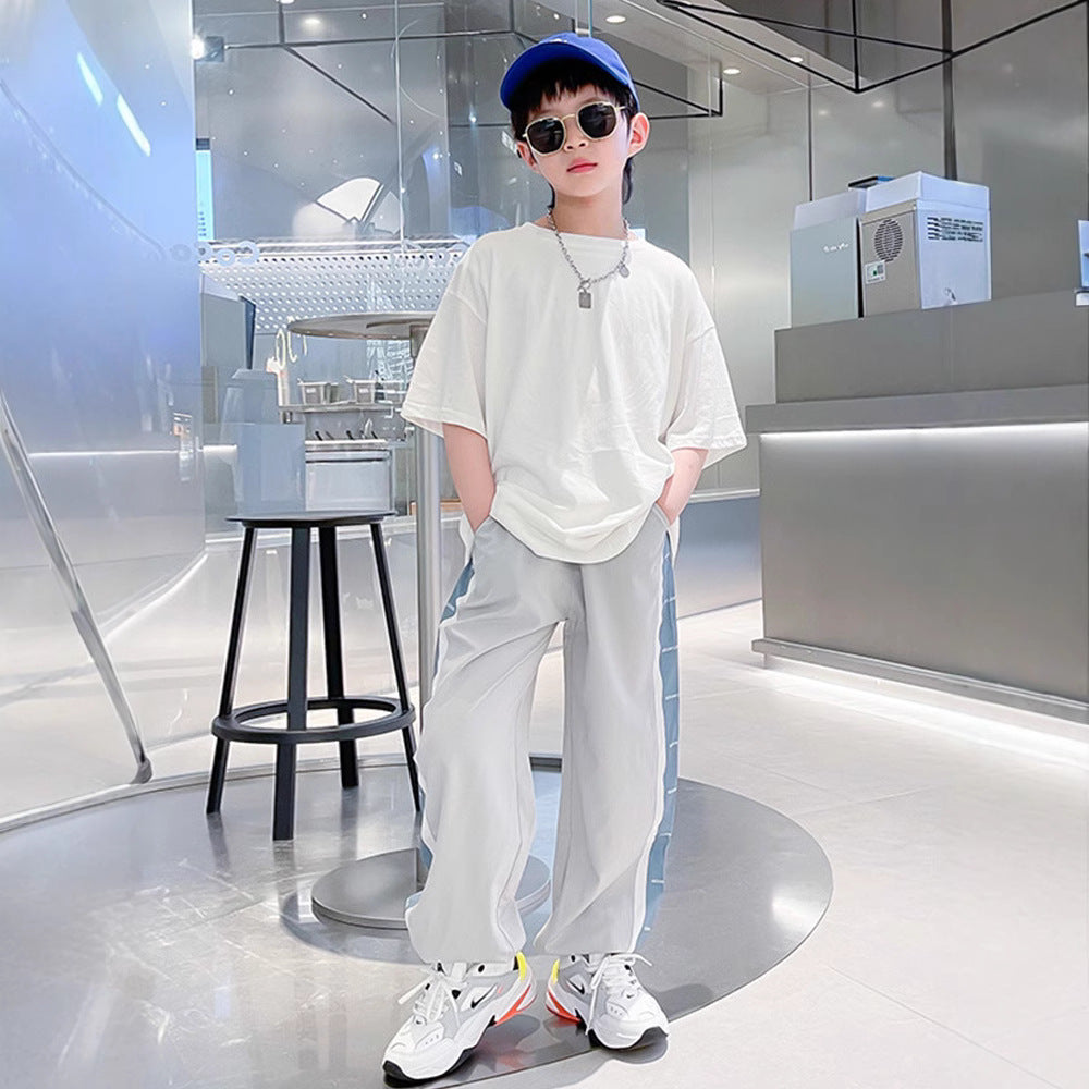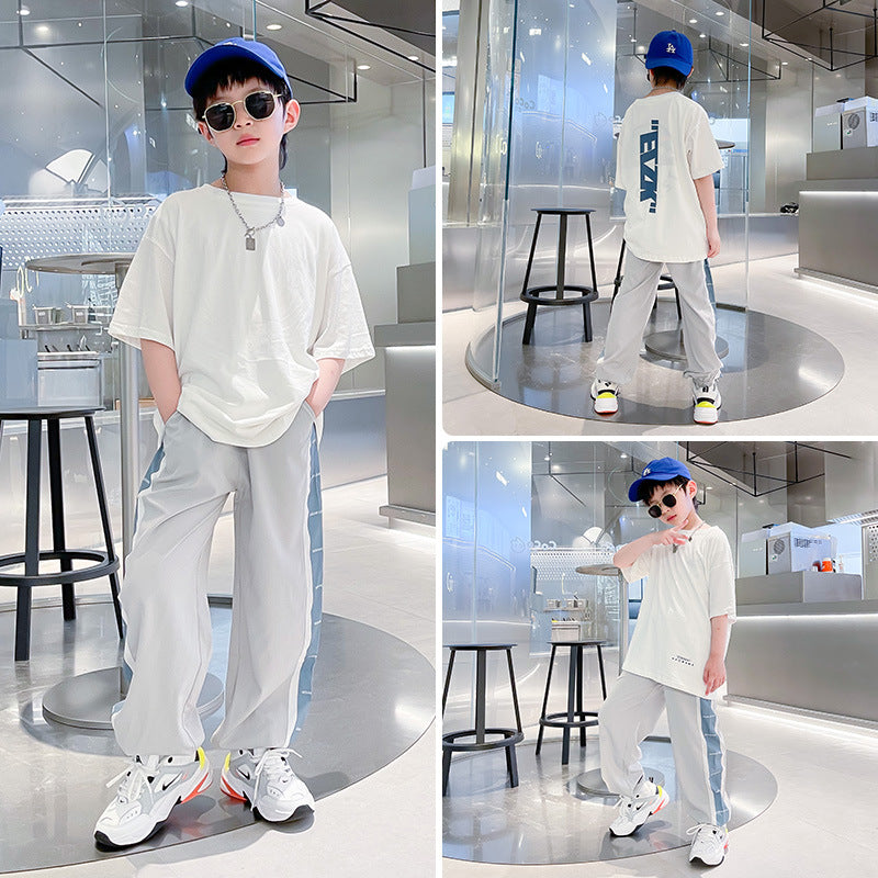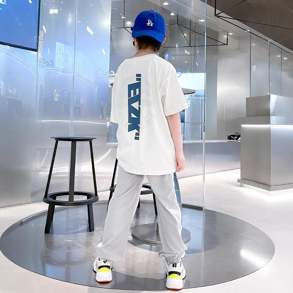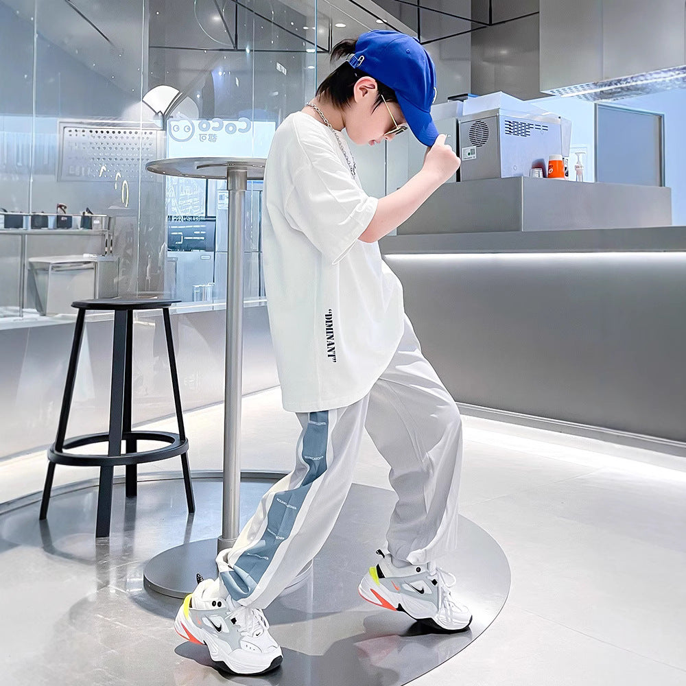 🎈精品童裝🎈FH25062715男童夏季套裝中大童短袖長褲運動夏裝潮帥氣時髦兒童網紅炸街白色