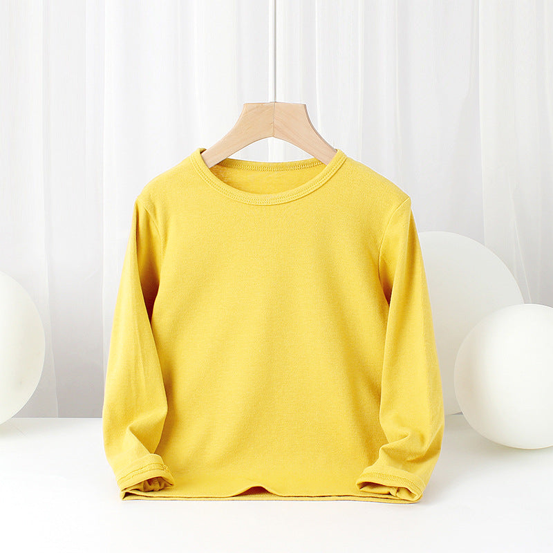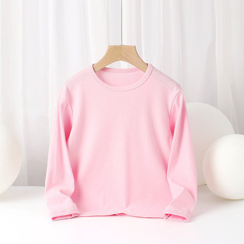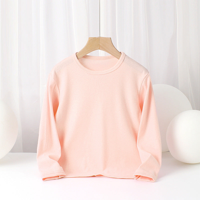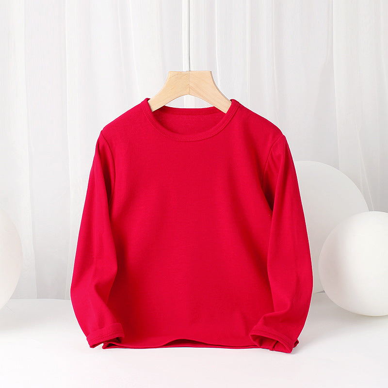 FI25101404秋季童裝韓版新款男童打底衫女童純棉彈性純色長袖兒童T恤批發