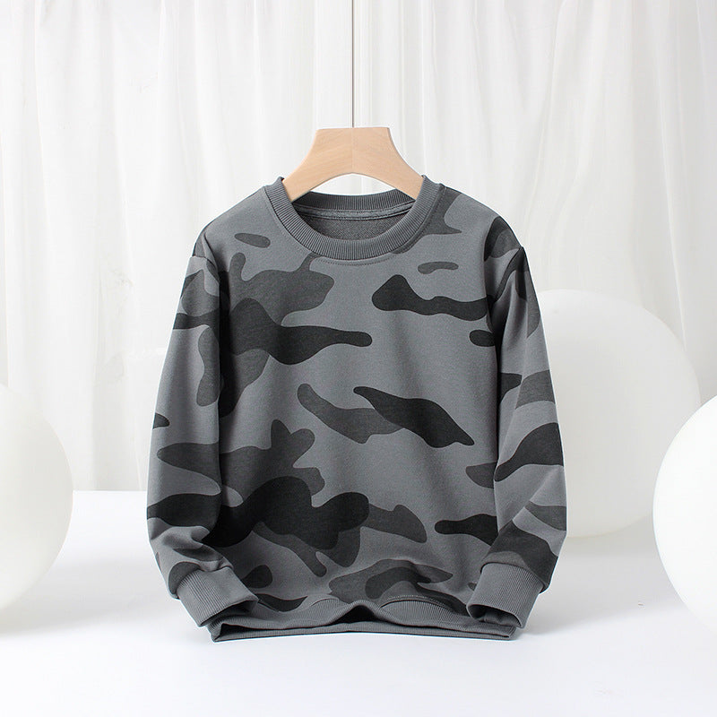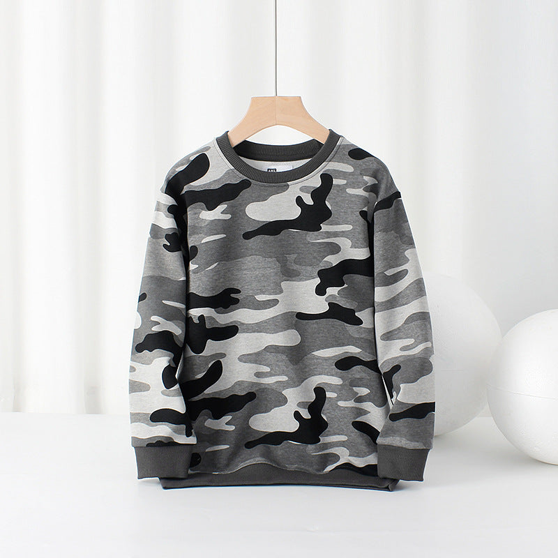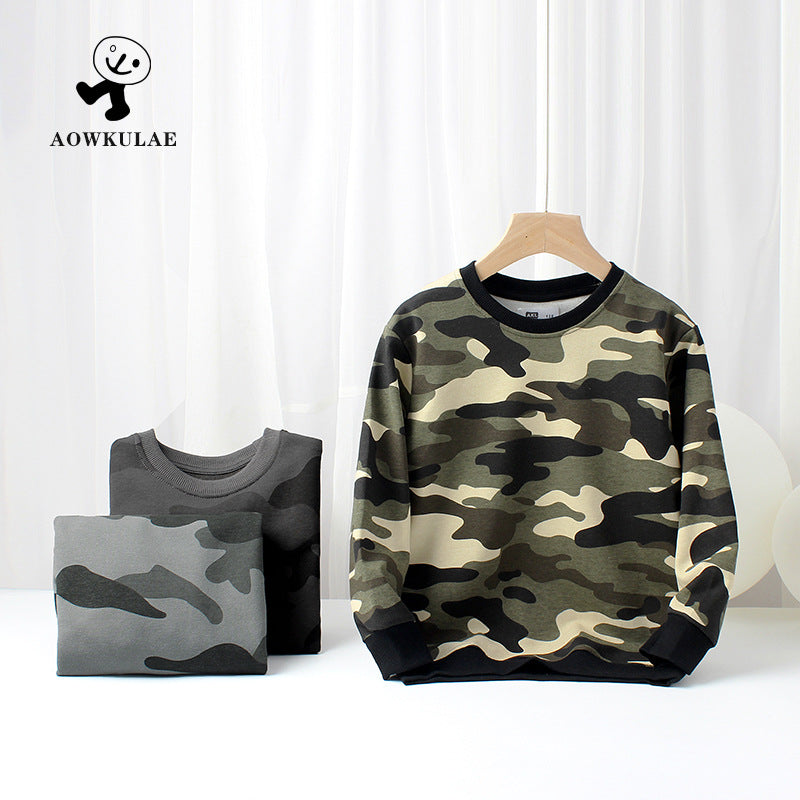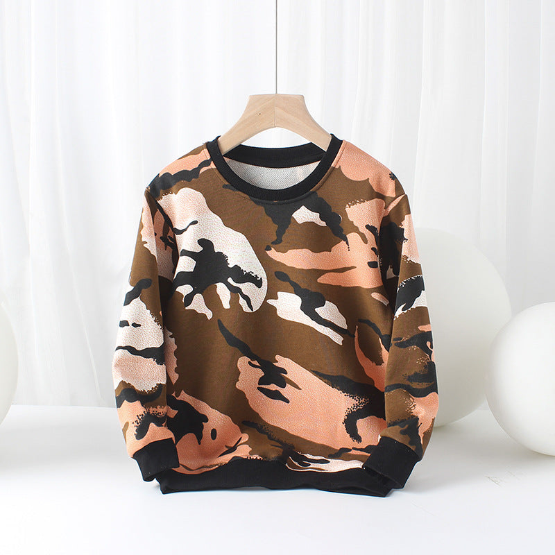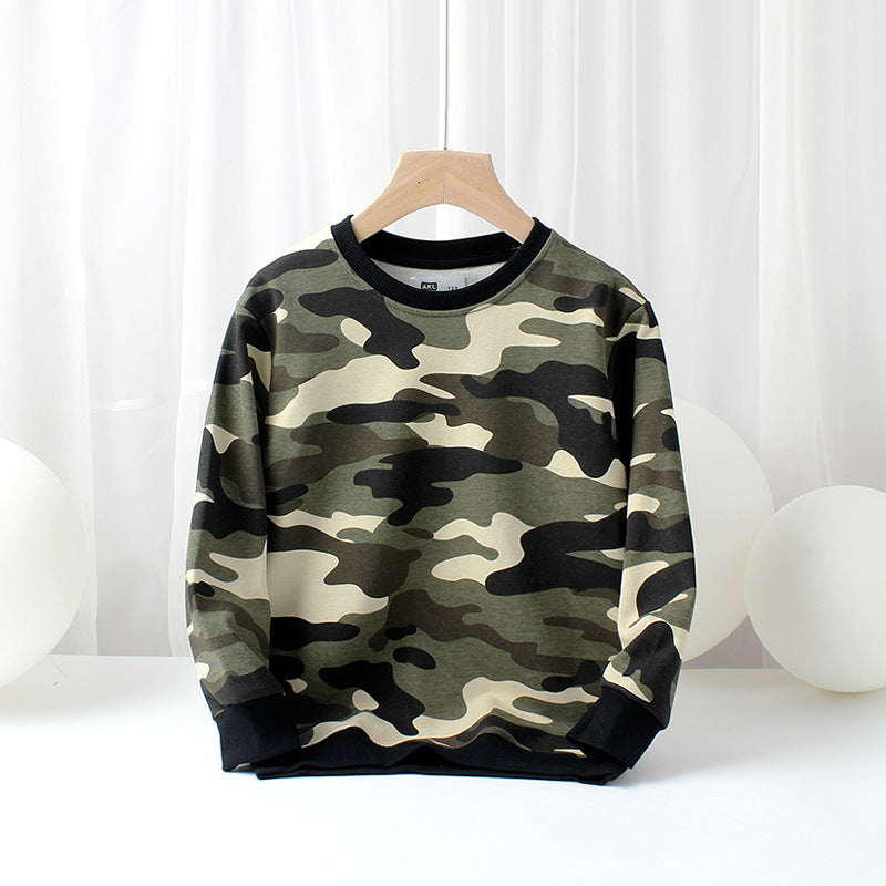 FI25101405韓國春季版童裝新款兒童衛衣長袖中童時尚迷彩t男童打底衫