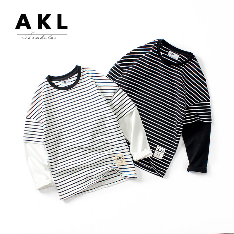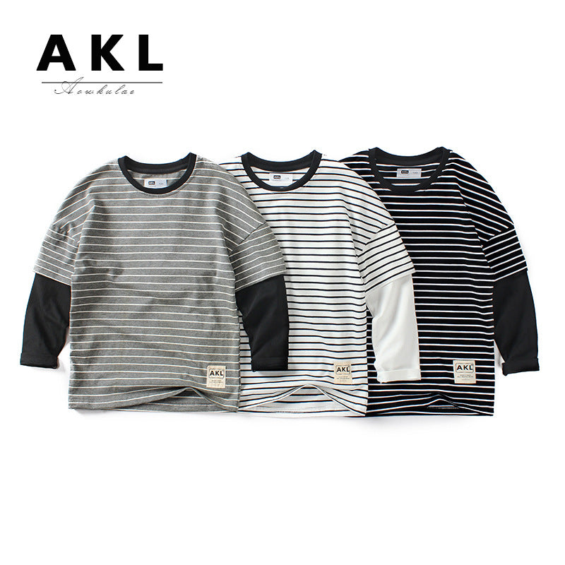 FI25101406韓版新款兒童條紋t長袖女童上衣打底衫童裝長袖t恤