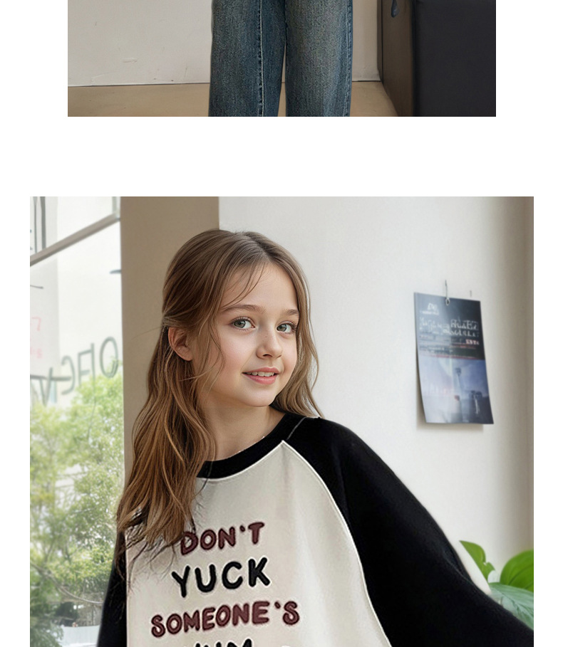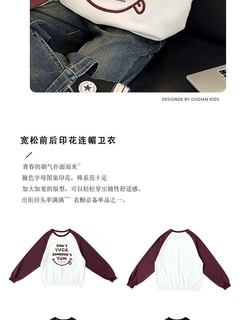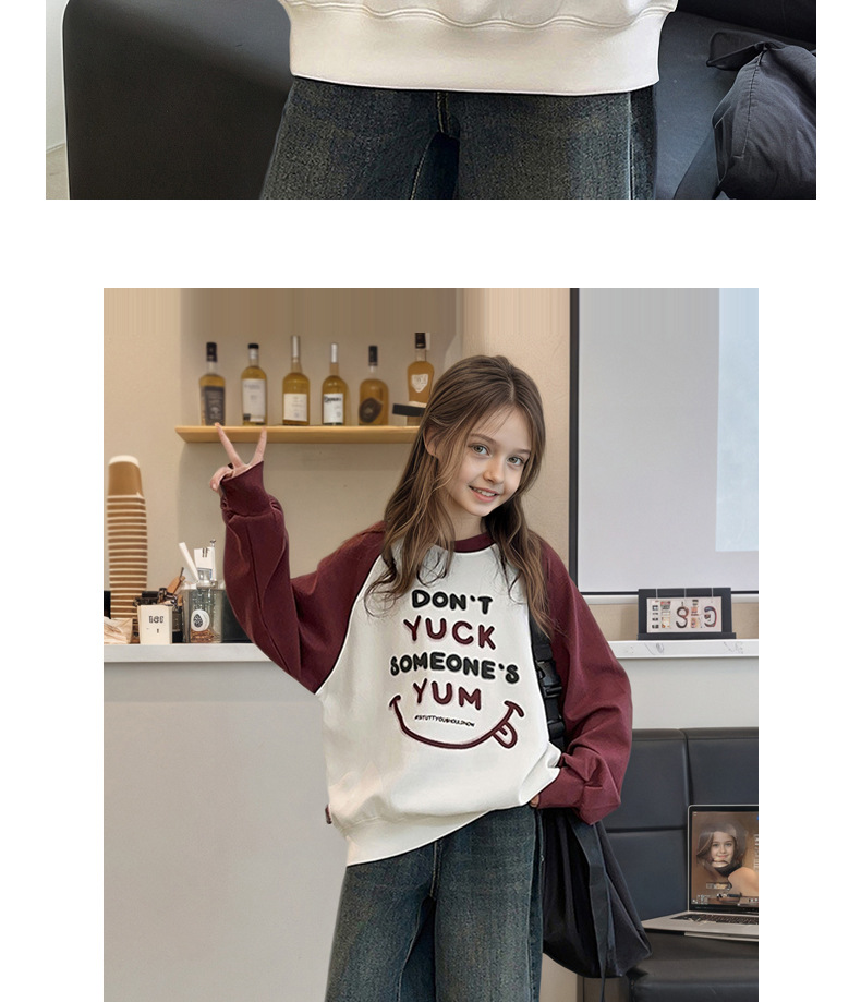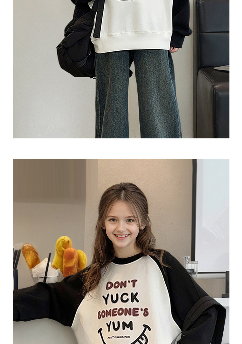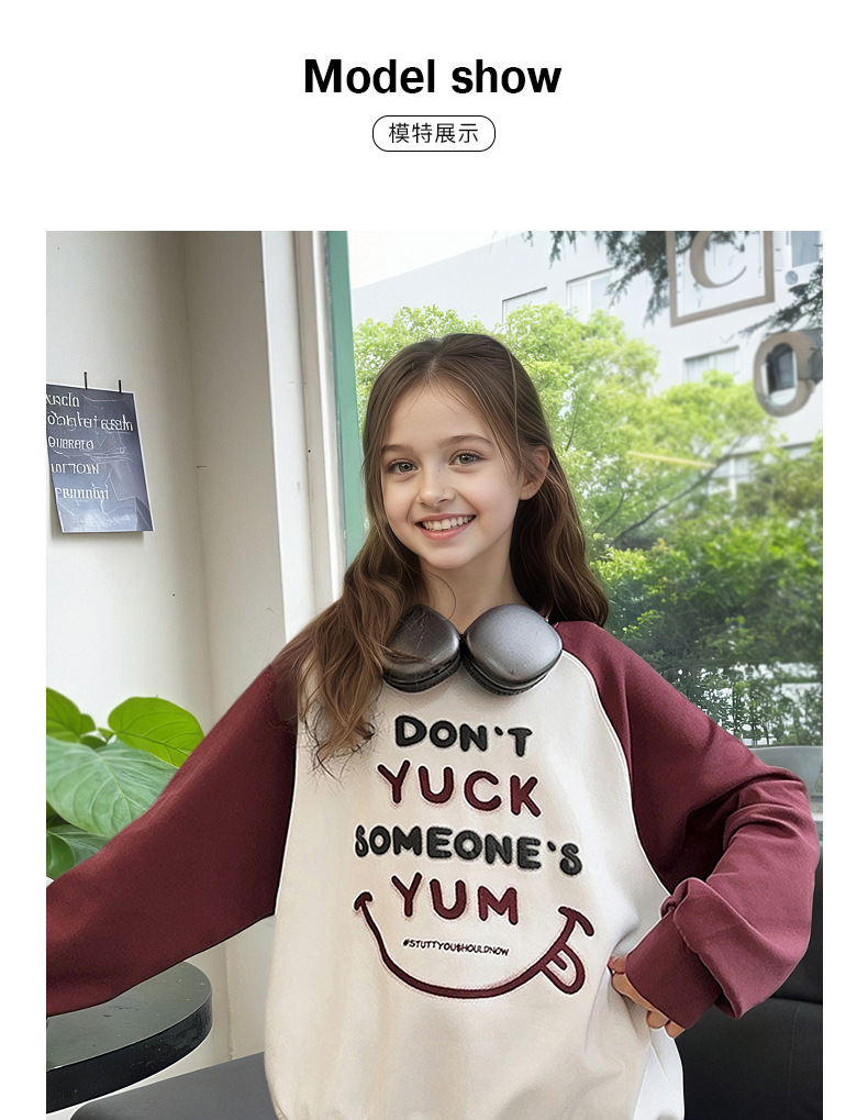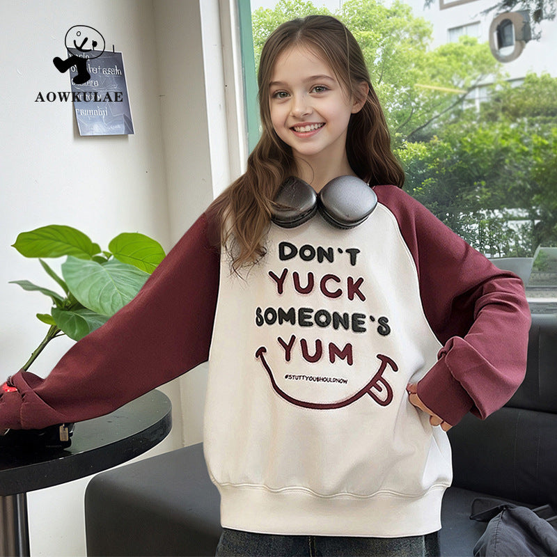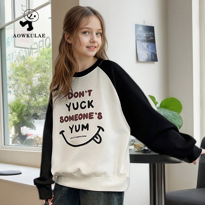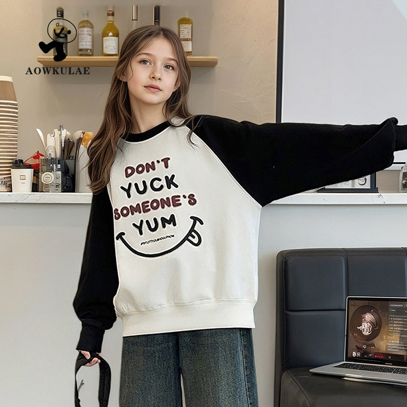 FI25101408女童秋季韓版新款百搭長袖衛衣中大童寬鬆撞色上衣兒童衛衣批發