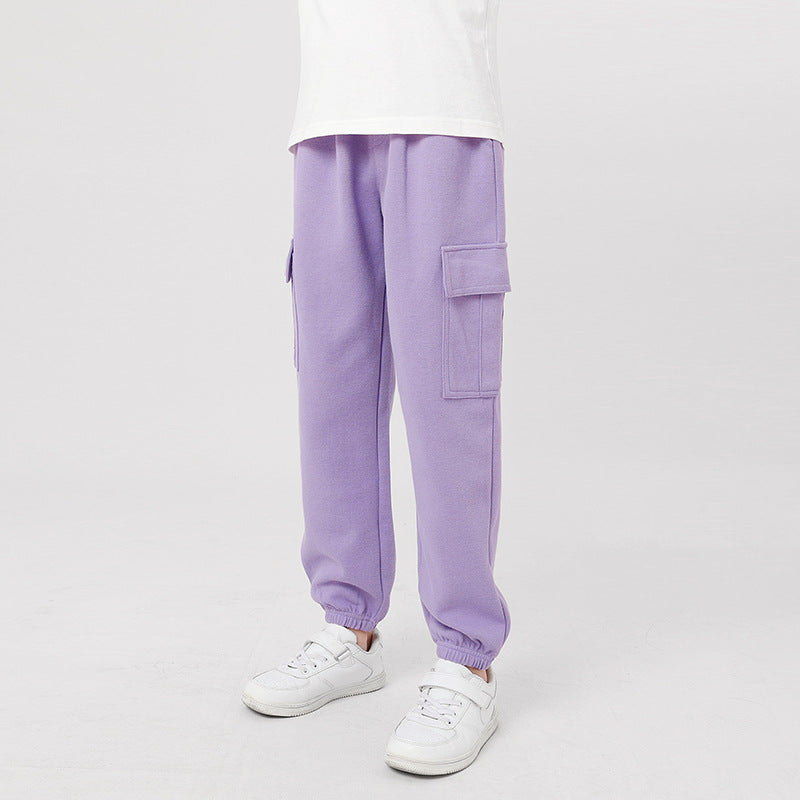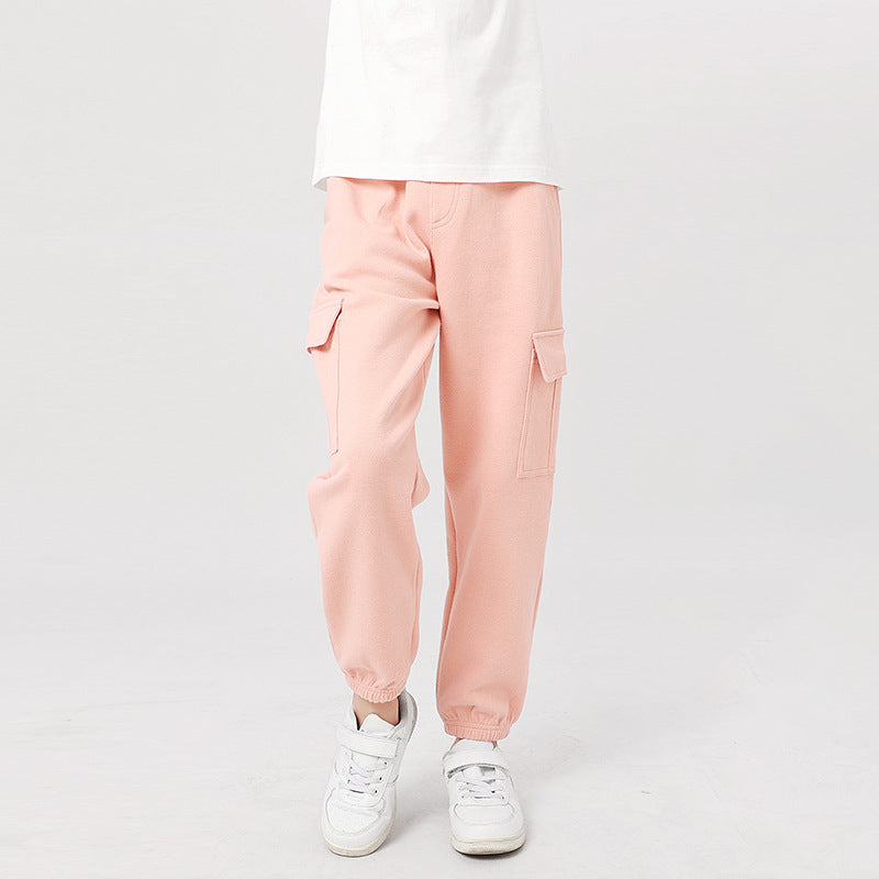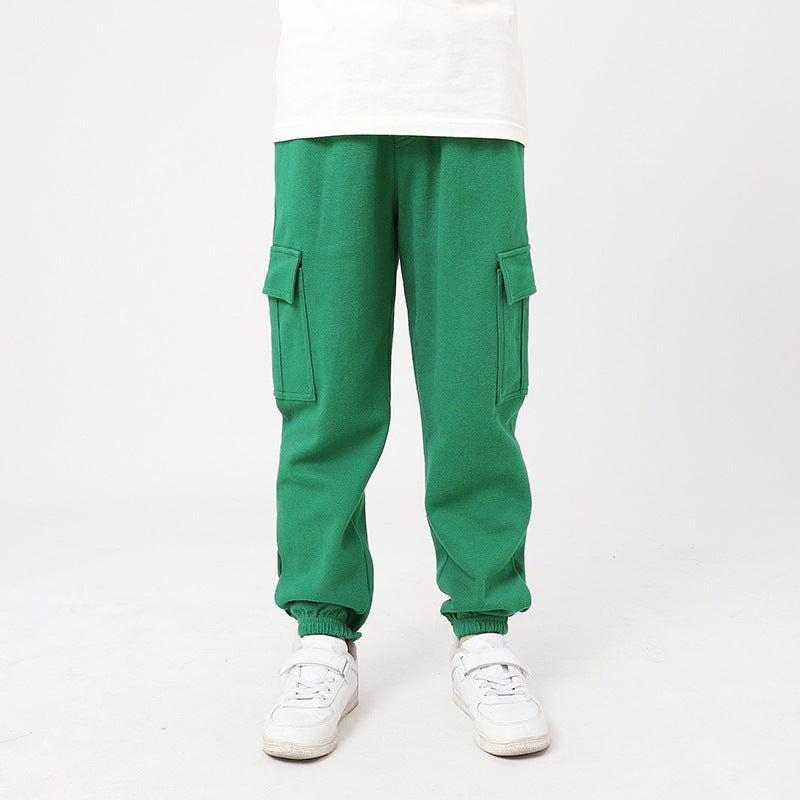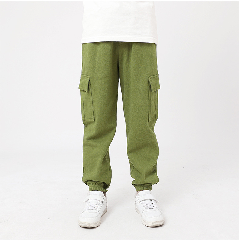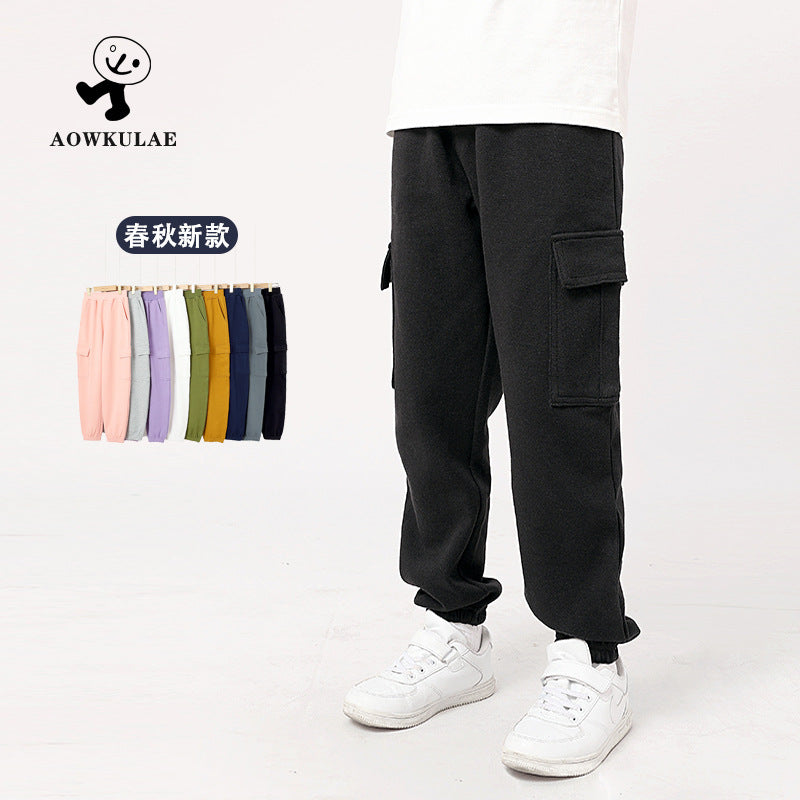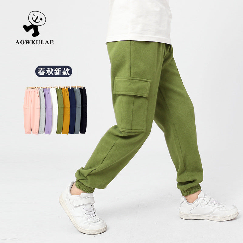 FI25101415秋季童褲韓版新款男童休閒褲中大純童運動色工裝褲女童褲子批發