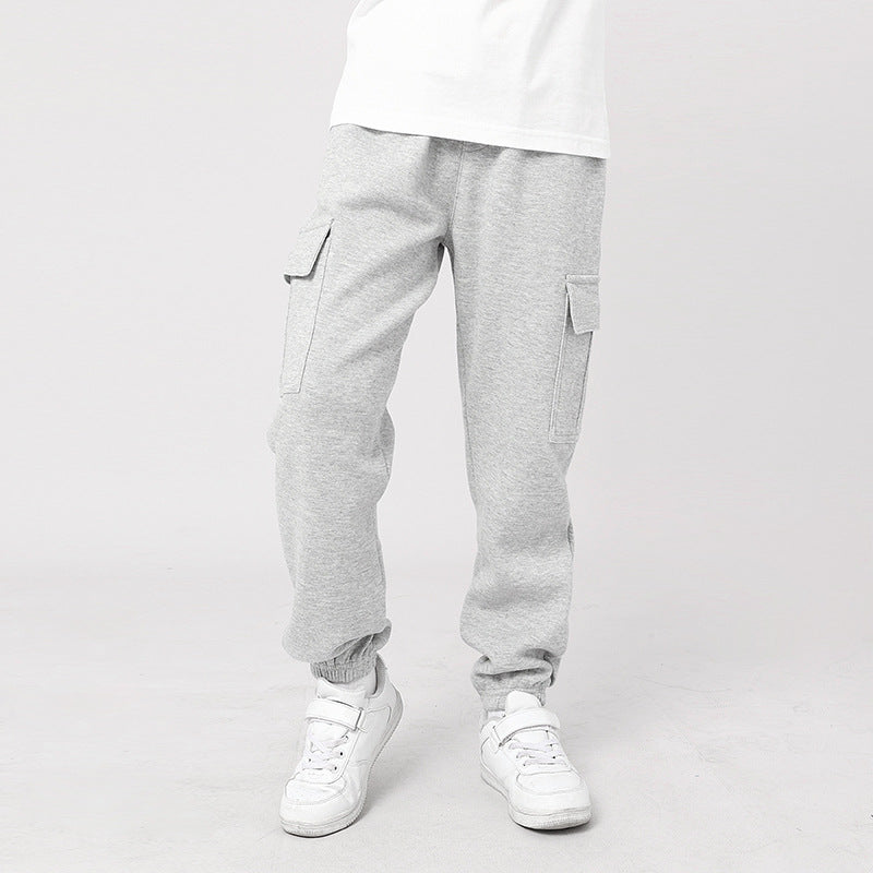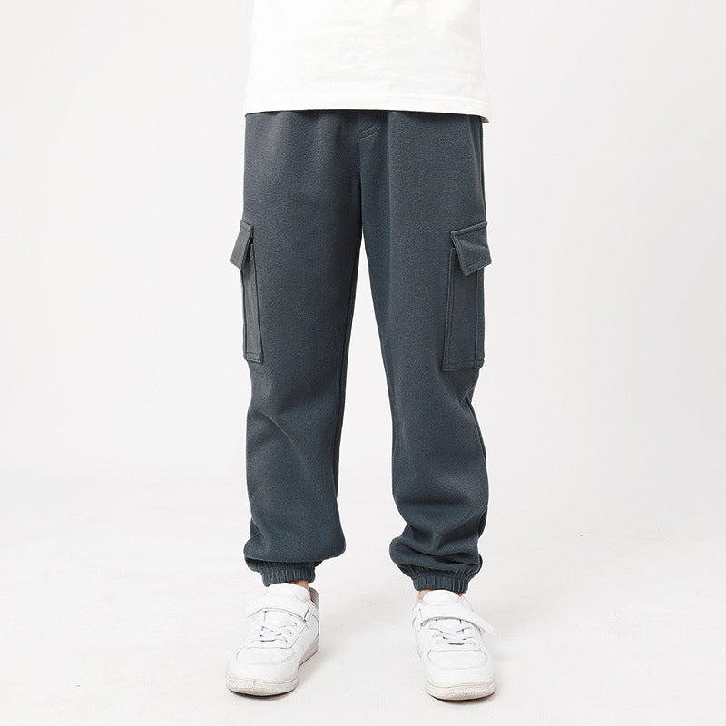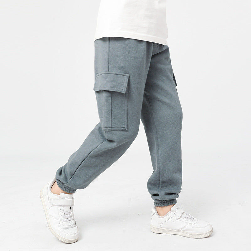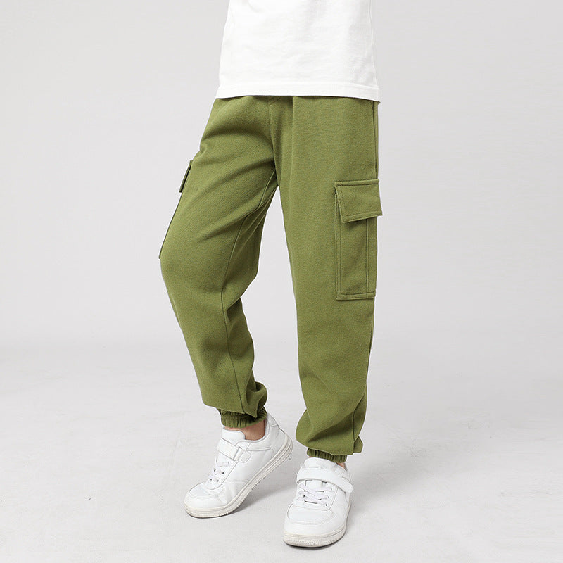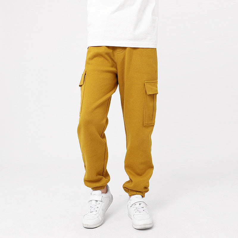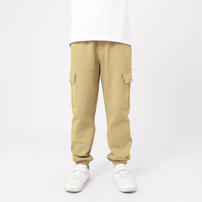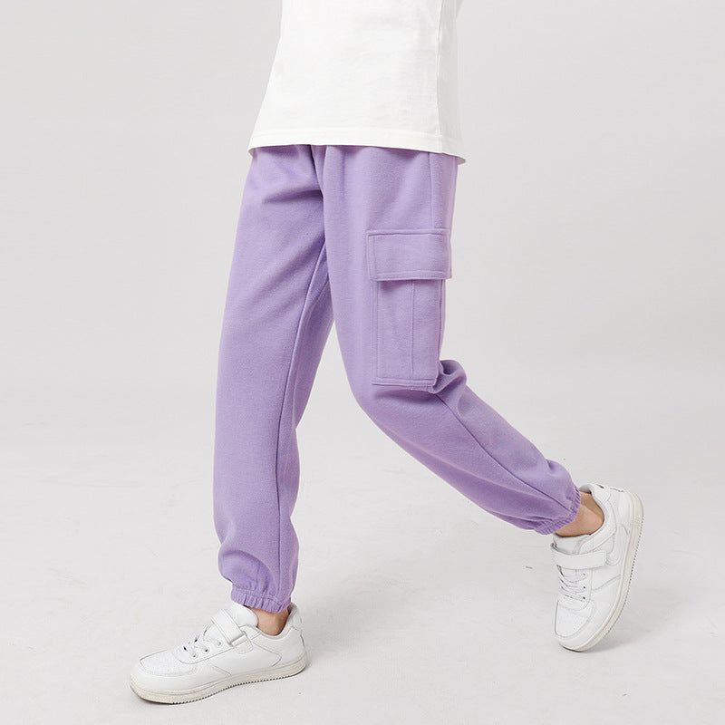 FI25101415秋季童褲韓版新款男童休閒褲中大純童運動色工裝褲女童褲子批發