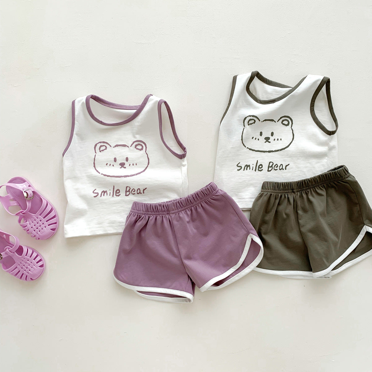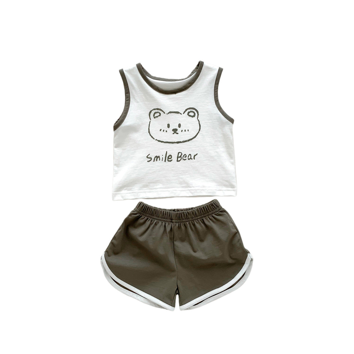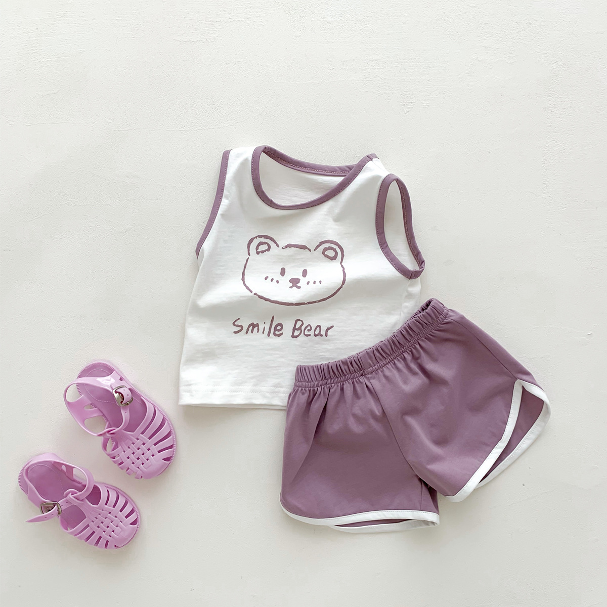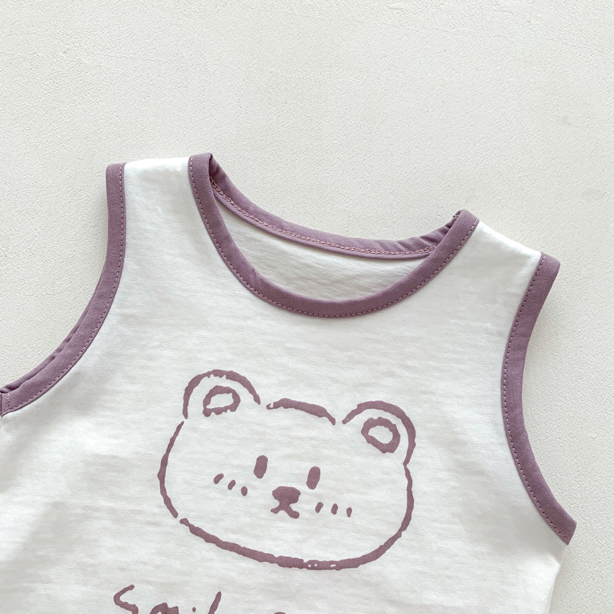 G23051620男女童夏季薄款背心短褲套裝-卡通熊印花無袖兩件套裝