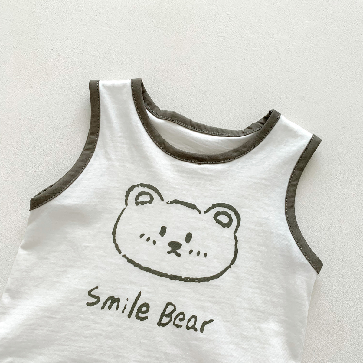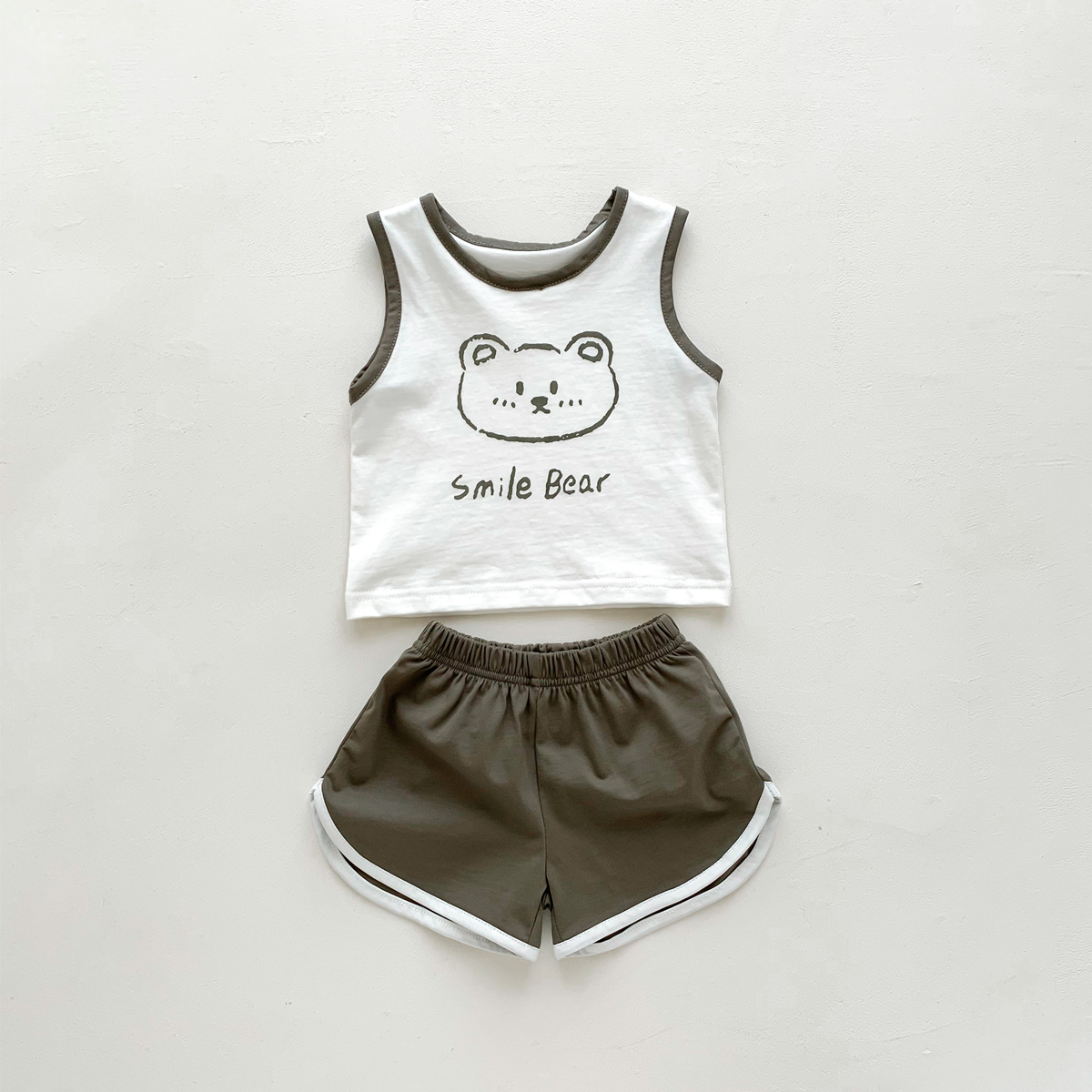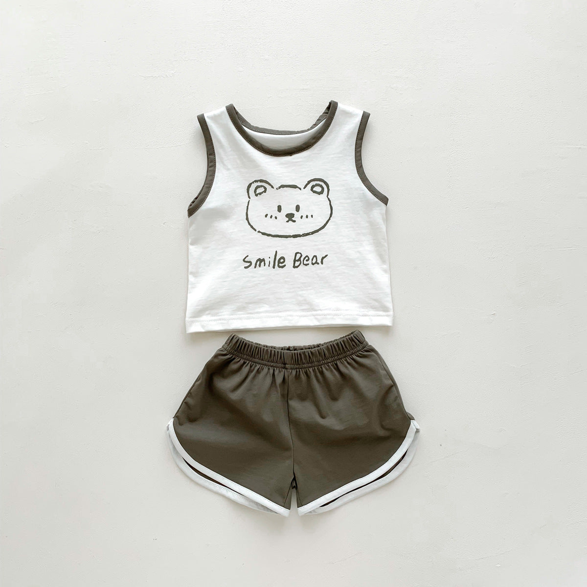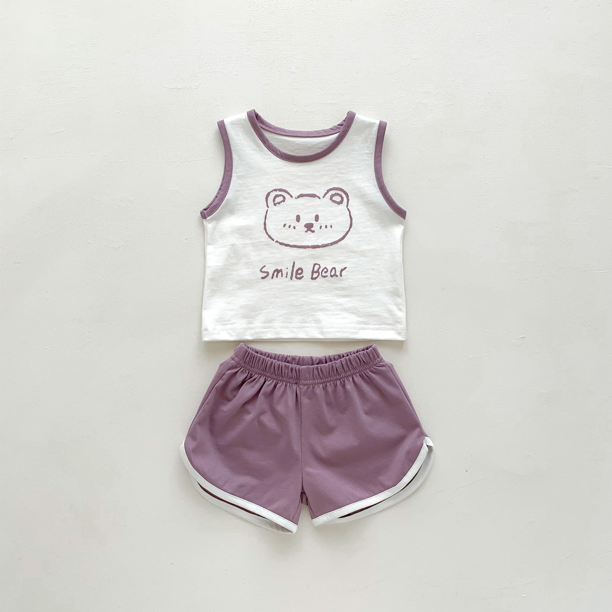 G23051620男女童夏季薄款背心短褲套裝-卡通熊印花無袖兩件套裝
