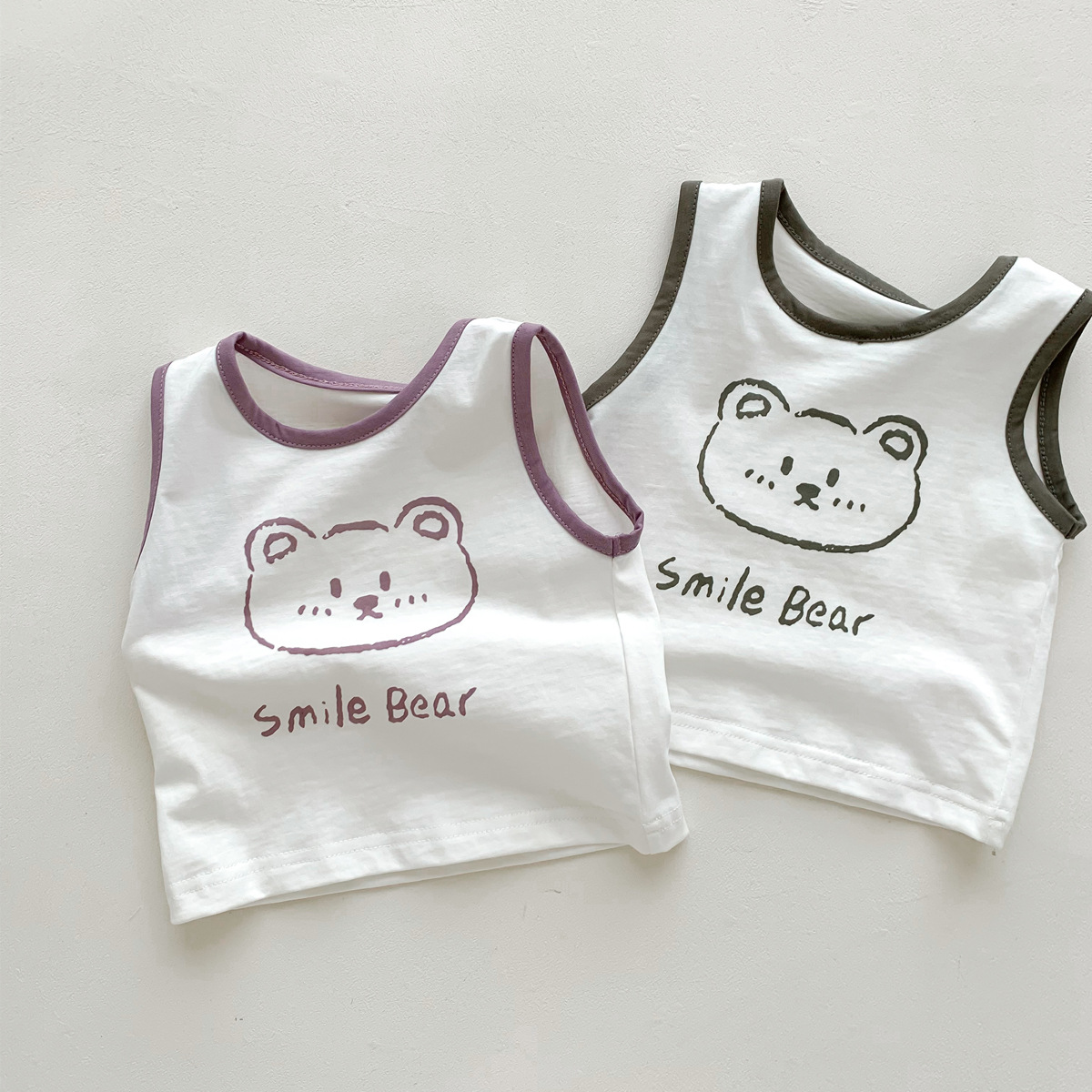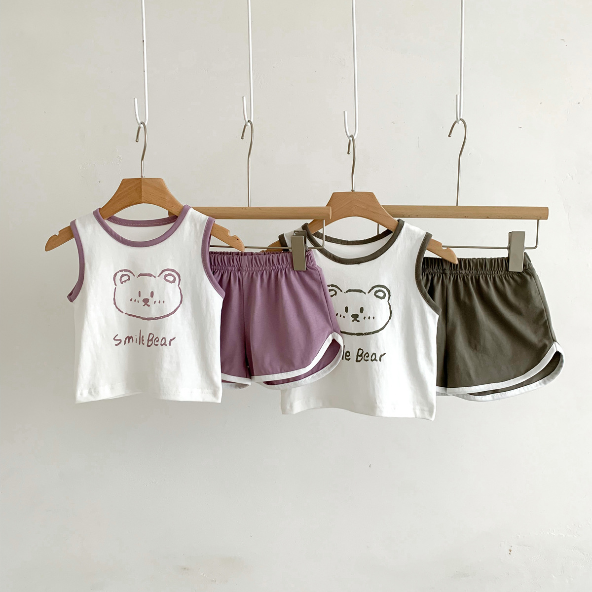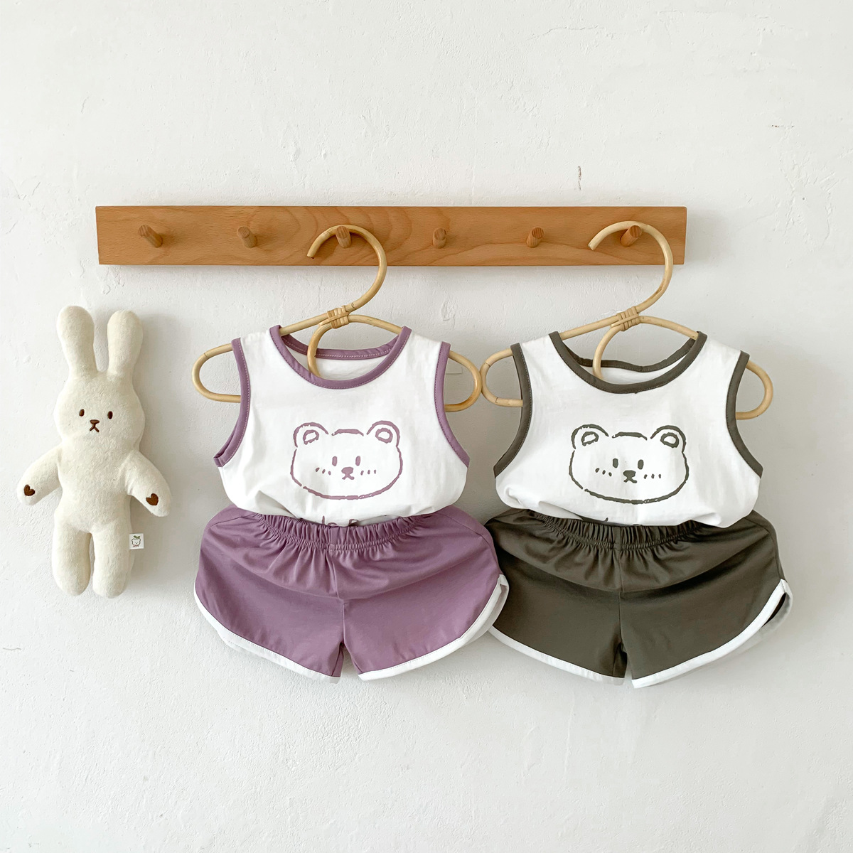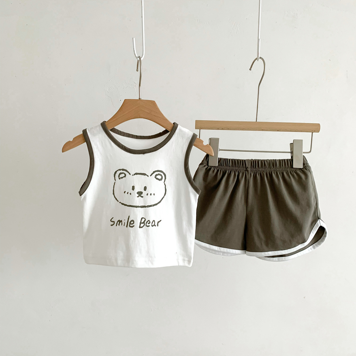 G23051620男女童夏季薄款背心短褲套裝-卡通熊印花無袖兩件套裝