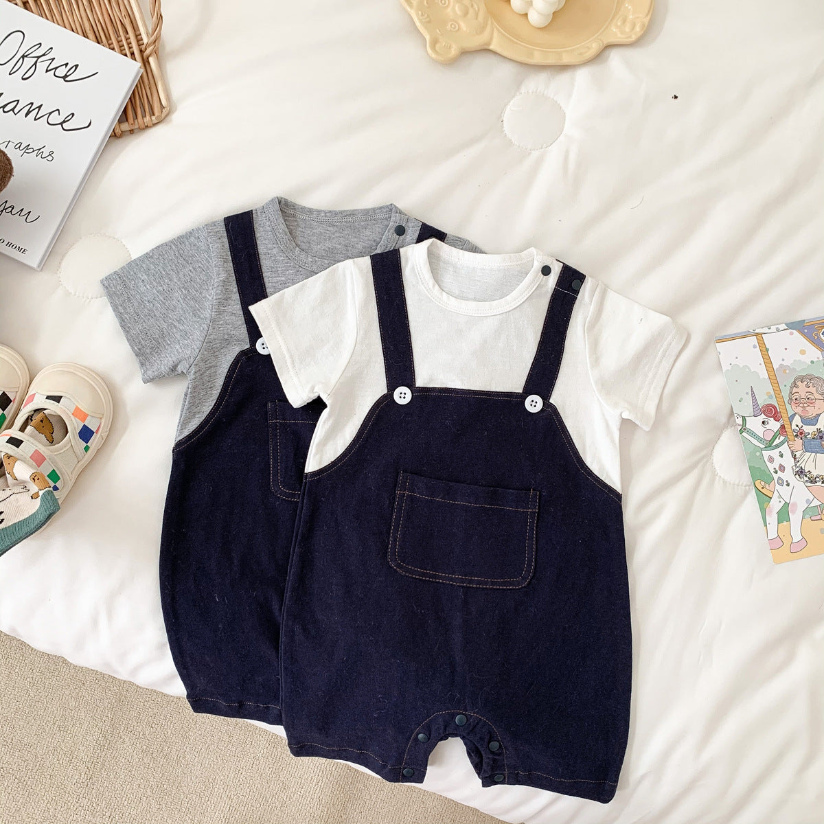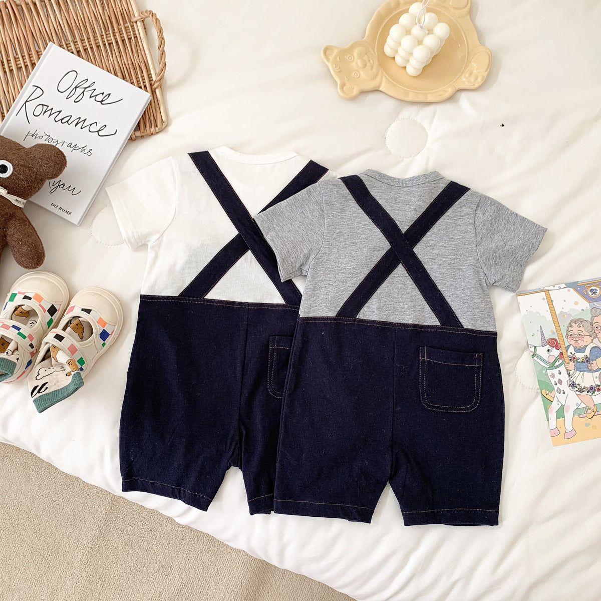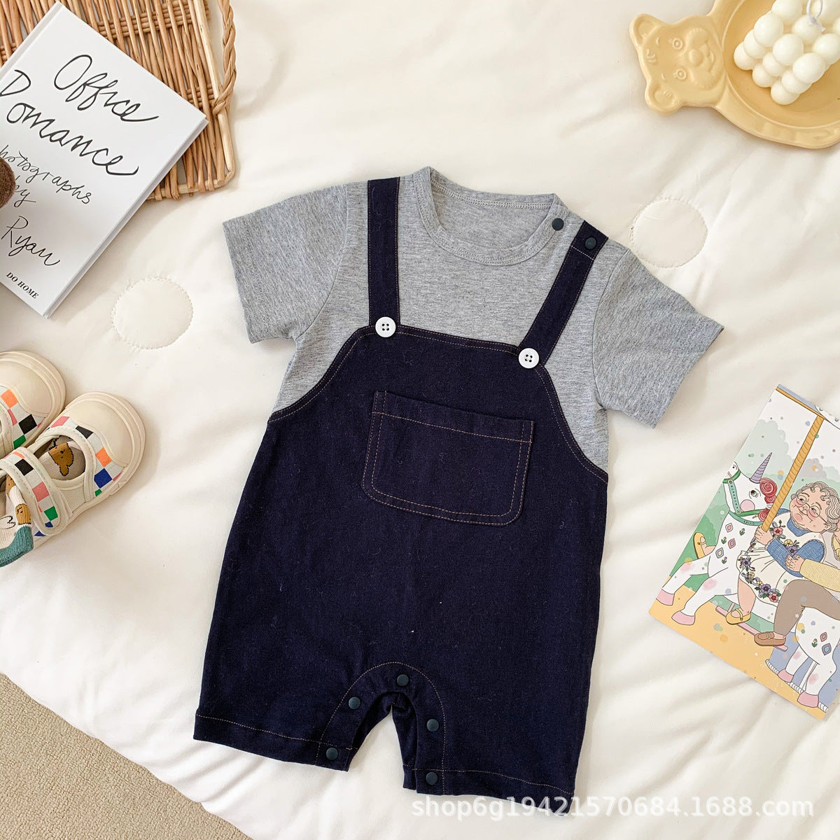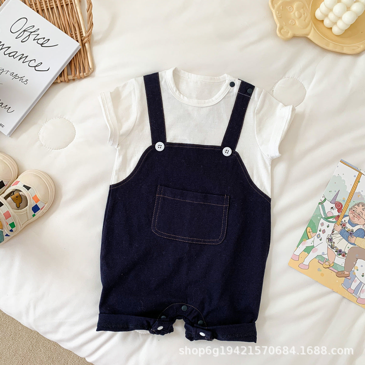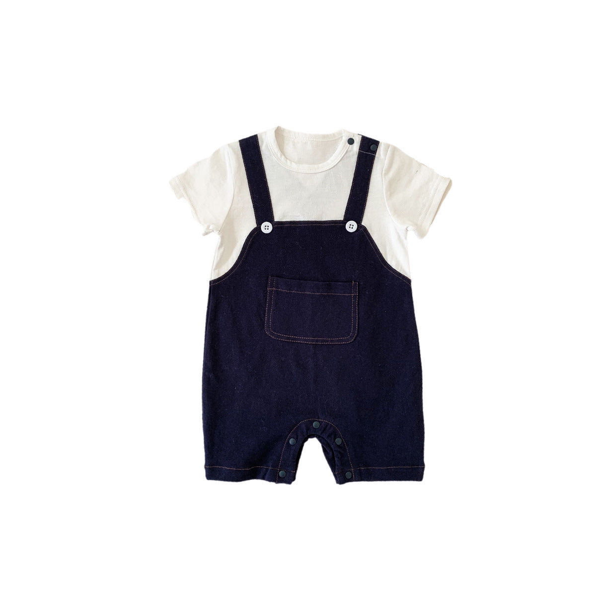 G23051628嬰兒夏裝男寶寶帥氣薄短袖假兩件服