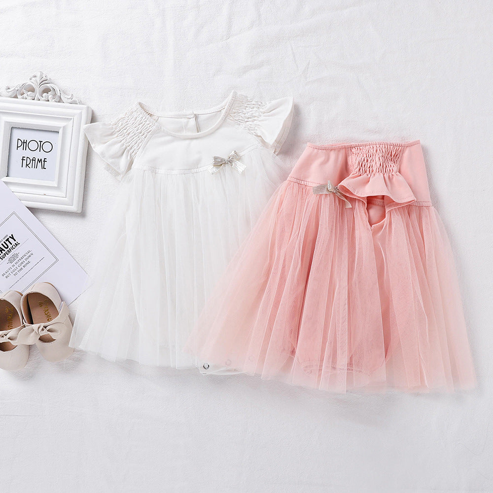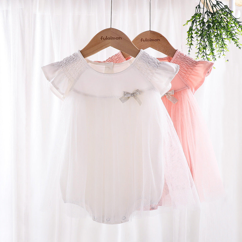 G23061507韓版夏季滿月寶寶薄款無袖蕾絲公主嬰兒爬爬服