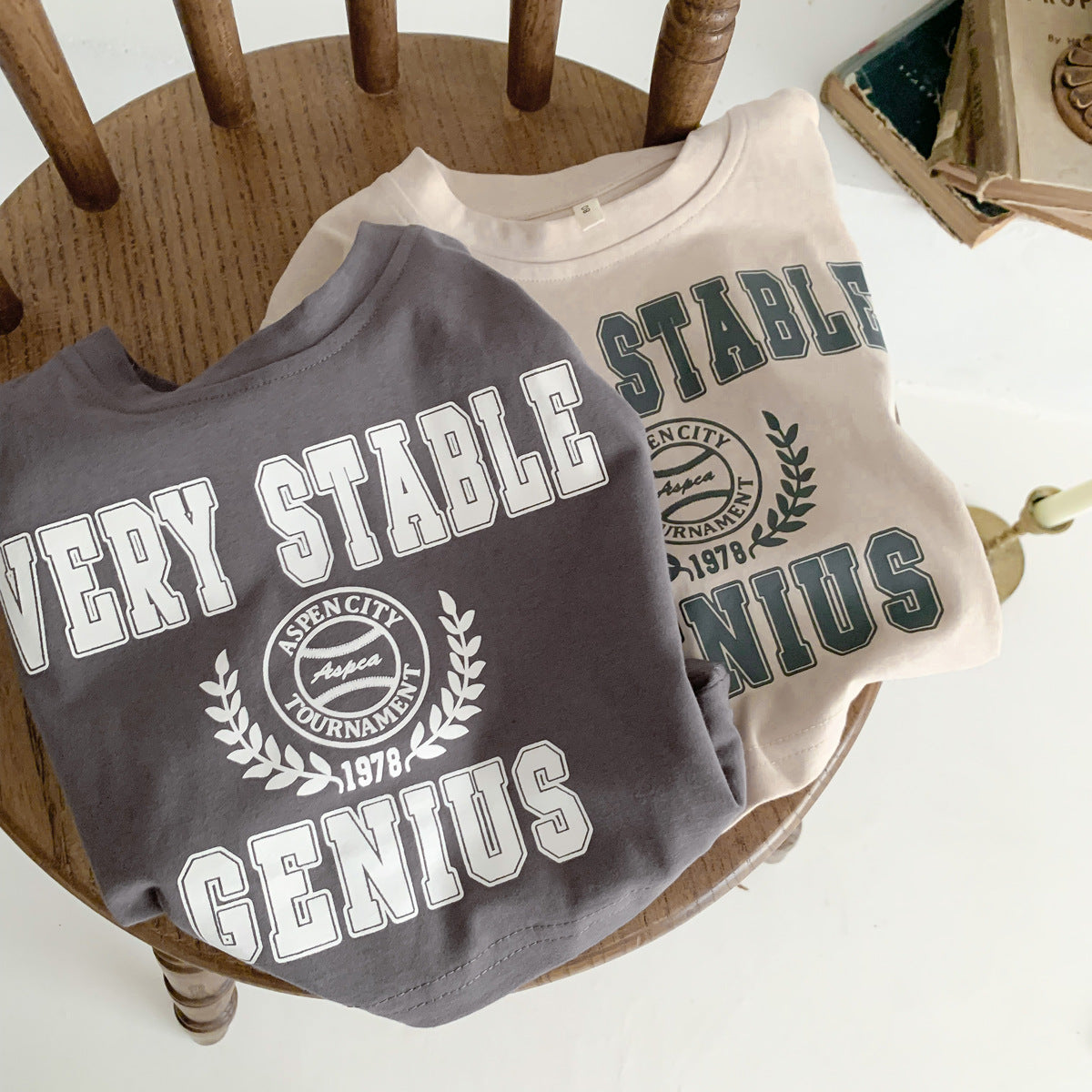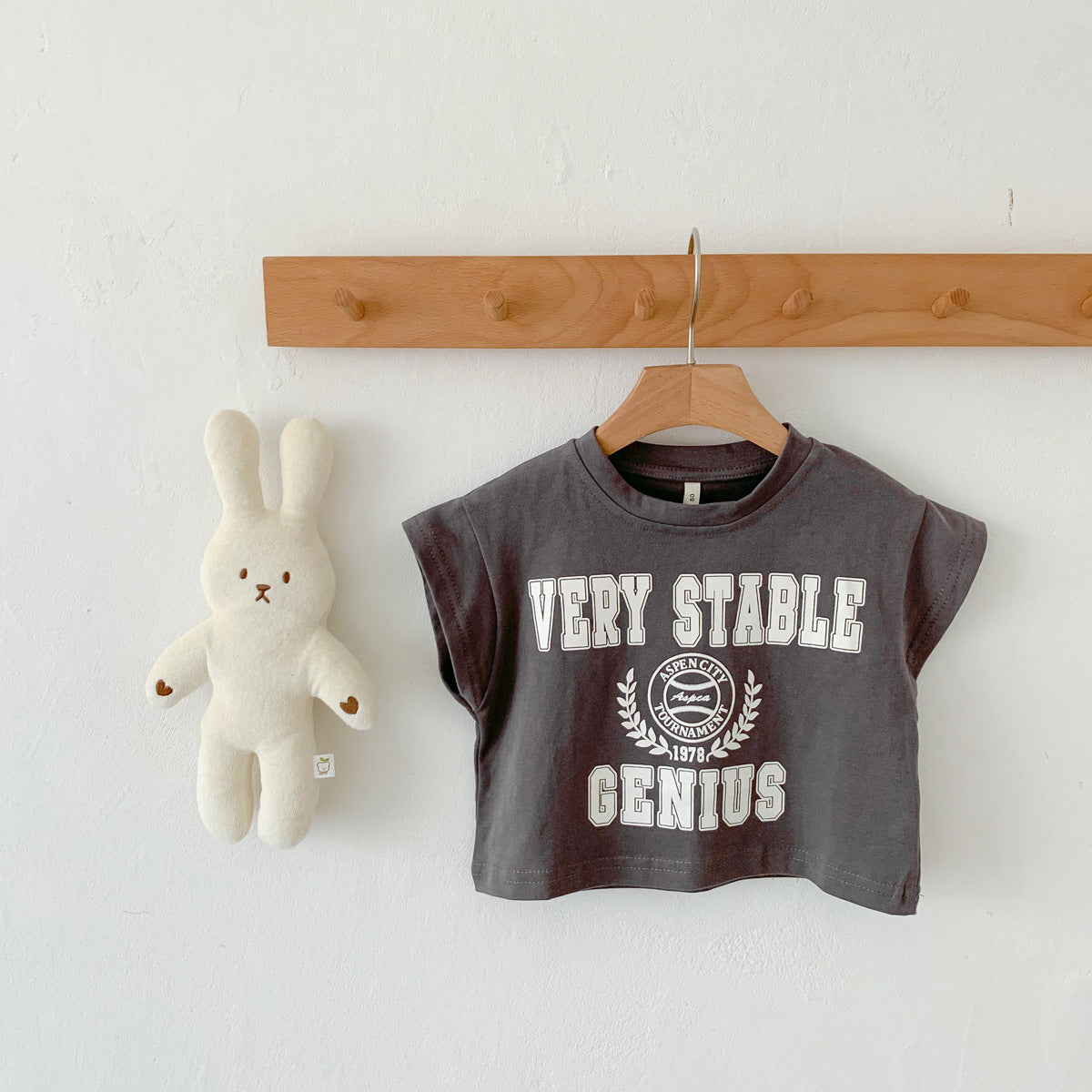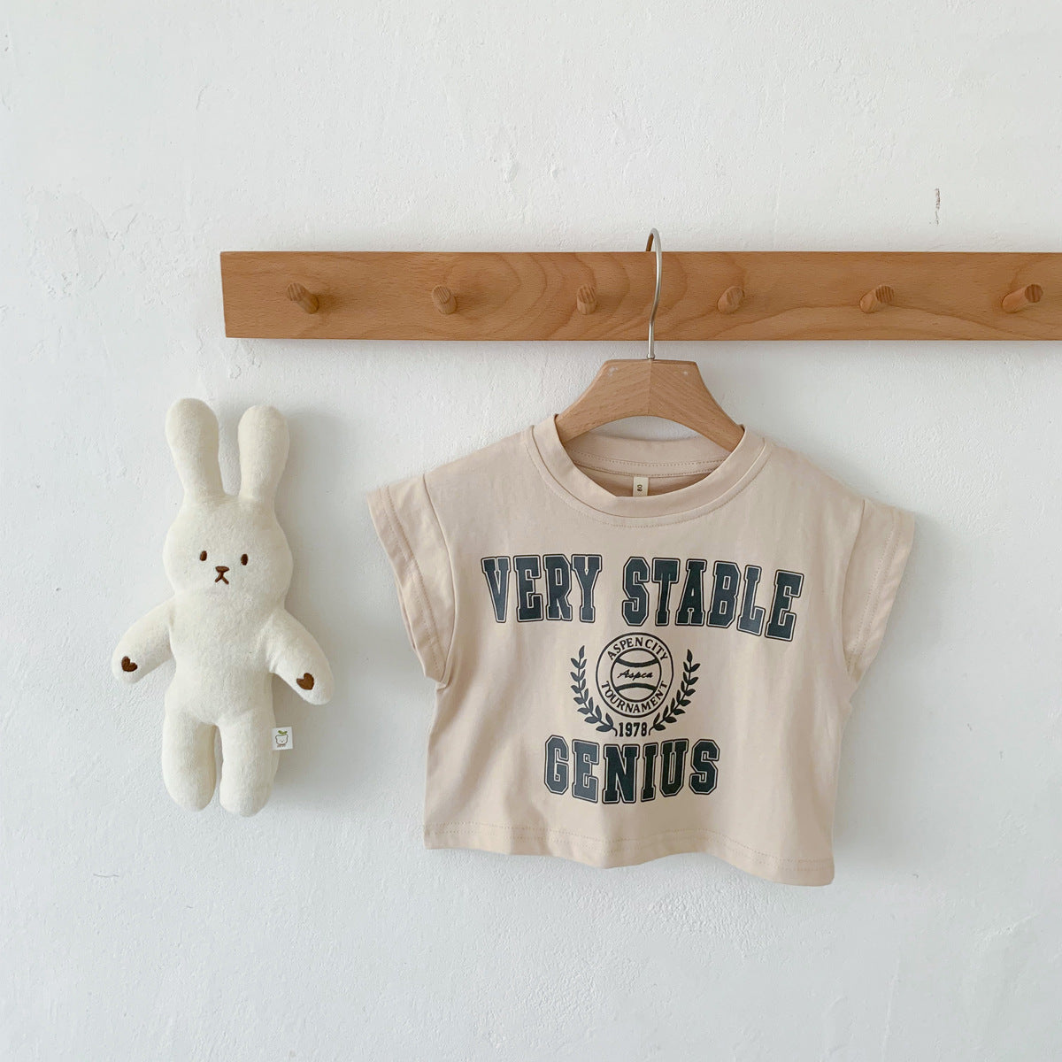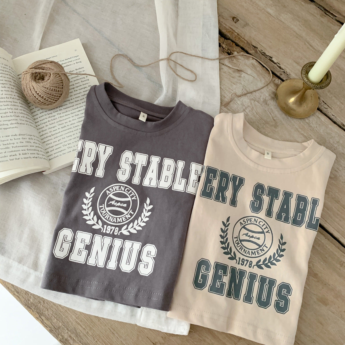 G23061513韓版2023夏季兒童字母印花T恤男孩女孩休閒短袖上衣