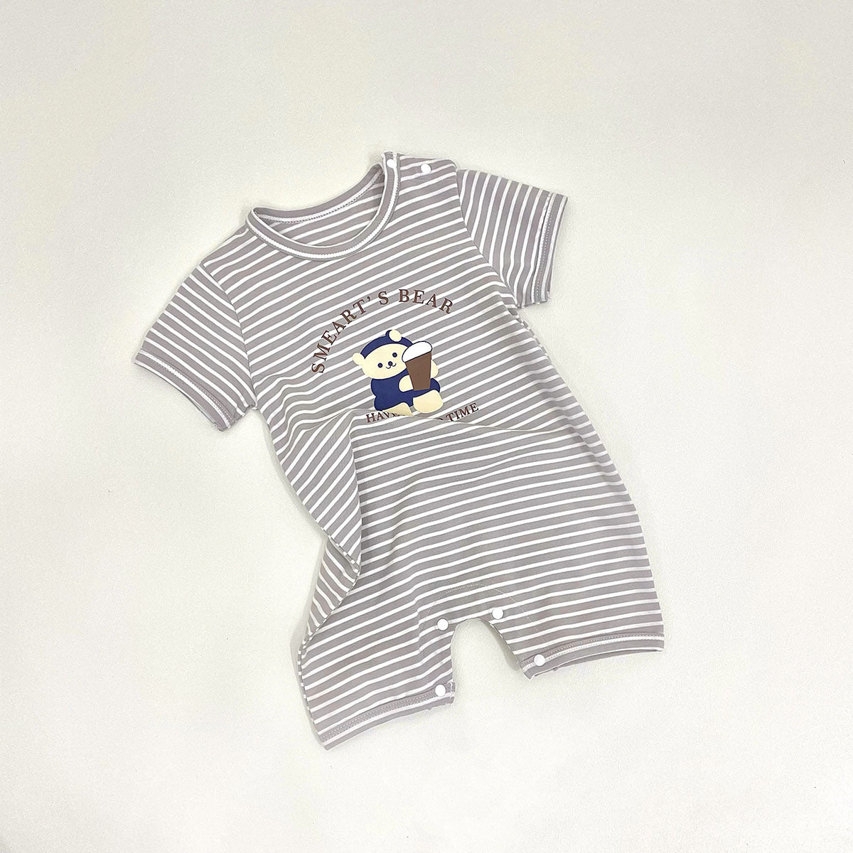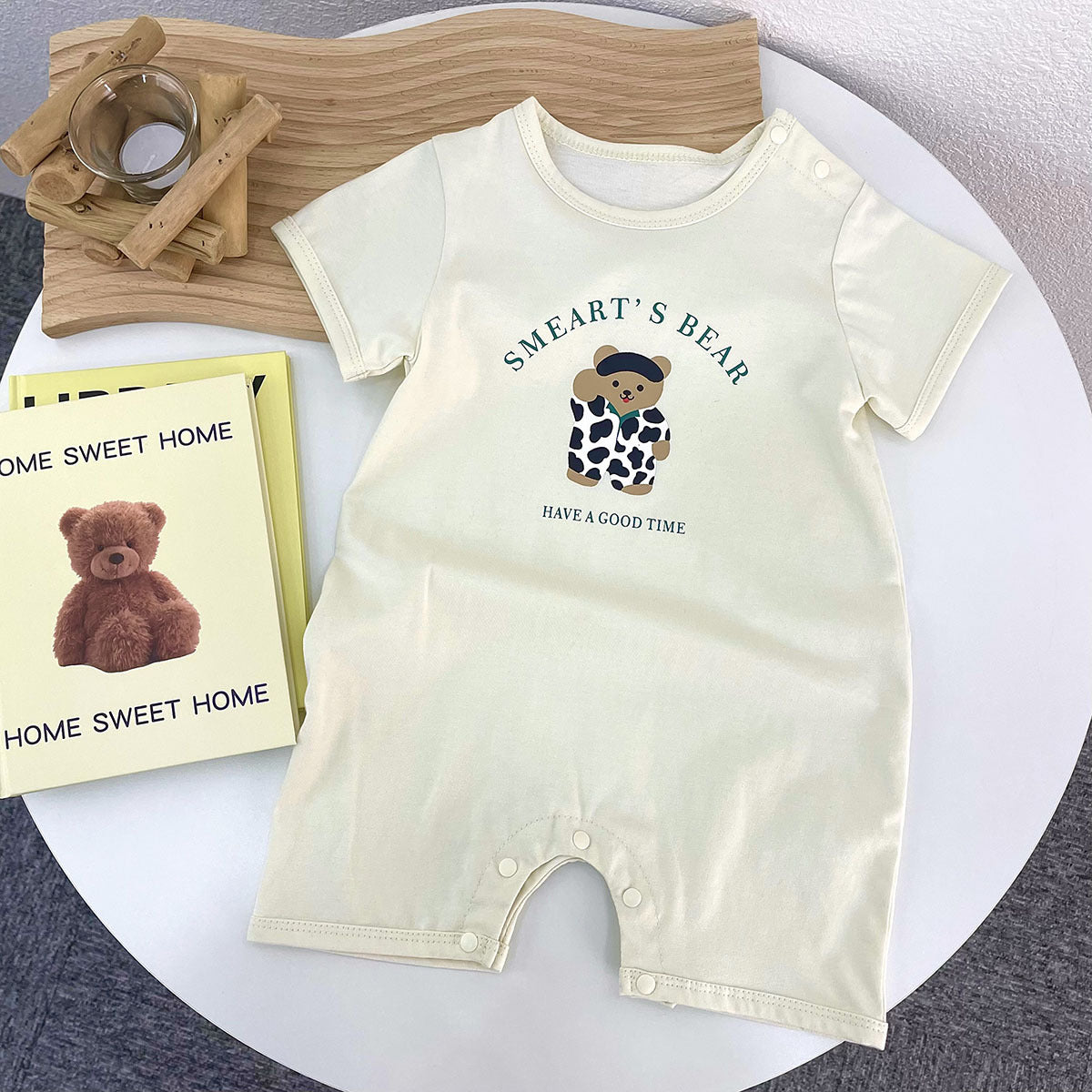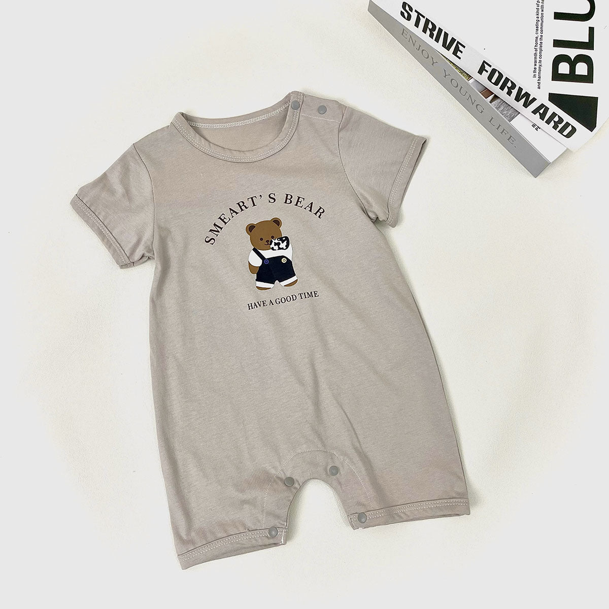 G23061518嬰兒夏季連體衣短袖薄款開扣卡通小熊圖案