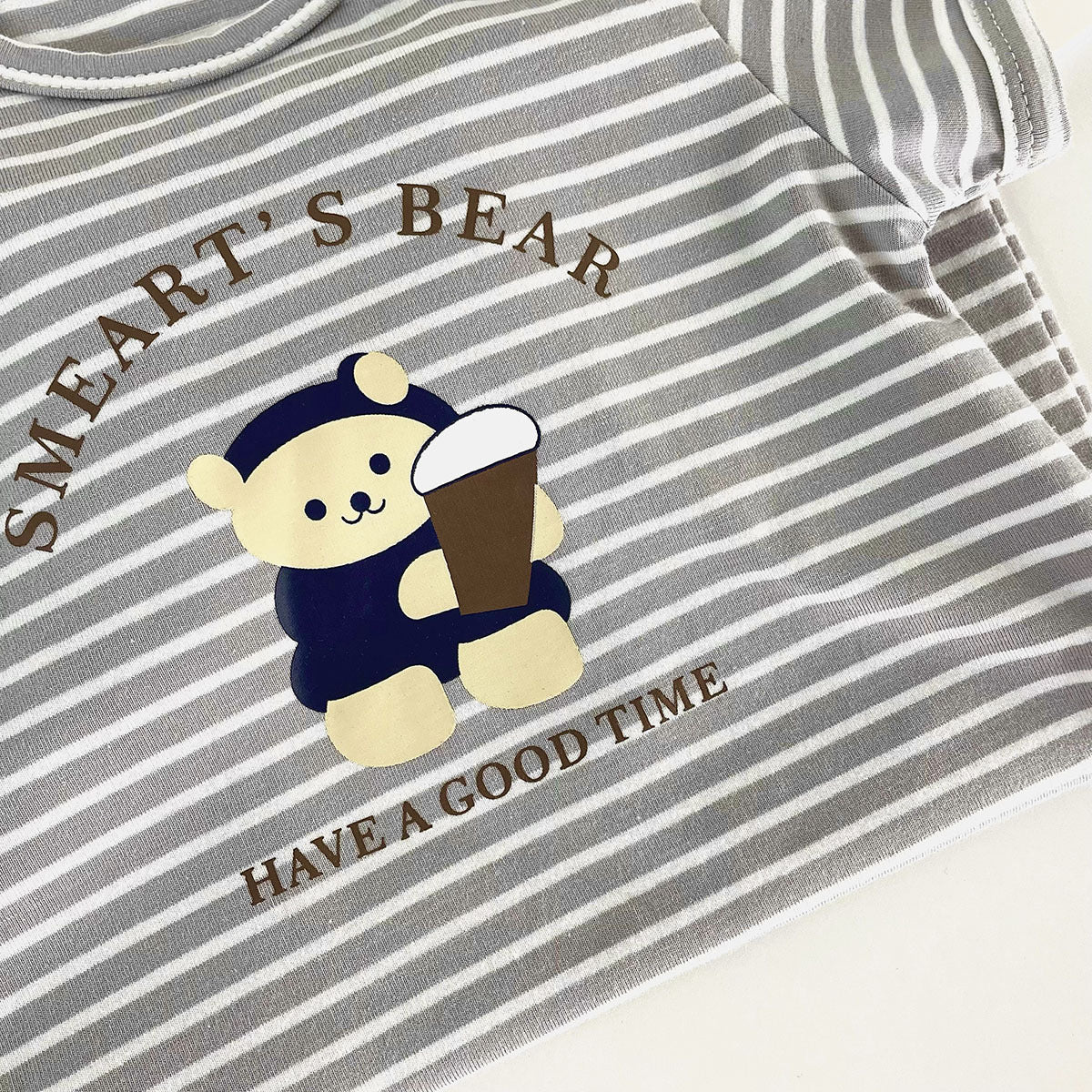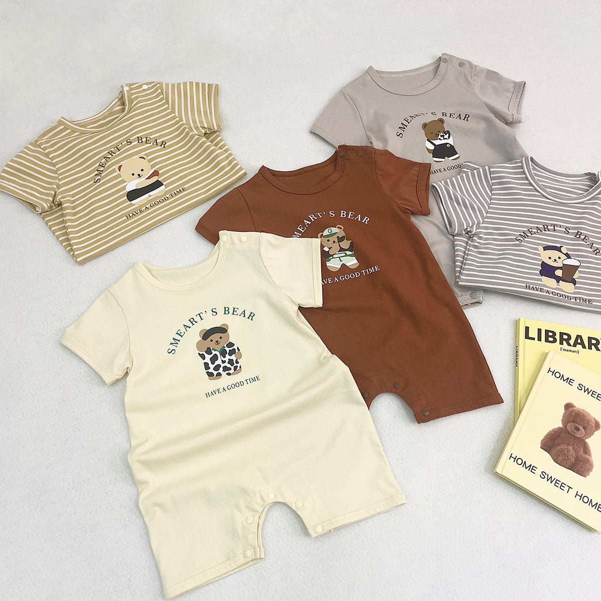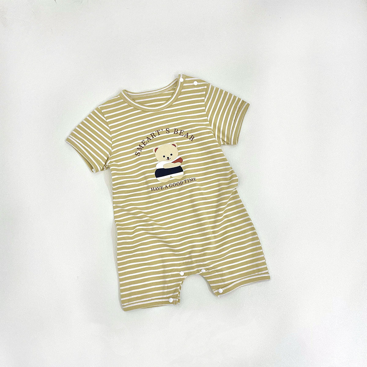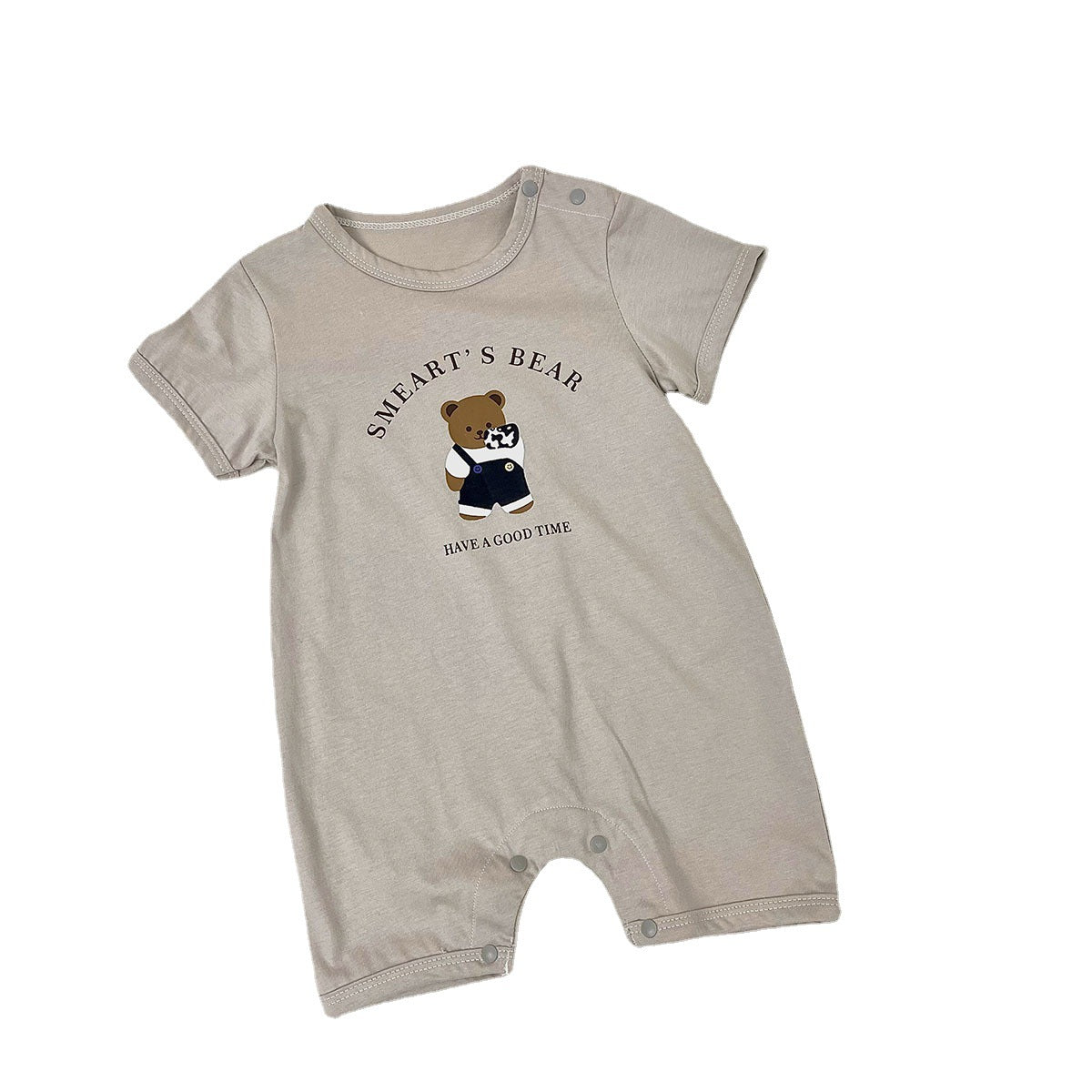 G23061518嬰兒夏季連體衣短袖薄款開扣卡通小熊圖案