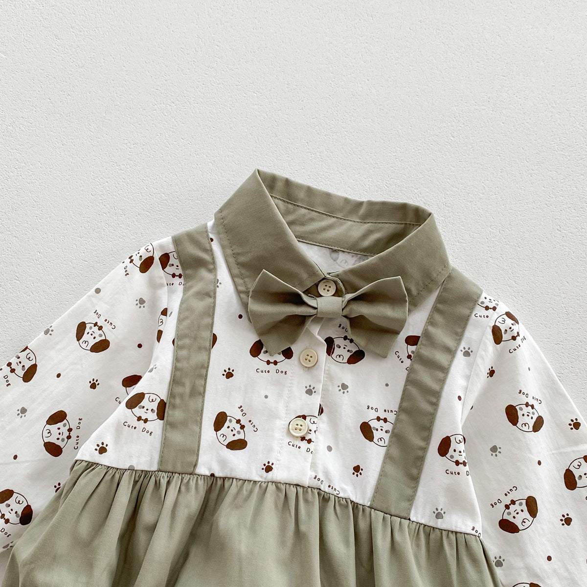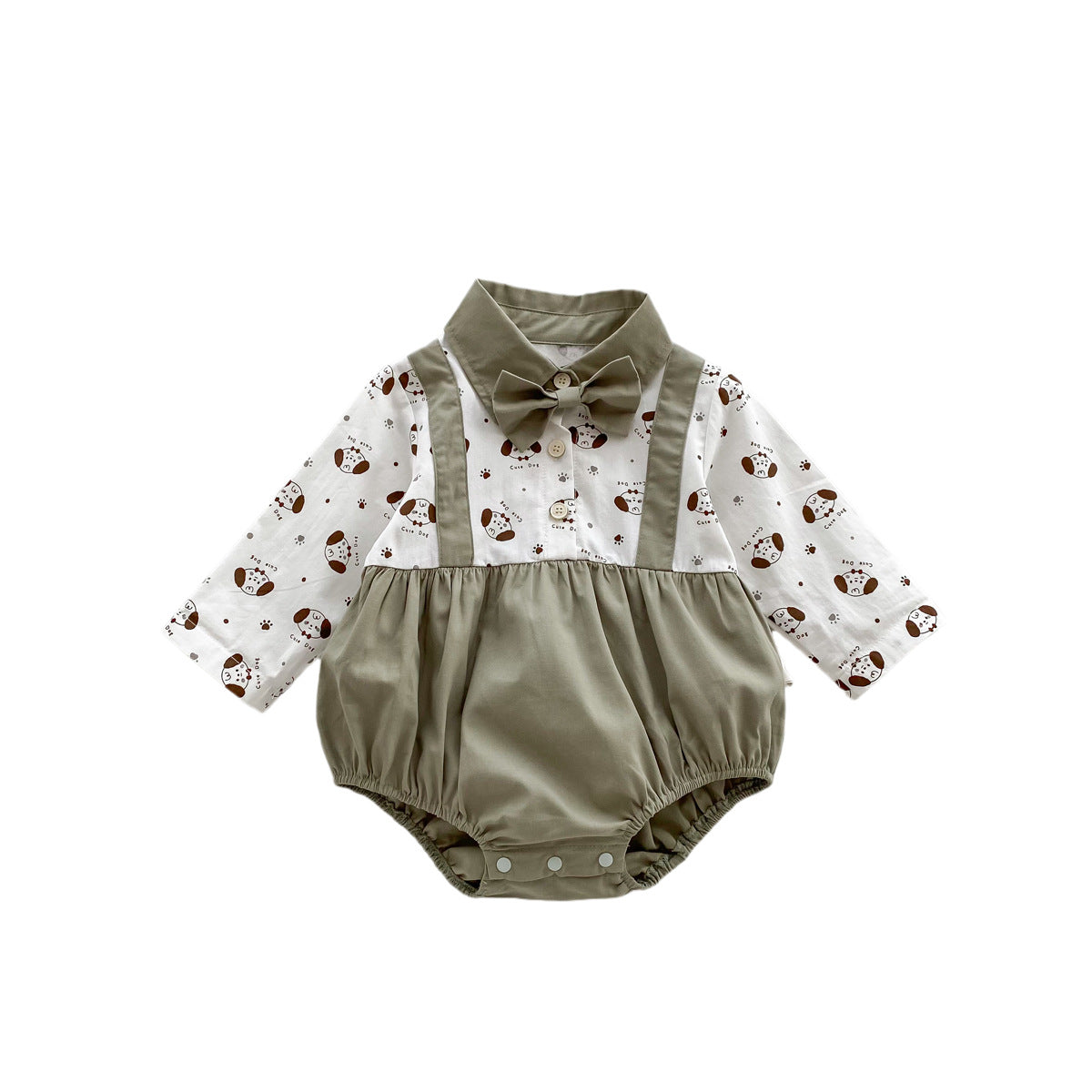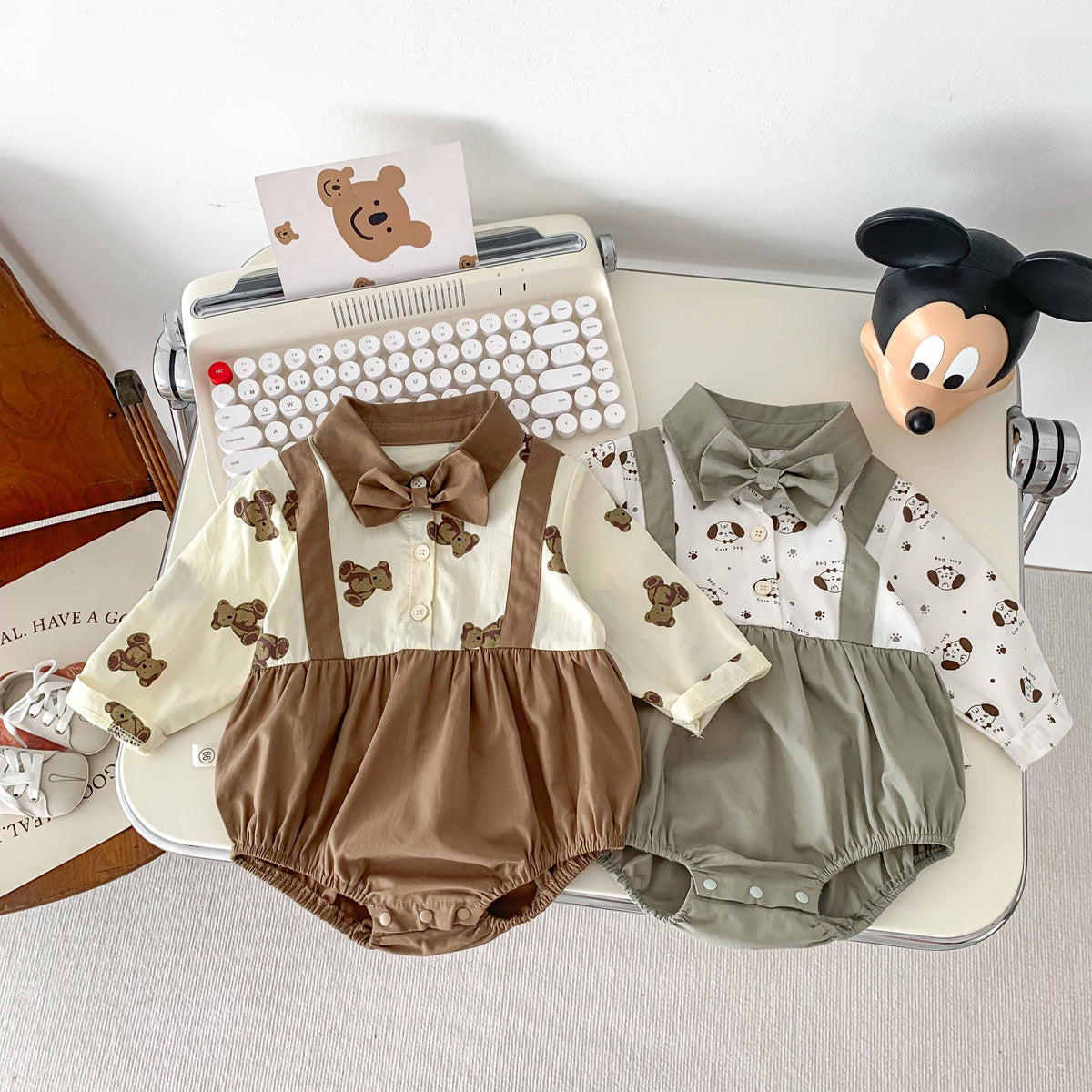 G231116019新款秋季寶寶卡通印花蝴蝶結長假兩件洋氣哈衣連身衣爬服