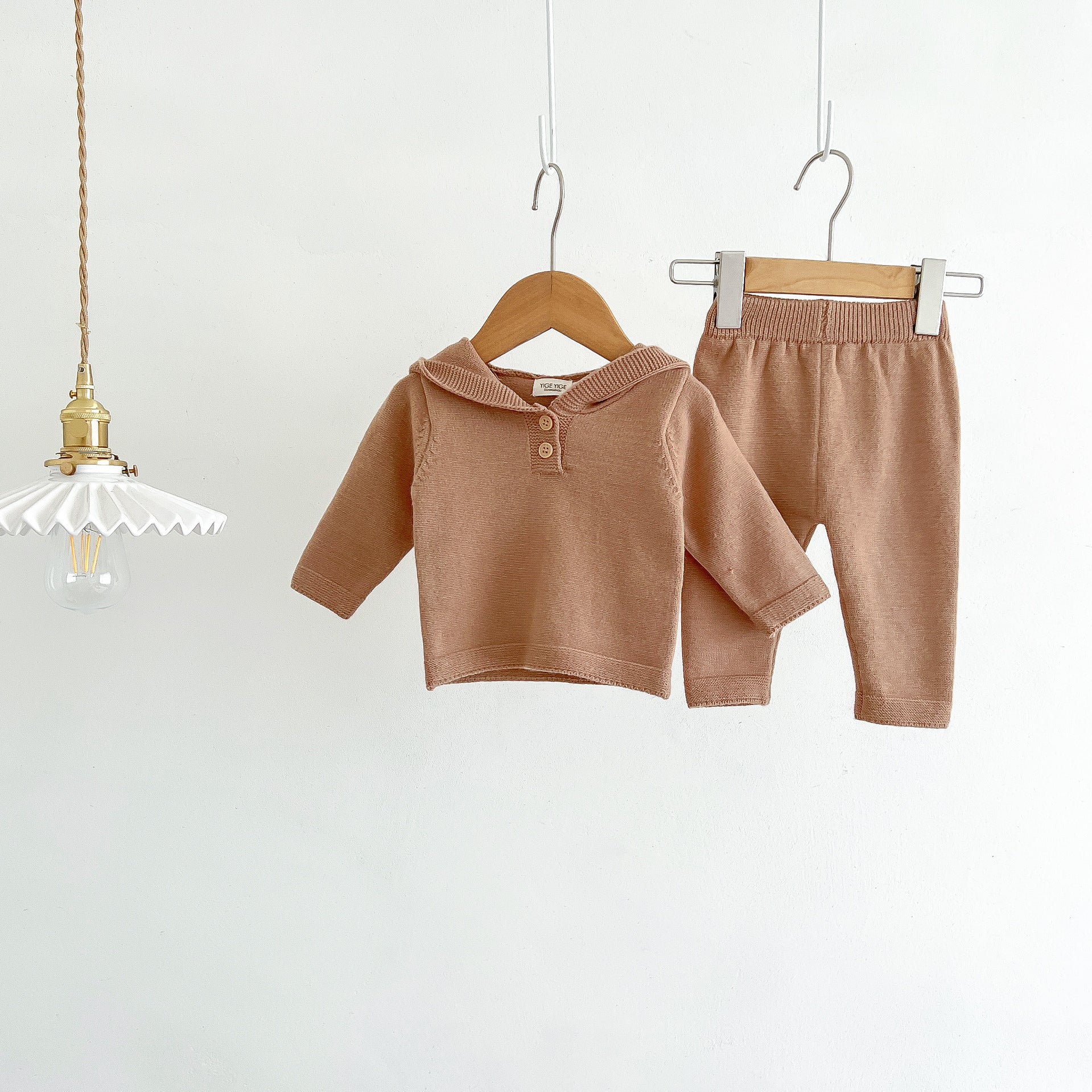 G23111612韓版男女童寶寶純色衛衣毛衣套裝ins新生兒上衣+鬆緊褲套裝
