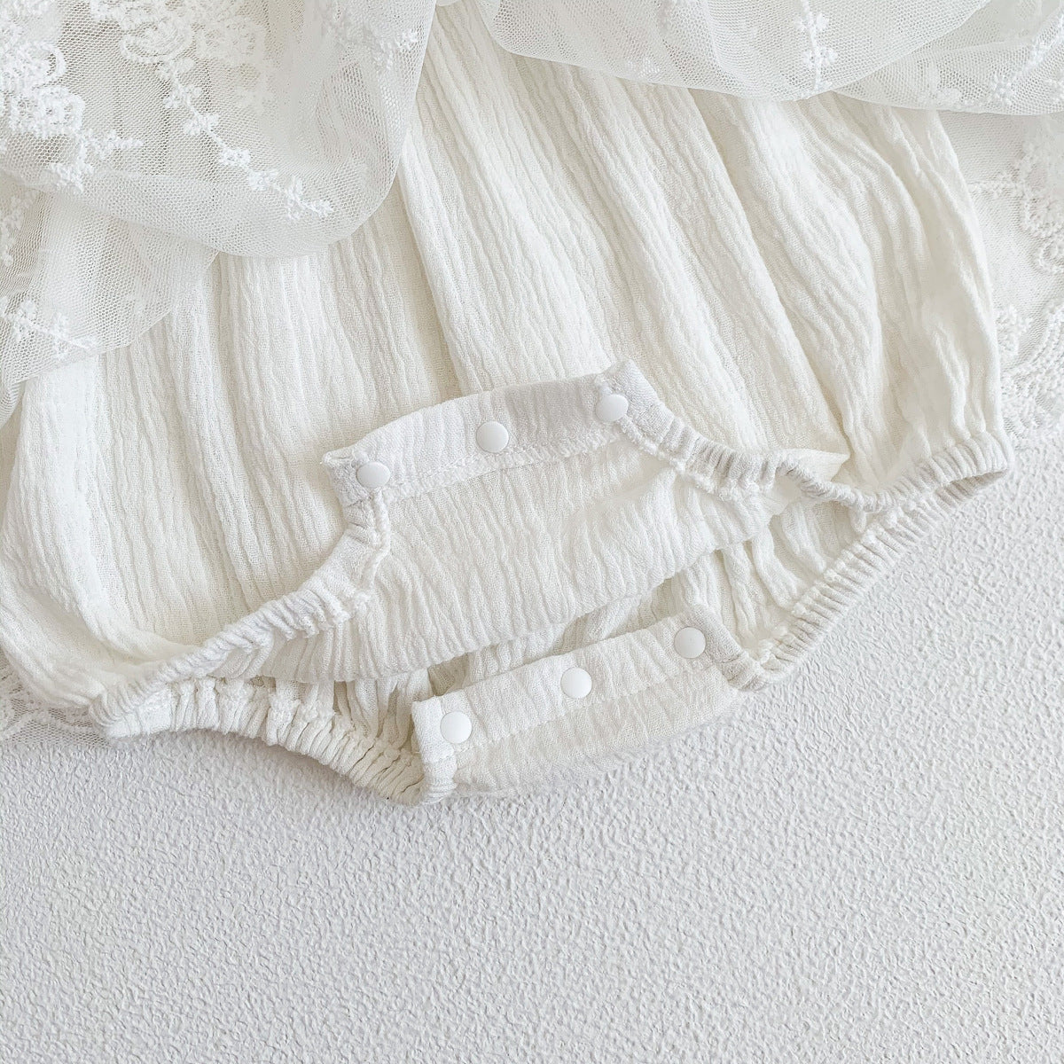 G24072101兒童夏裝2024女孩蕾絲蕾絲繡花連體哈衣寶寶公主網紗哈衣裙