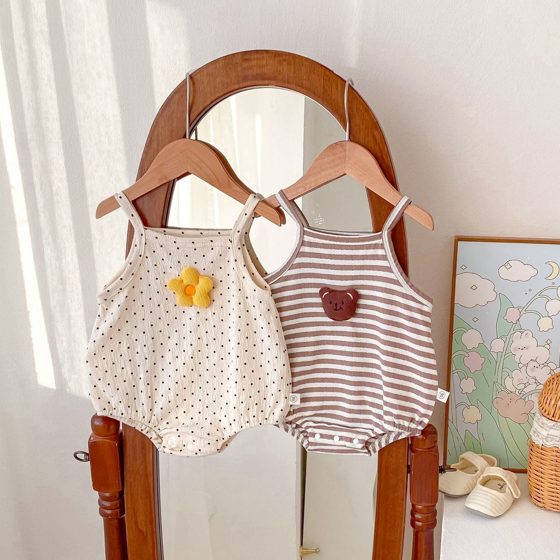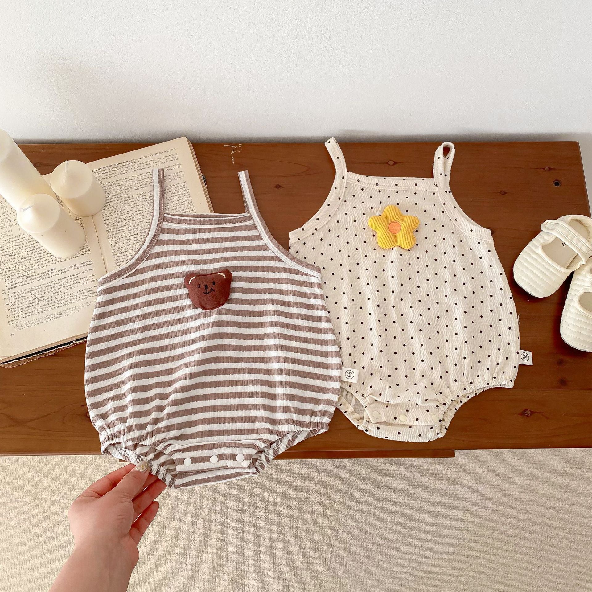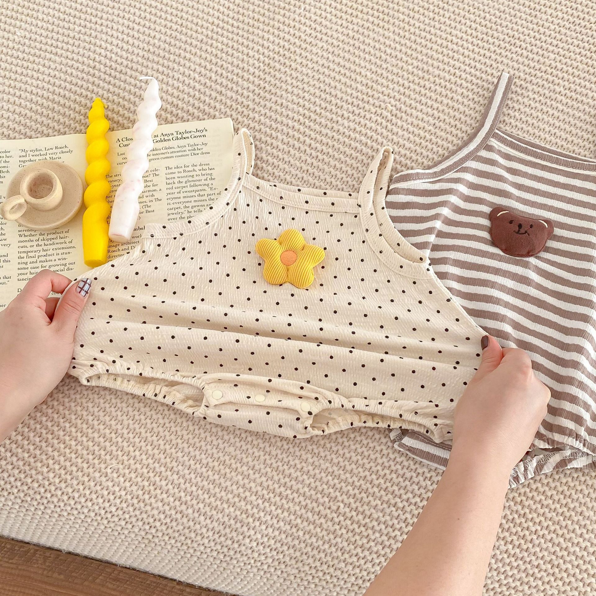 G24072102韓版嬰兒寶寶夏日小吊帶洋氣時尚兒童條紋原點卡通哈衣爬爬服