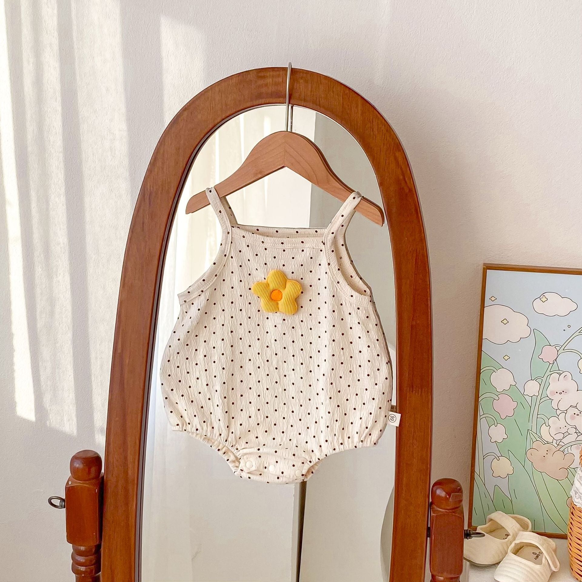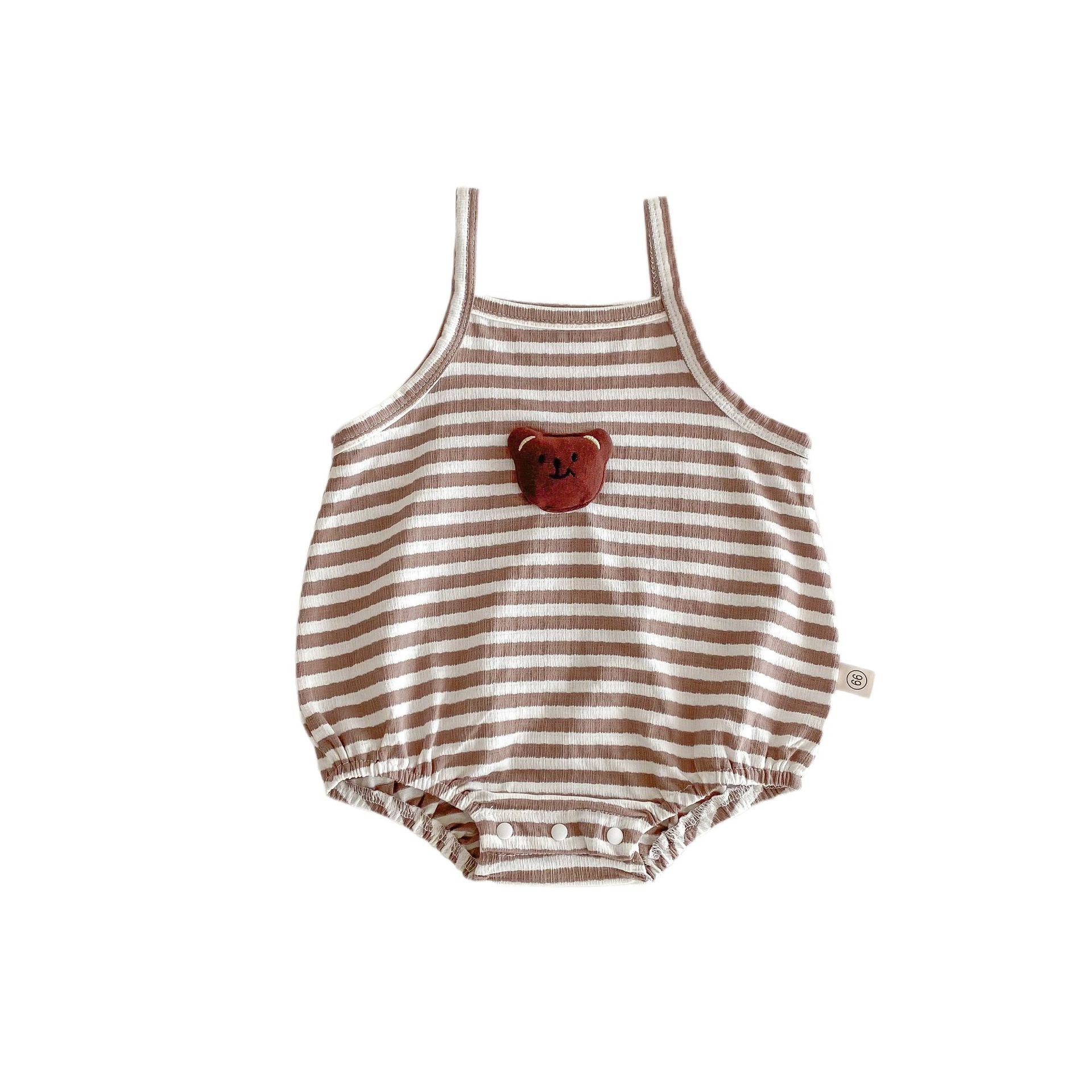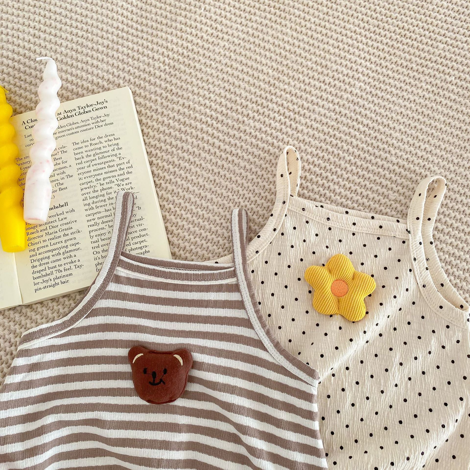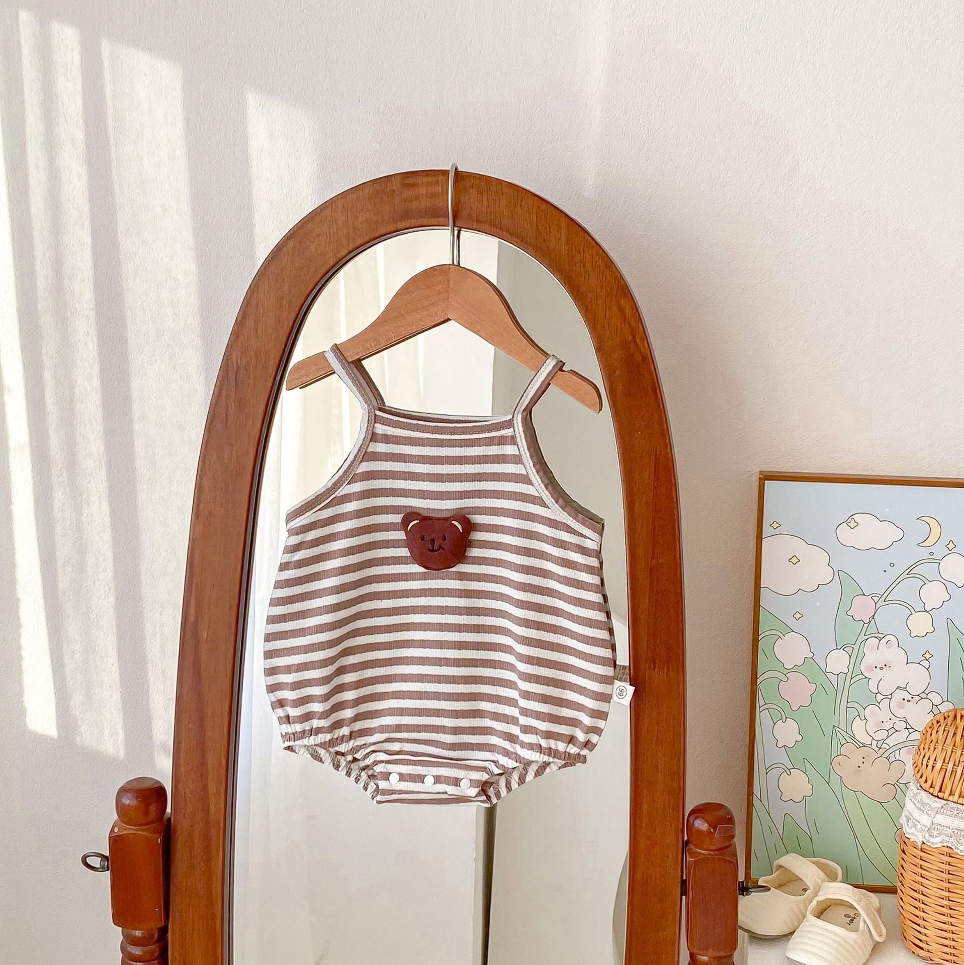 G24072102韓版嬰兒寶寶夏日小吊帶洋氣時尚兒童條紋原點卡通哈衣爬爬服
