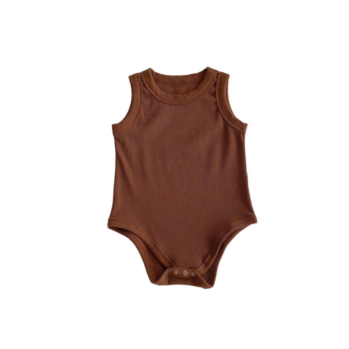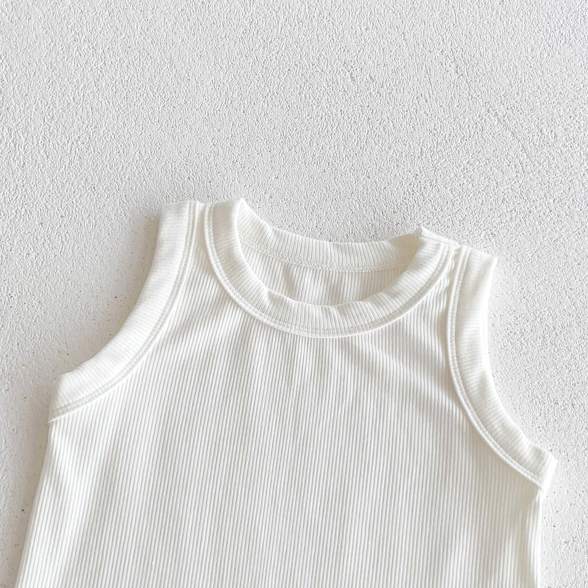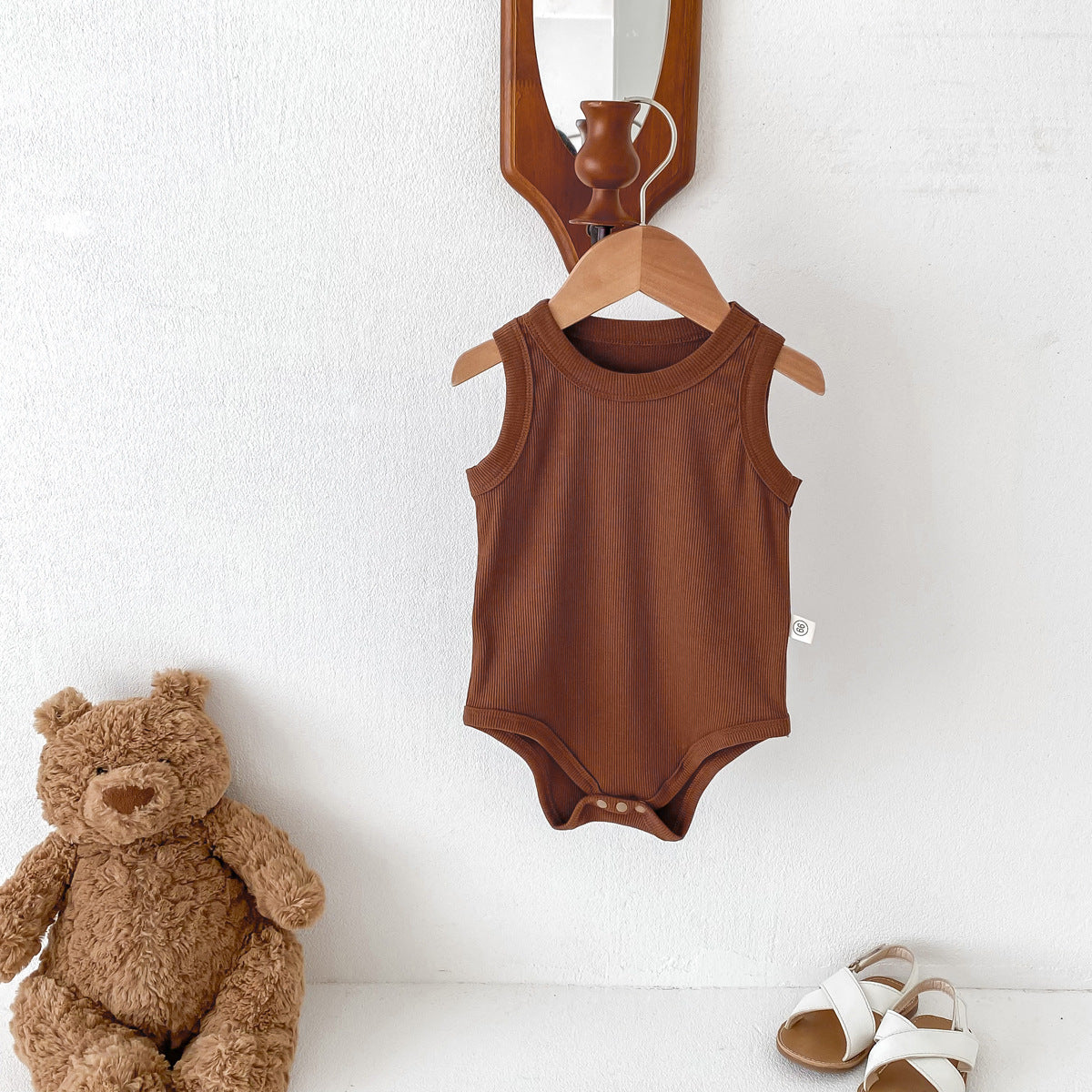 G24072123夏季居家無袖圓領純色螺紋有彈性哈衣男寶寶針織款清涼爬衣