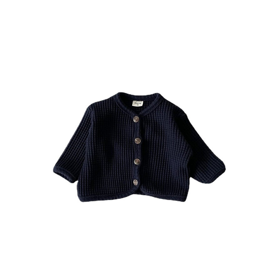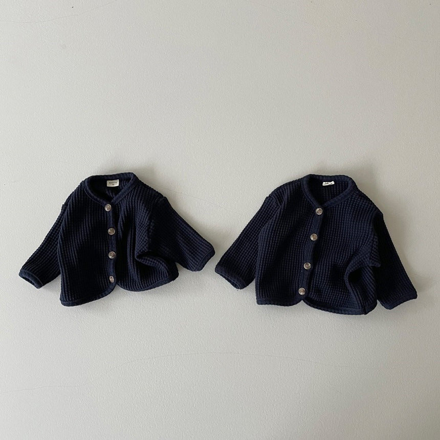 G24110610兒童韓版上衣男女寶寶開襟衫春秋裝嬰幼兒華夫格針織打底衫薄款外套