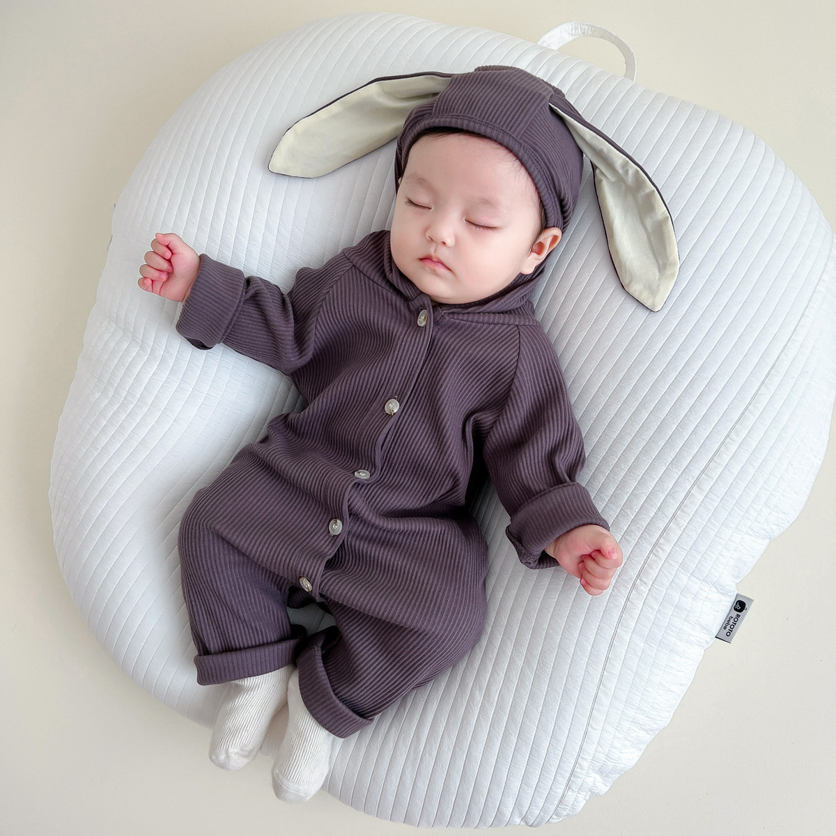 G24110612寶寶可愛連身衣嬰幼兒春秋新款兔子連身哈衣螺紋男童爬爬服