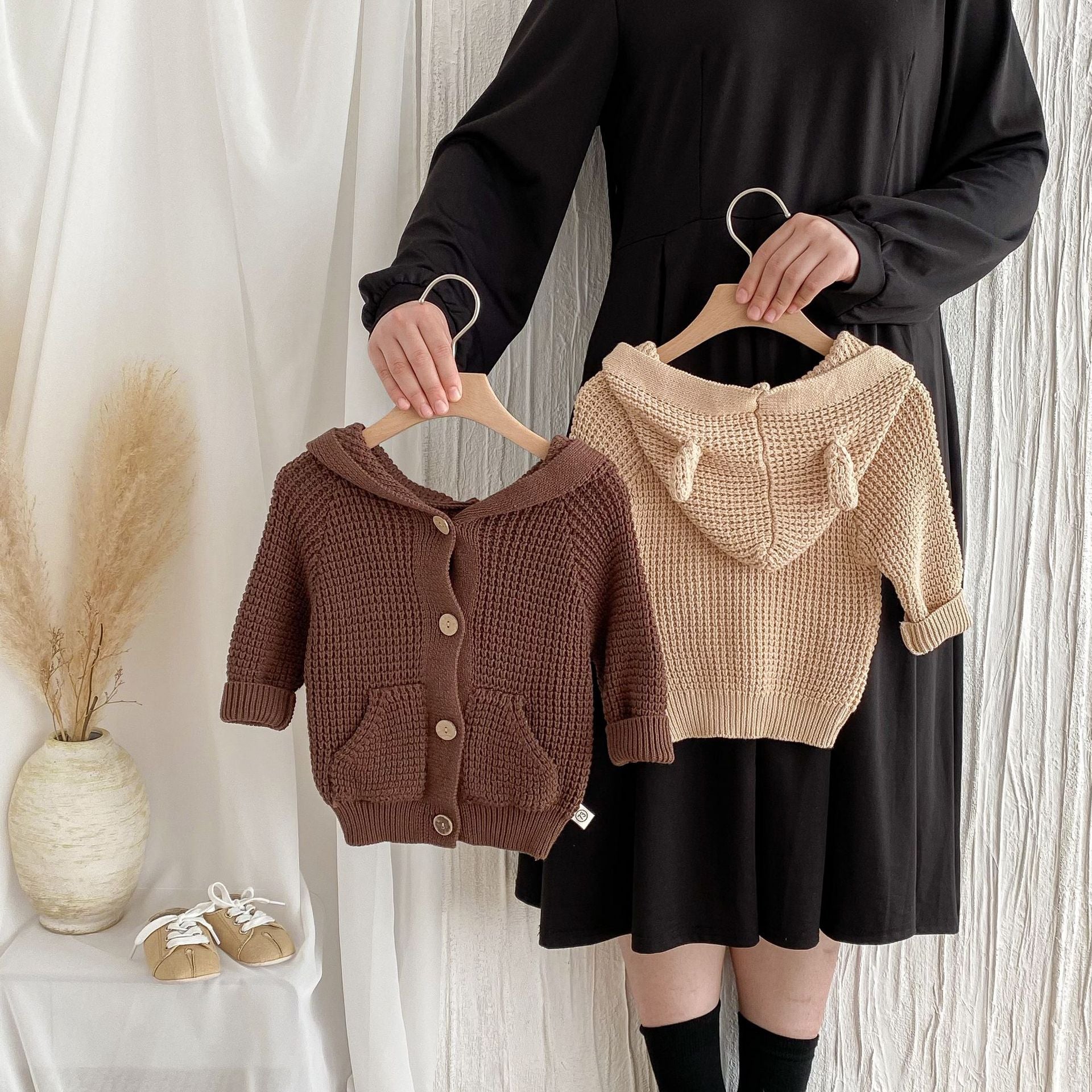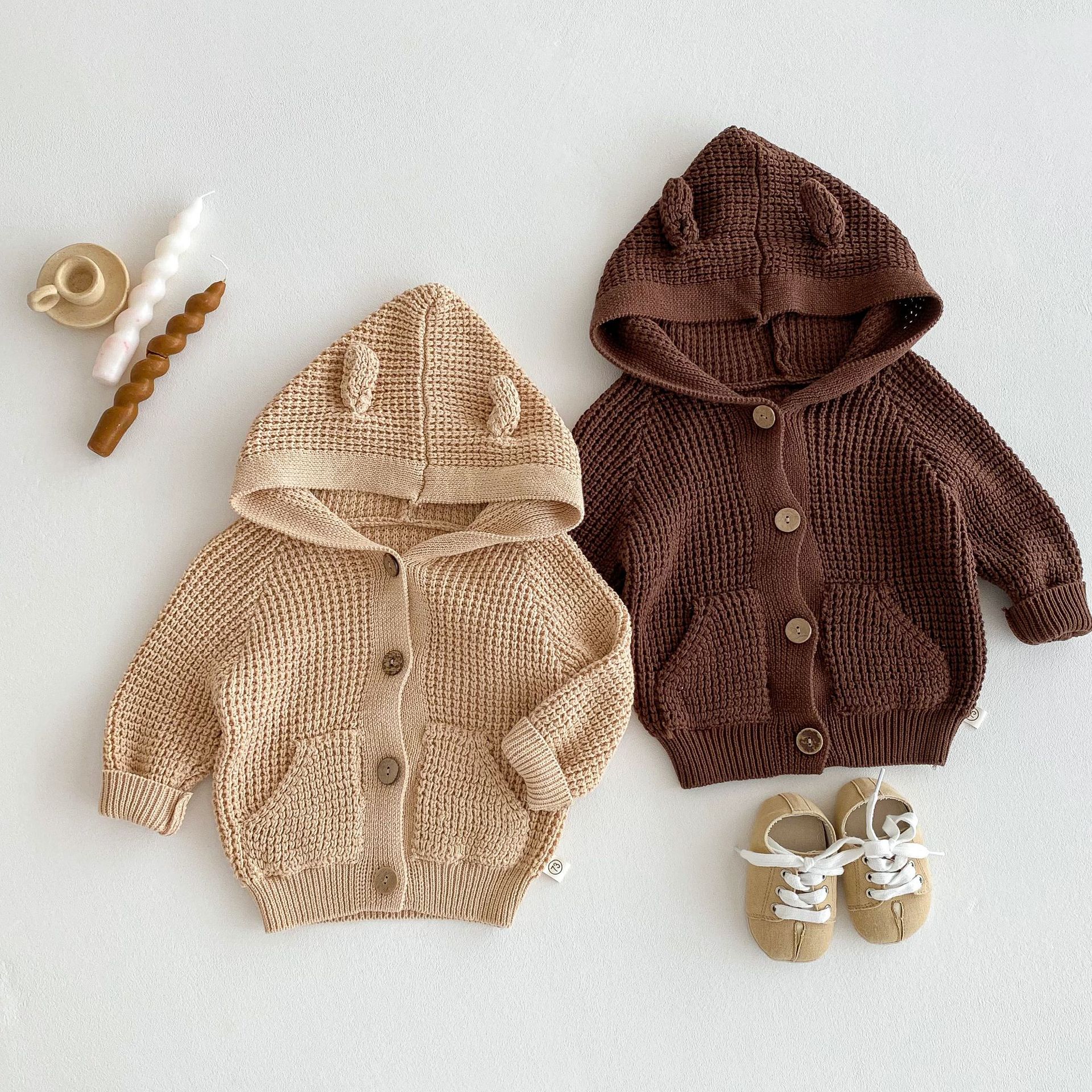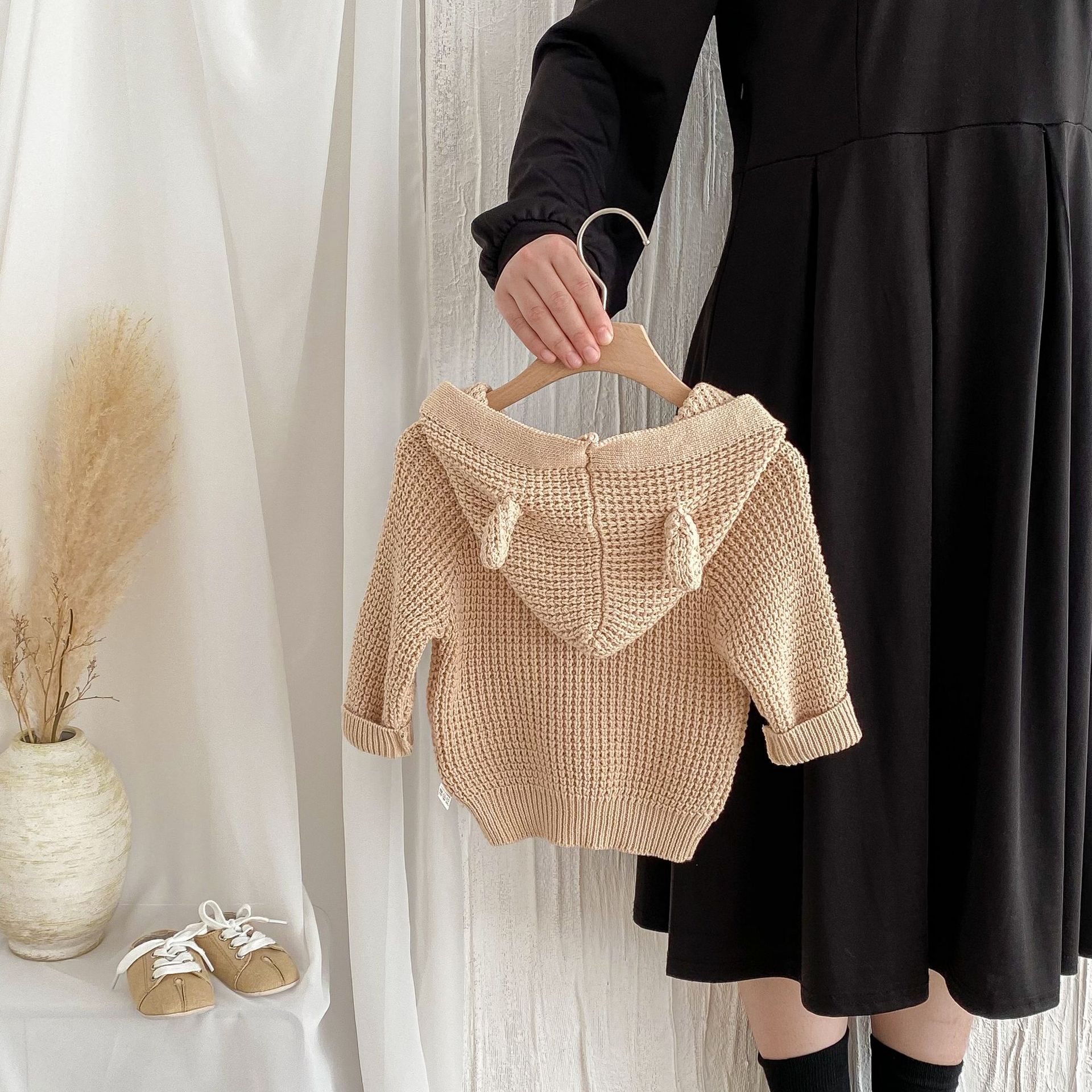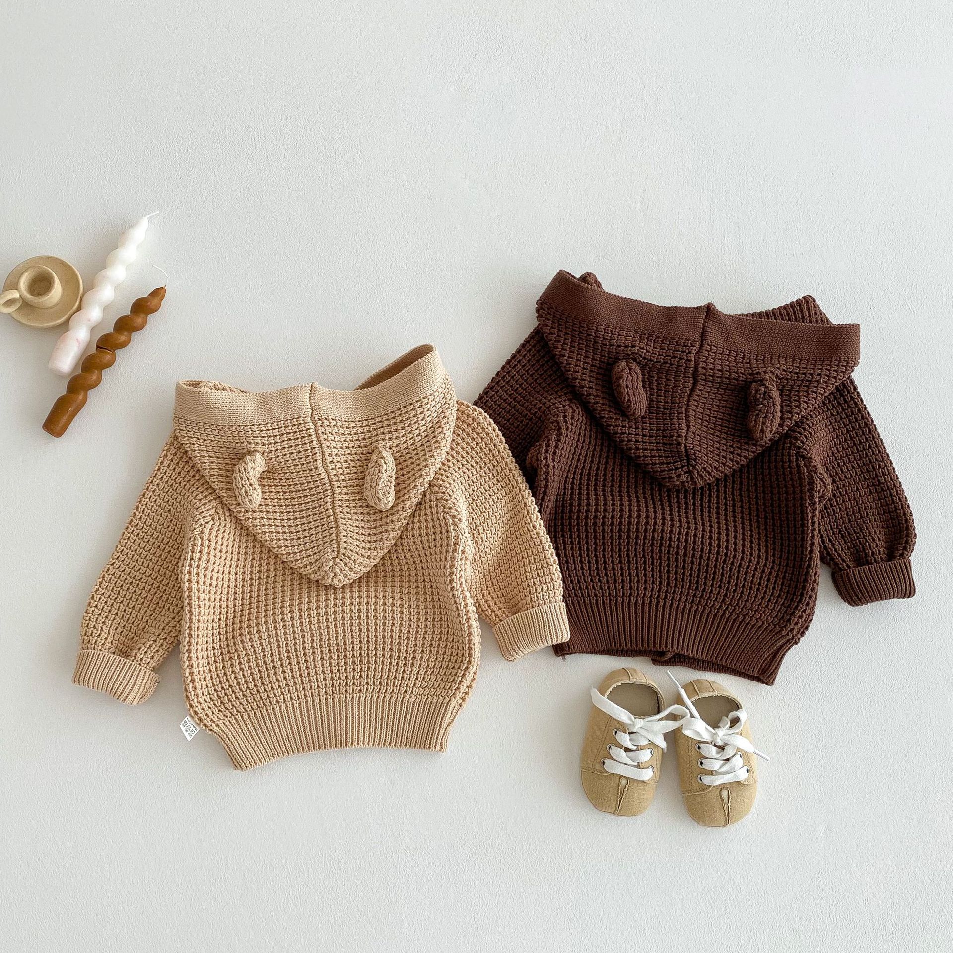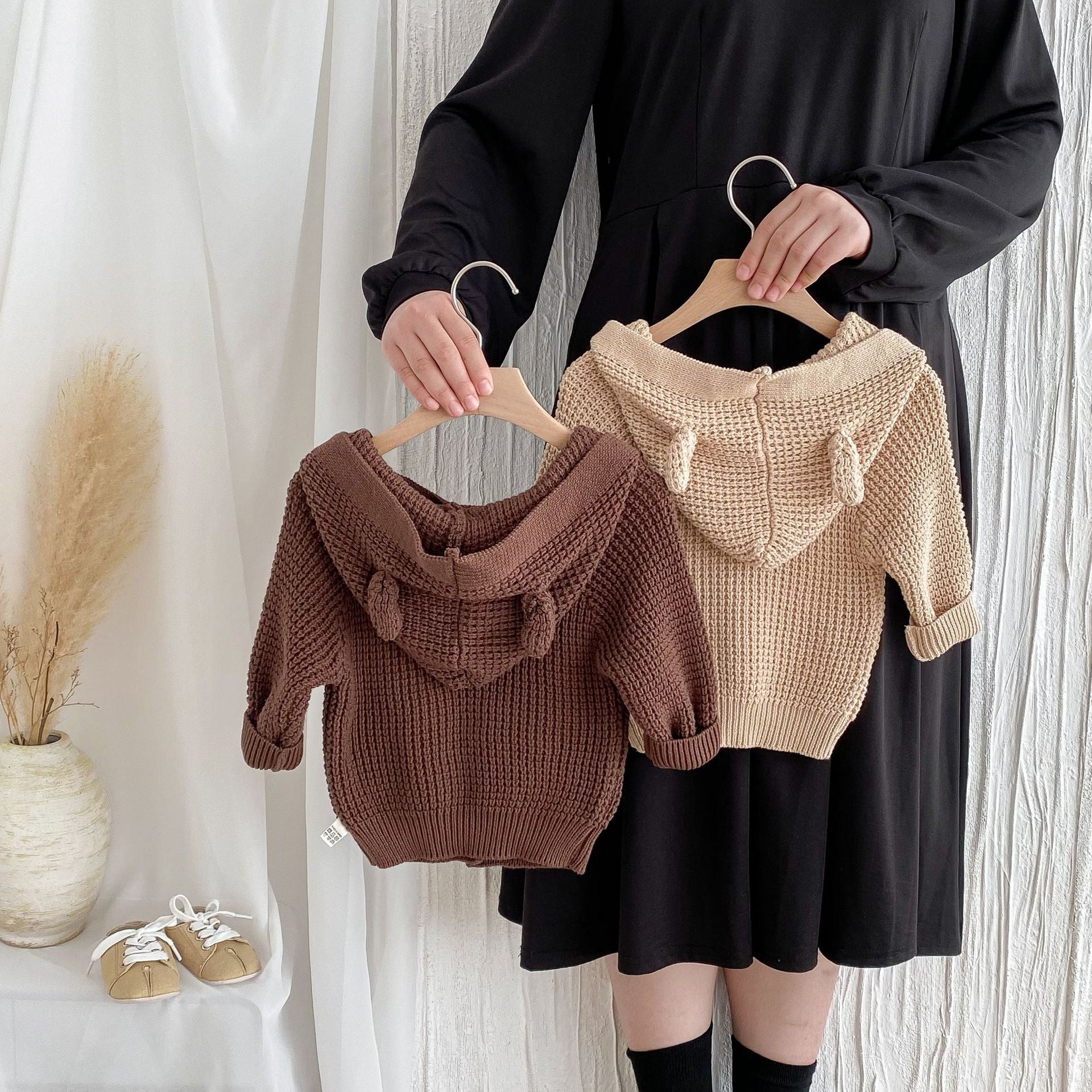 G24110619兒童韓版秋季嬰兒針織毛衣連帽洋氣男女寶寶可愛連帽長袖服